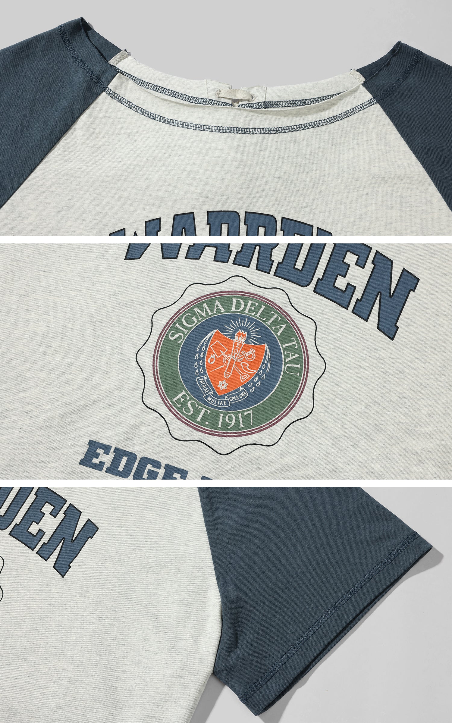 Ajuste holgado, costuras sin rematar, caída fuera del hombro—como si lo hubieras robado de un casillero universitario. Las mangas en contraste y las costuras exageradas crean contornos definidos. La impresión del emblema en el pecho evoca la nostalgia universitaria, reinterpretada con precisión urbana. El lazo ajustable en la espalda permite que el escote se deslice, añadiendo una forma desenfadada a una silueta deliberadamente deshecha.