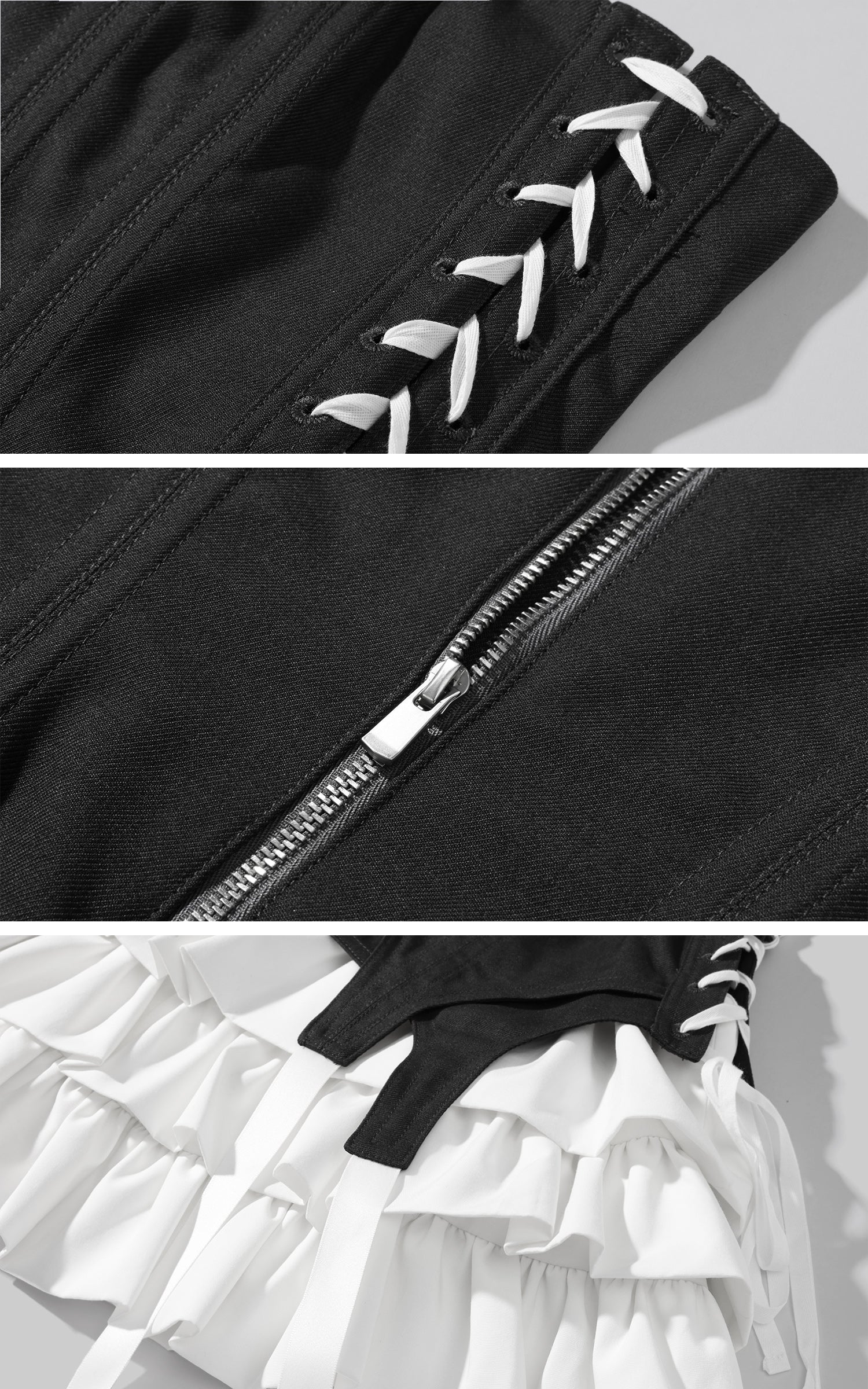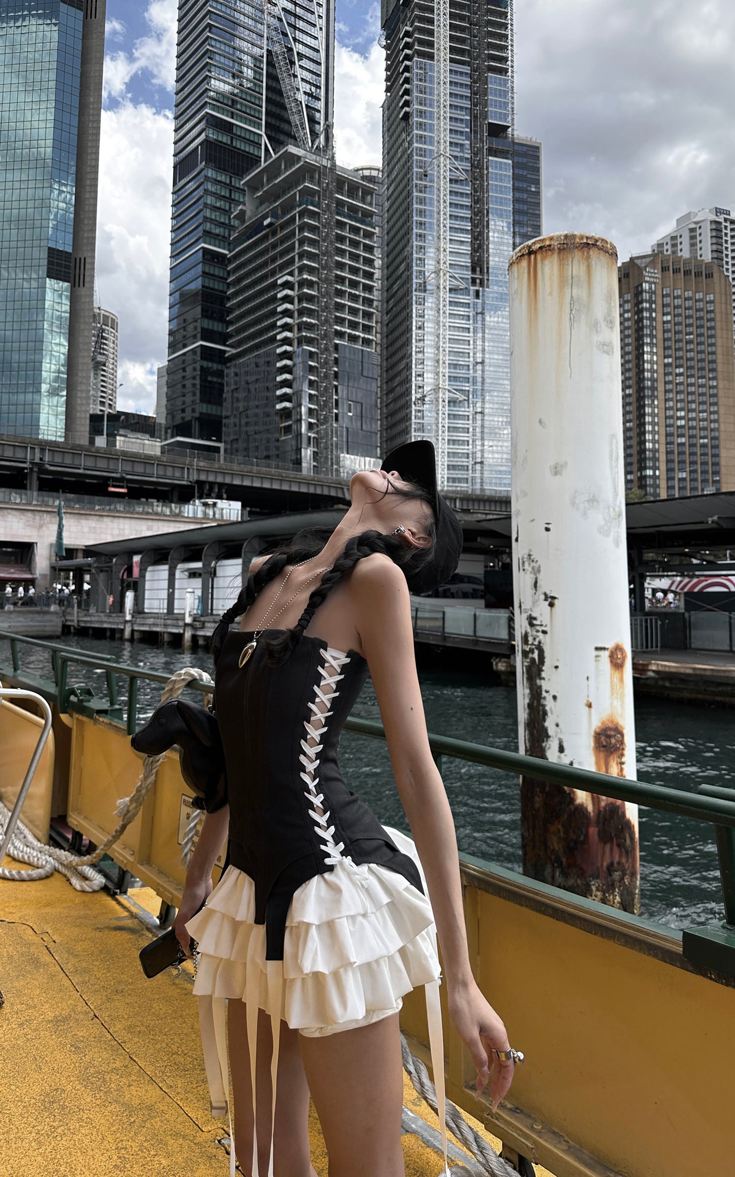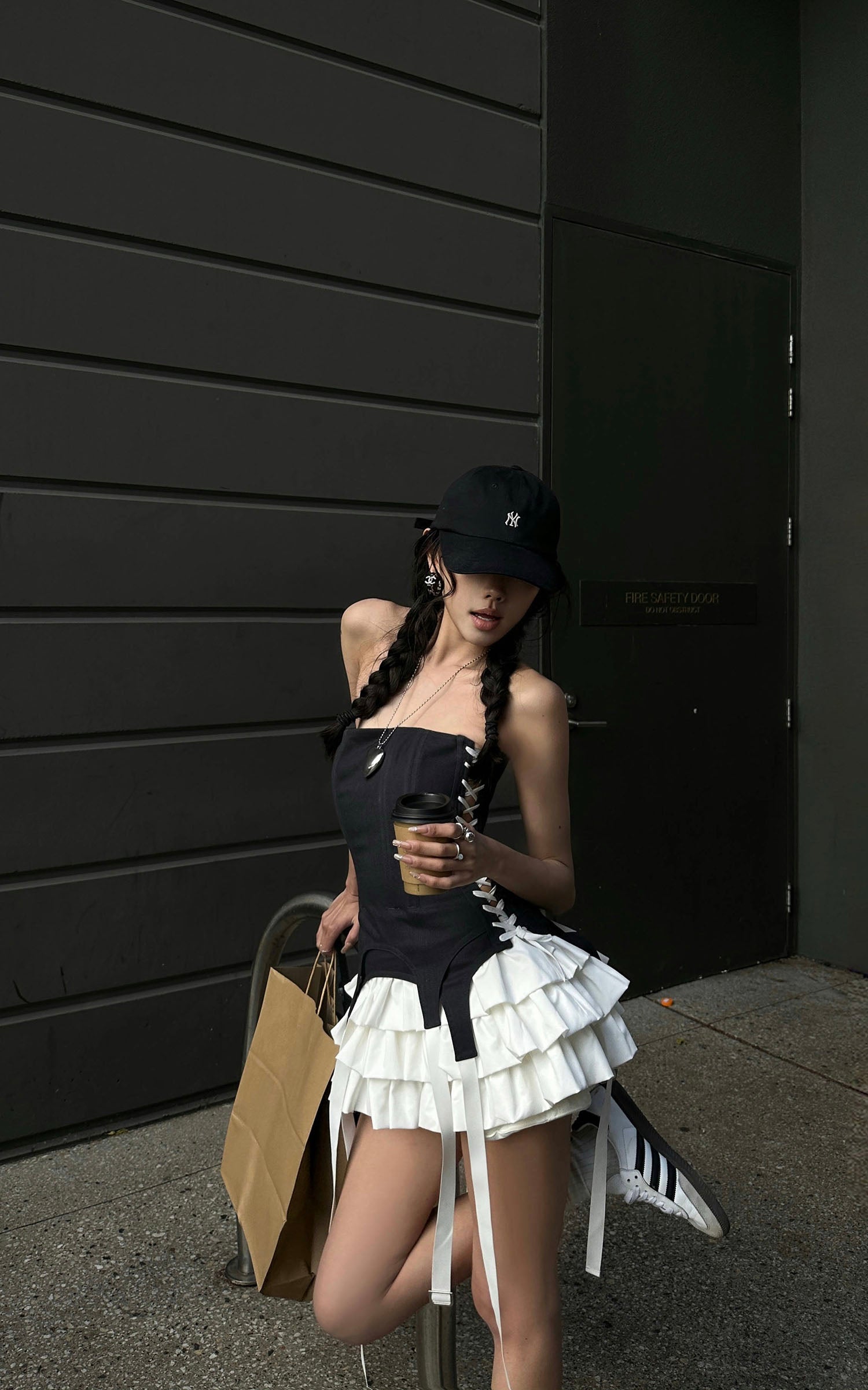 <tc>WARDEN EDGE</tc> Vestido corsé con dobladillo plisado en capas y detalle de cordones laterales
