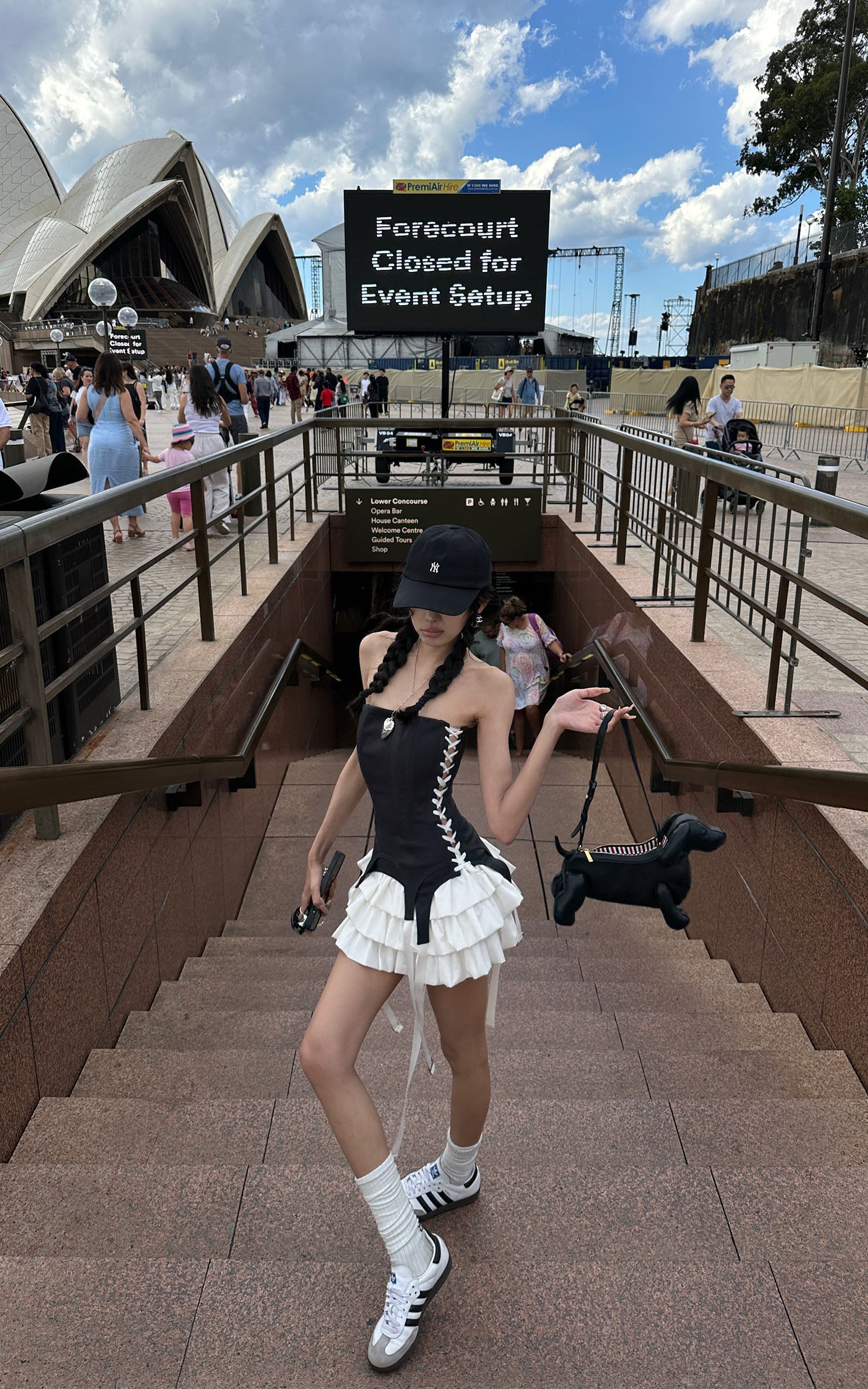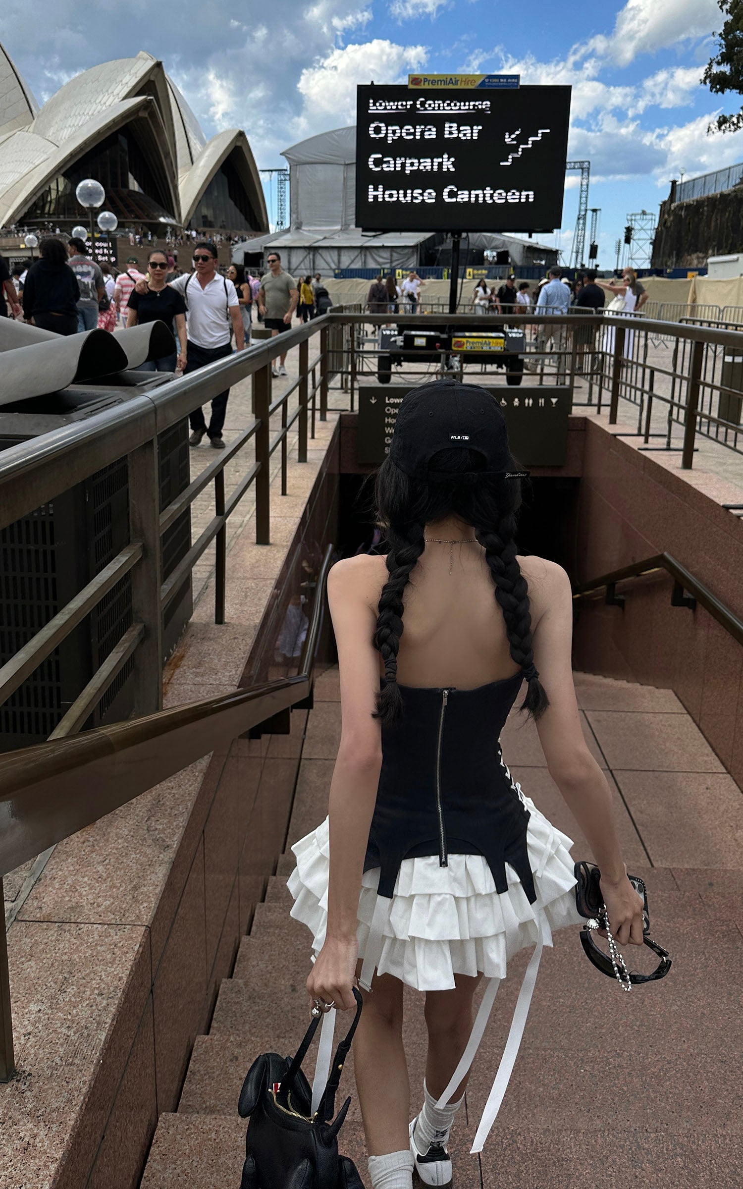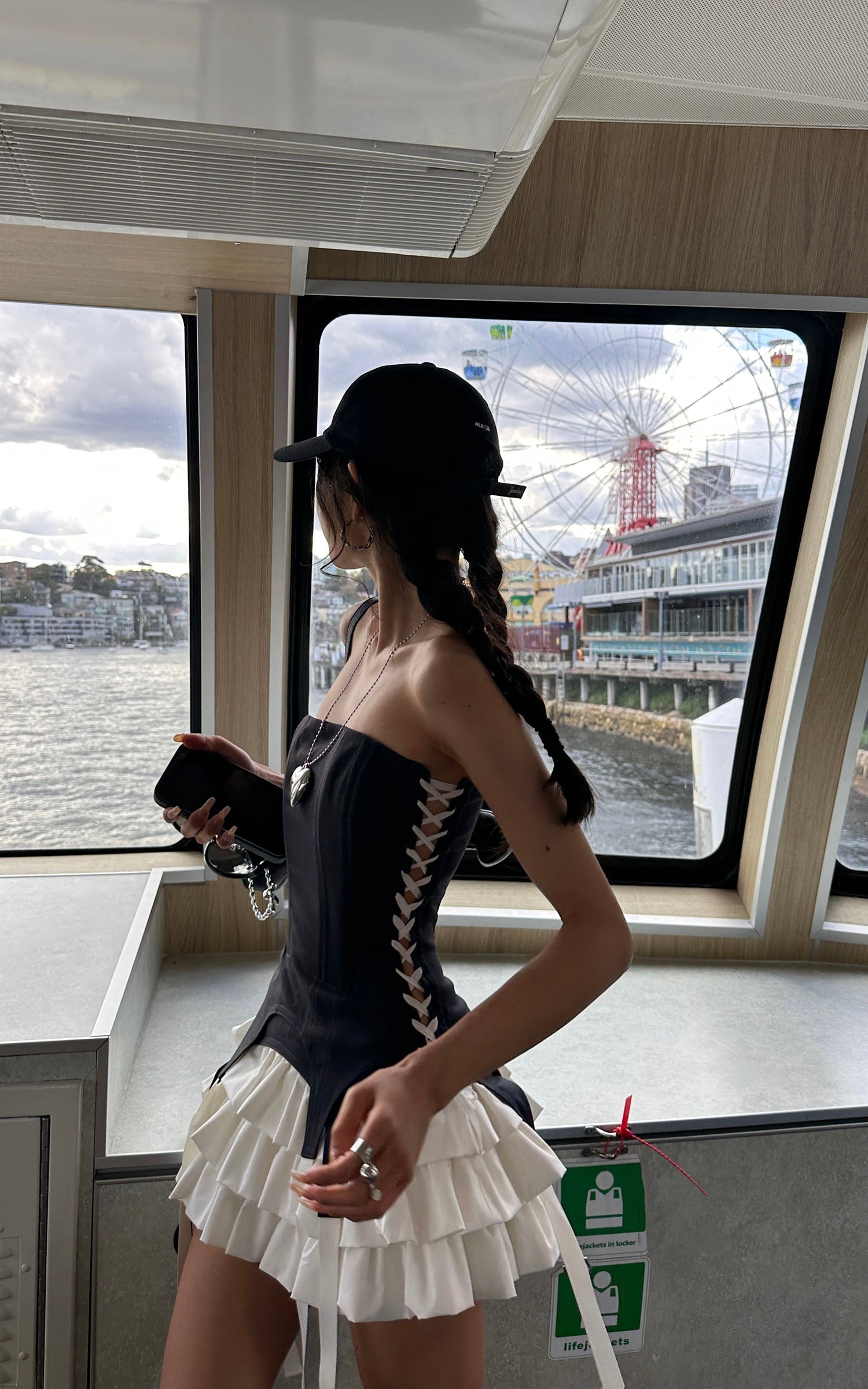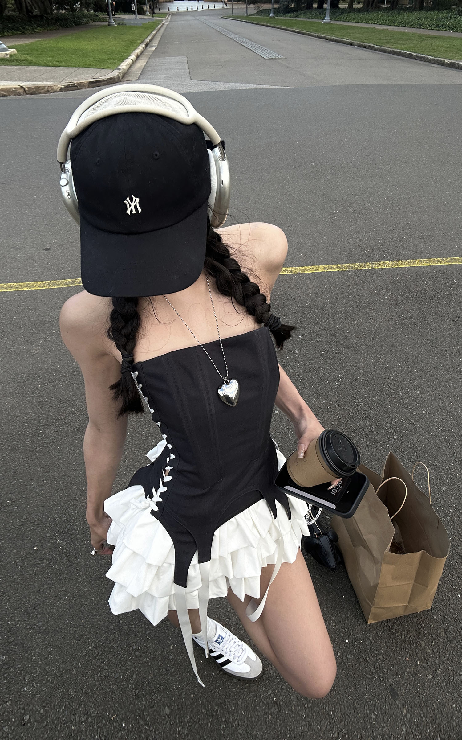 <tc>WARDEN EDGE</tc> Vestido corsé con dobladillo plisado en capas y detalle de cordones laterales