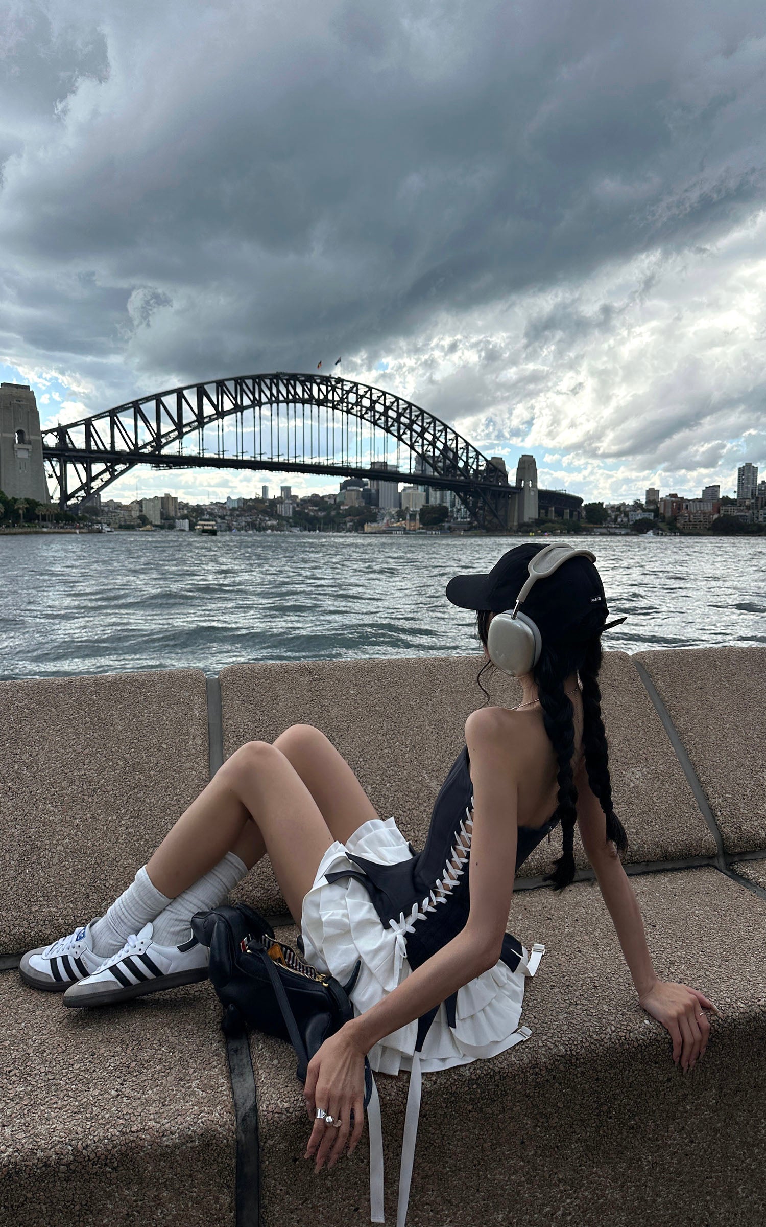 Un estudio en tensión y liberación. Este vestido corsé fusiona una estructura escultórica con capas teatrales. El corpiño abraza con firmeza a medida, con cintas laterales que enmarcan la silueta con propósito. Abajo, pliegues en cascada se despliegan en un volumen deliberado—suave, pero imponente. Cada elemento está considerado, cada borde lo suficientemente inacabado para mantenerse crudo. Llévalo para poseer el espacio, no solo para ocuparlo.