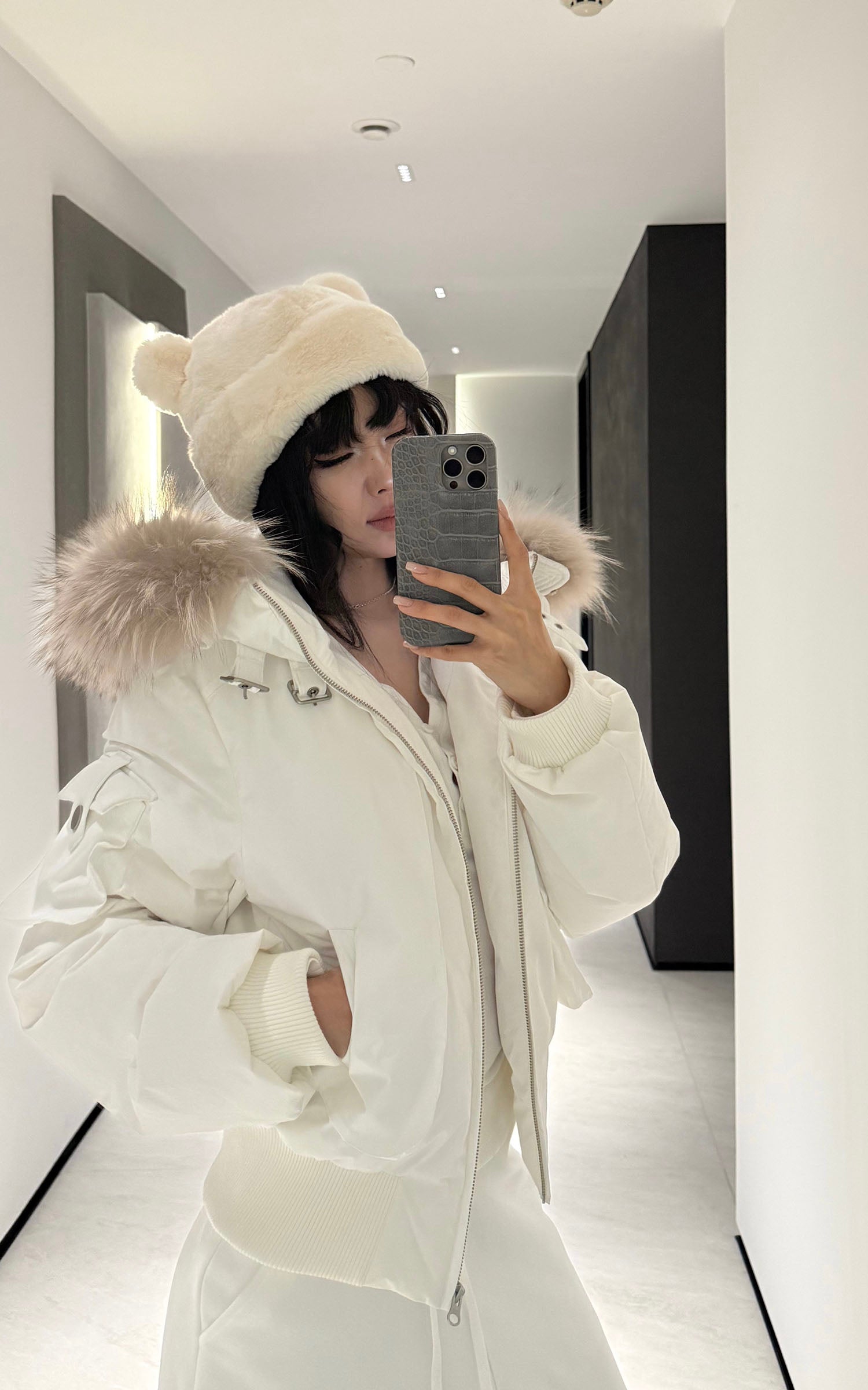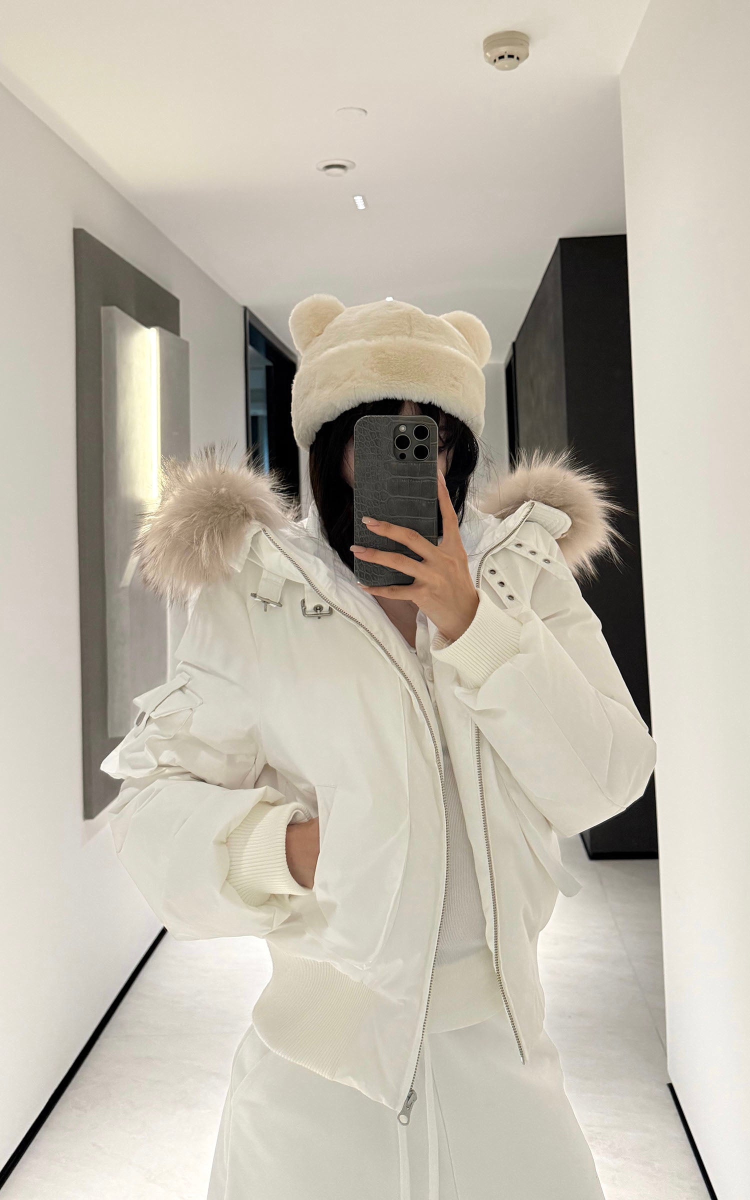 Una fusión de calidez y estilo—esta chaqueta puffer corta redefine el minimalismo para el clima frío. Hecha de tela mate de alta densidad con rendimiento a prueba de viento, ofrece una silueta estructurada pero ligera. La capucha de piel sintética desmontable añade un contraste de textura y eleva el uso diario, mientras que el corte corto mejora la proporción y el equilibrio. Las hebillas de metal y los bolsillos utilitarios aportan un toque funcional y urbano. Diseñada para superponer con pantalones relajados o tejidos llamativos, canaliza una actitud callejera segura y sin esfuerzo.