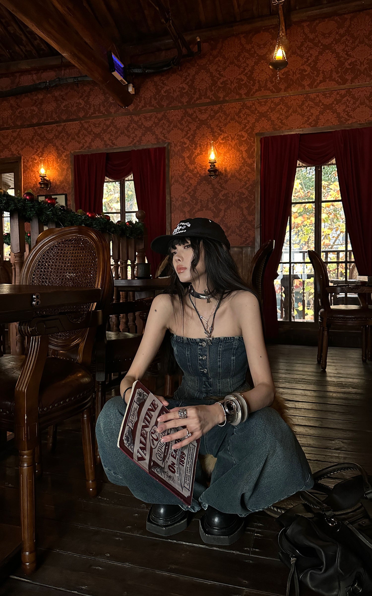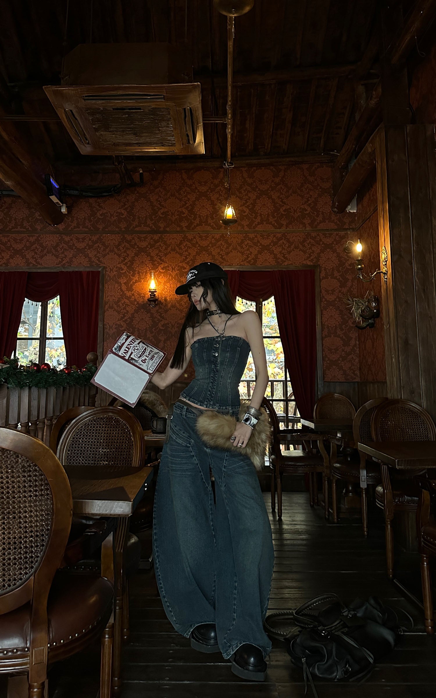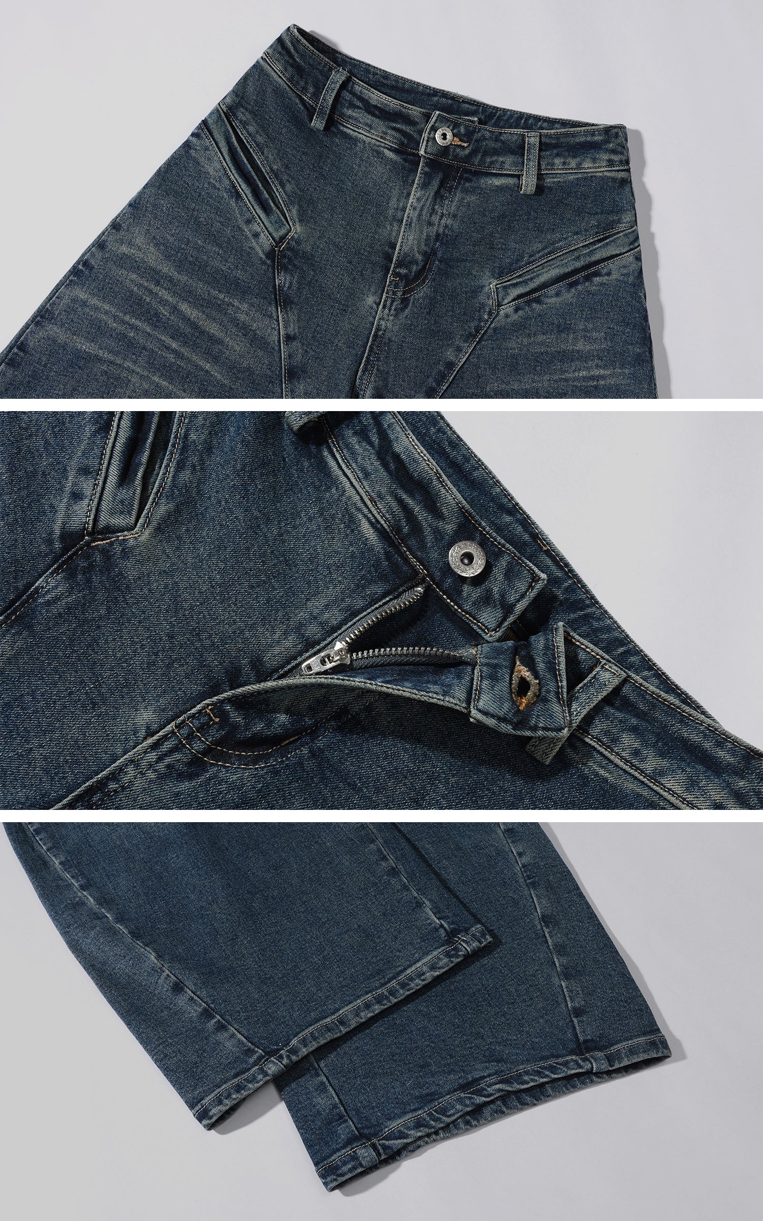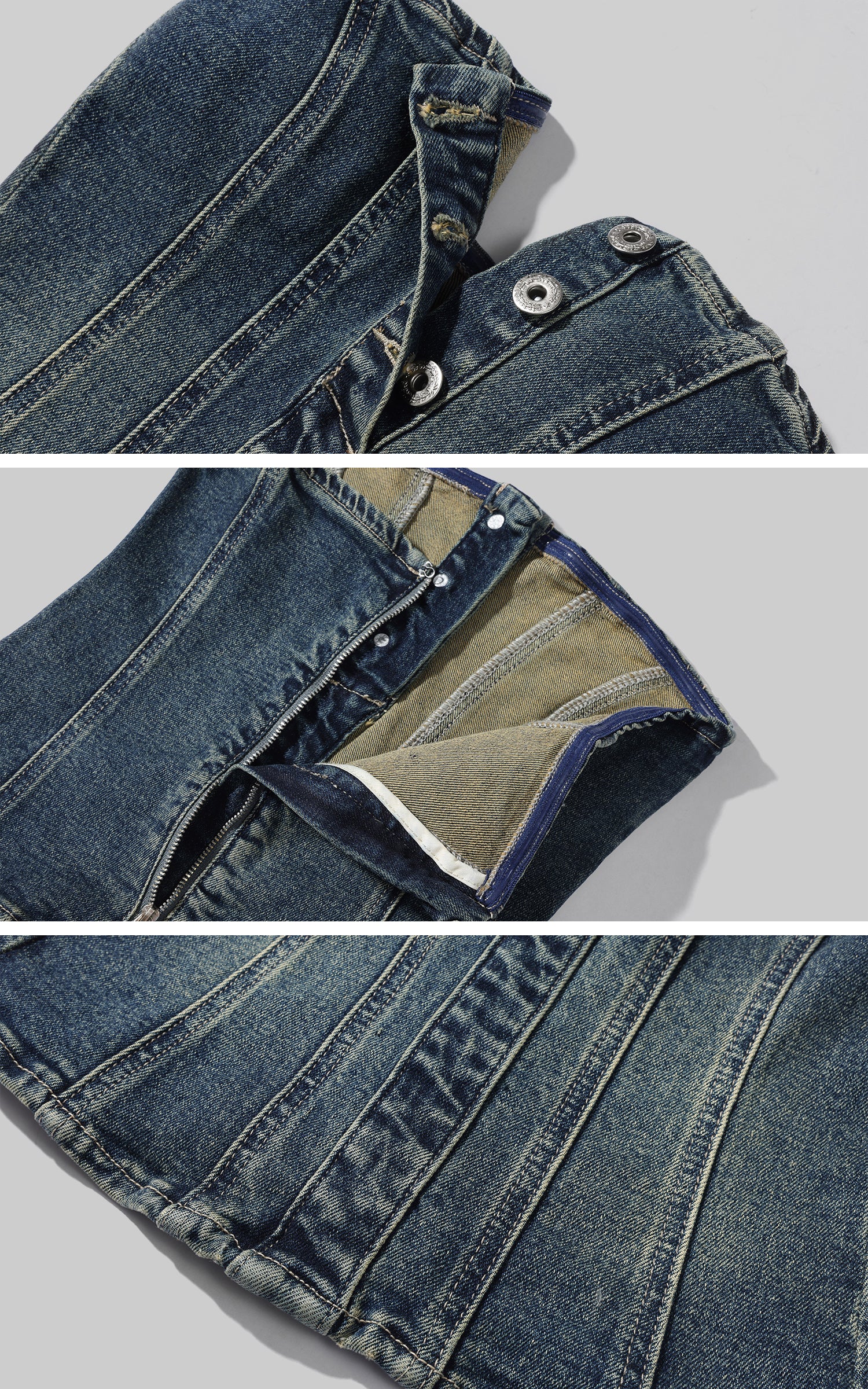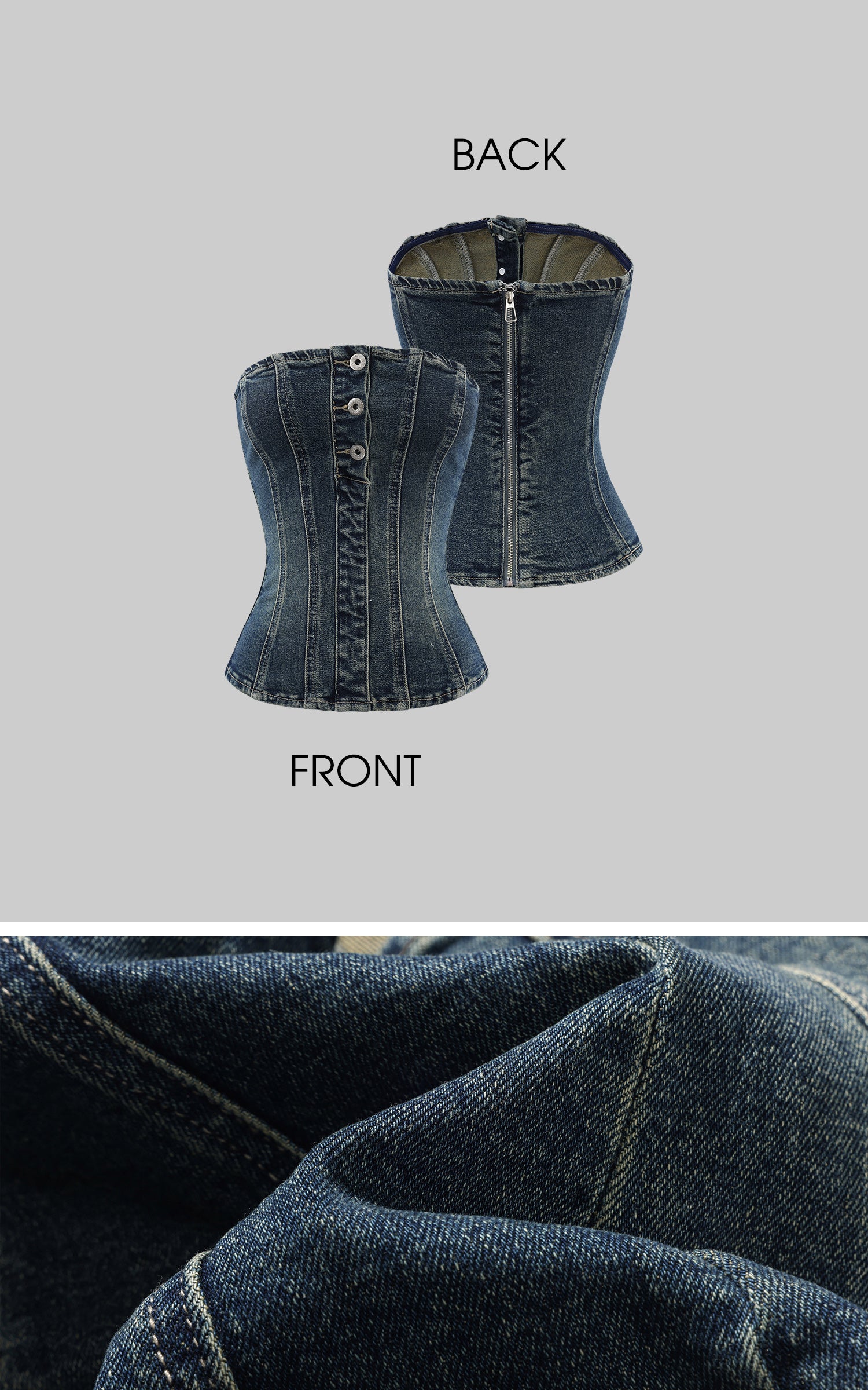 Este conjunto de mezclilla une estructura y conciencia corporal a través de una silueta refinada y unificada. El bustier sin tirantes presenta paneles esculpidos y costuras verticales que definen el torso con precisión, mientras que los pantalones de pierna ancha de talle alto introducen volumen a través de cortes arquitectónicos que extienden la línea inferior. Confeccionado en mezclilla lavada, el conjunto equilibra la textura vintage con un borde contemporáneo y afilado. Diseñado para ser usado como un look completo o estilizado por separado, ofrece una presencia contenida pero poderosa, adecuada para ropa urbana, looks enfocados en el estilo o vestimenta expresiva para el día a día.