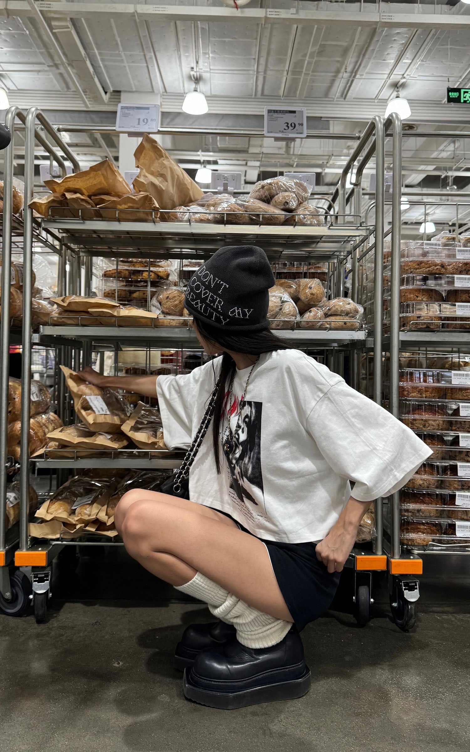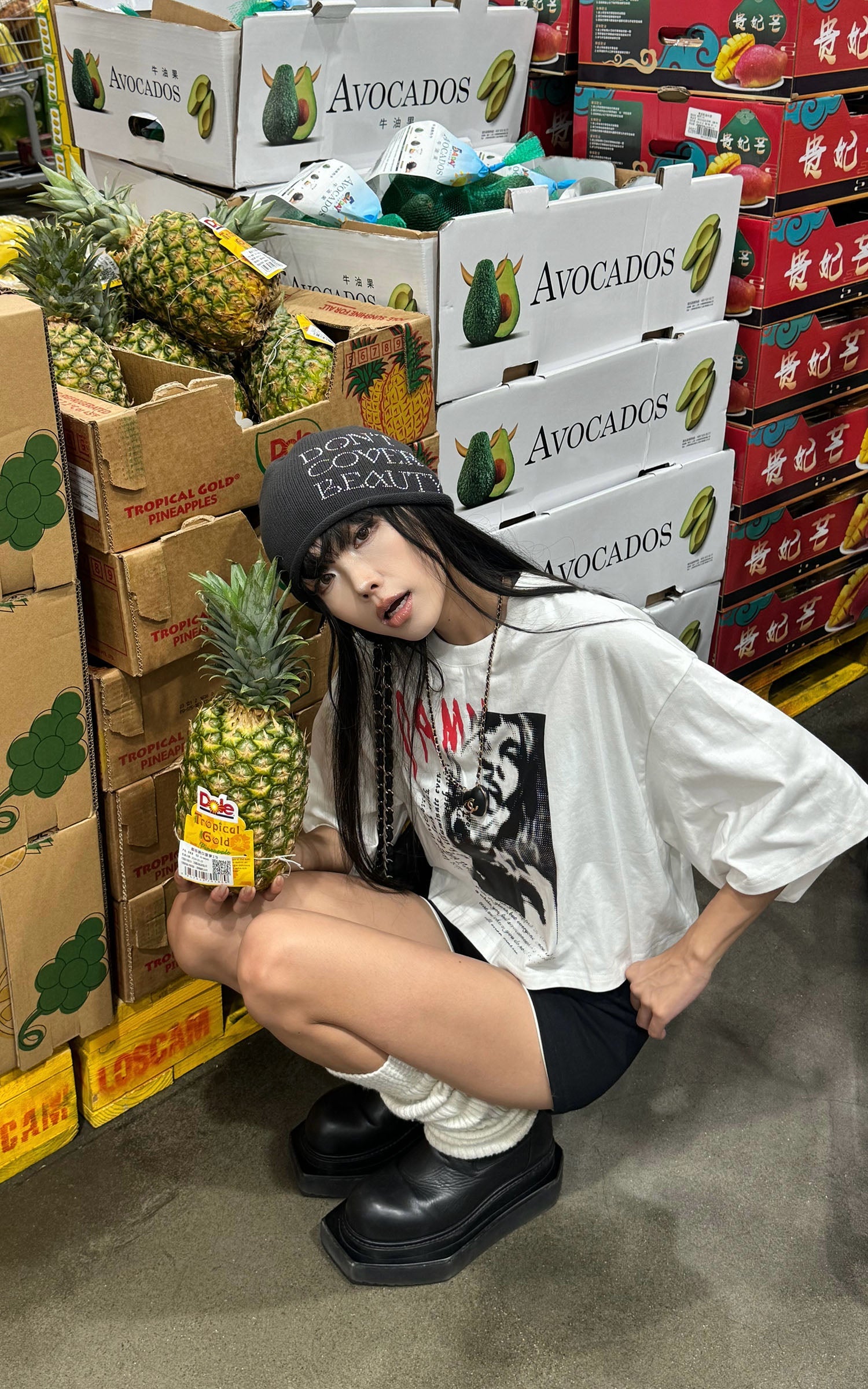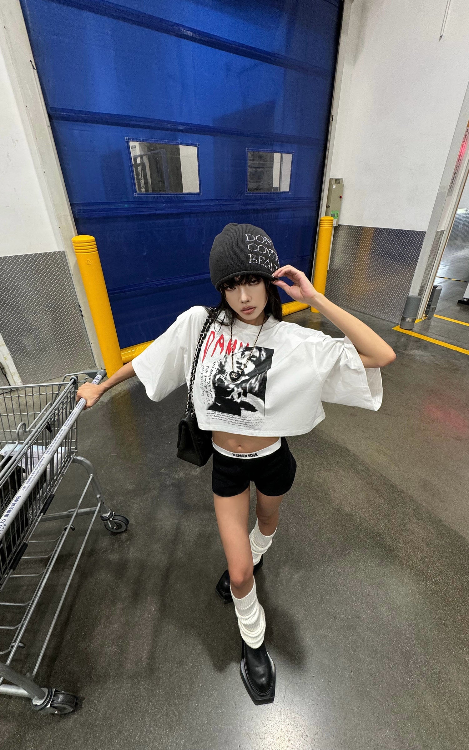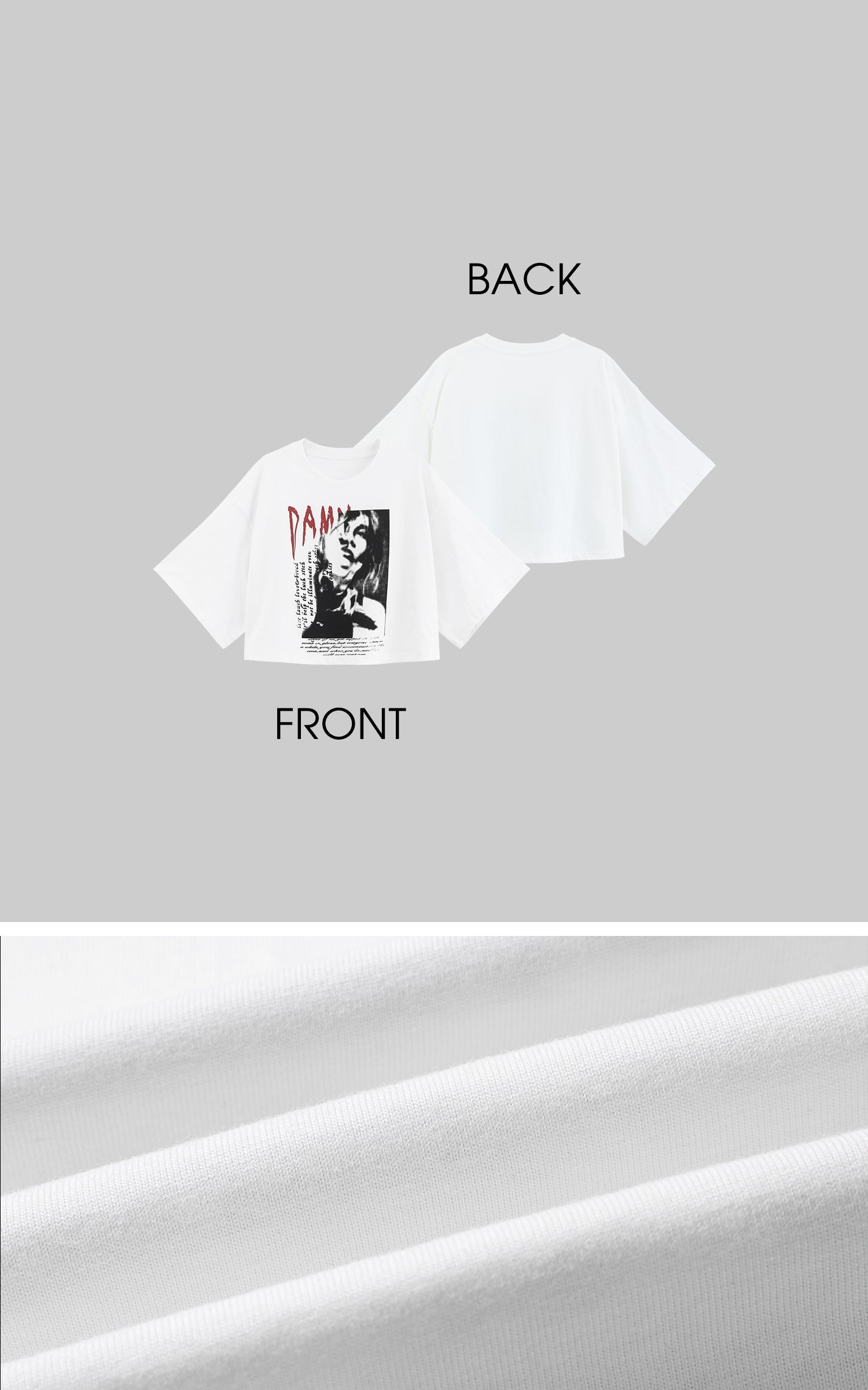 Una interpretación cruda del vestir casual. Esta camiseta corta y holgada presenta un retrato monocromático difuminado enmarcado con tipografía desgastada y acentos rojo sangre, canalizando el espíritu de la rebelión. Confeccionada en suave algodón de gran peso con una caída ligeramente estructurada, las mangas anchas y la silueta cuadrada empujan los límites entre lo urbano y lo llamativo. Úsala sola o en capas para amplificar el ruido.