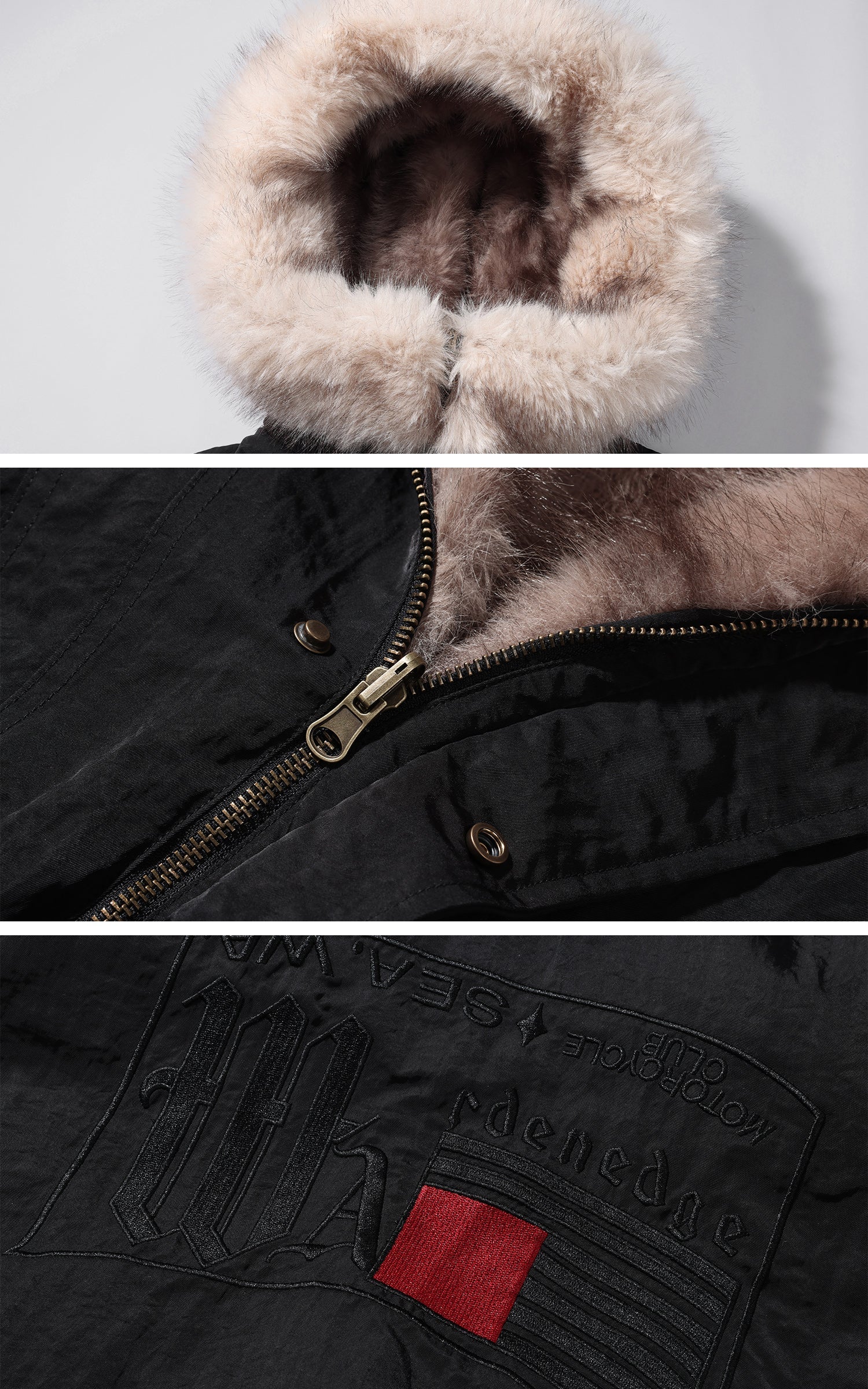 Una bomber reinventada con una actitud audaz y funcionalidad para la temporada fría. La capucha de piel sintética sobredimensionada enmarca la silueta con un volumen dramático, mientras que la capa texturizada y las mangas fruncidas añaden peso y movimiento. Un dobladillo estructurado crea una forma limpia y recortada que contrasta con el interior suave. Diseñada para llevar la utilidad a un nuevo espacio: silenciosamente audaz, cálida e instantáneamente direccional.