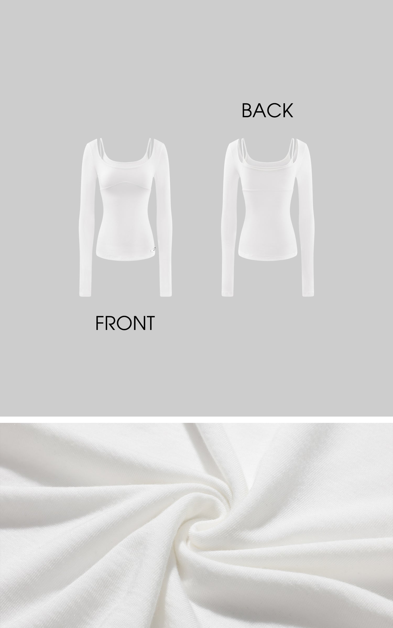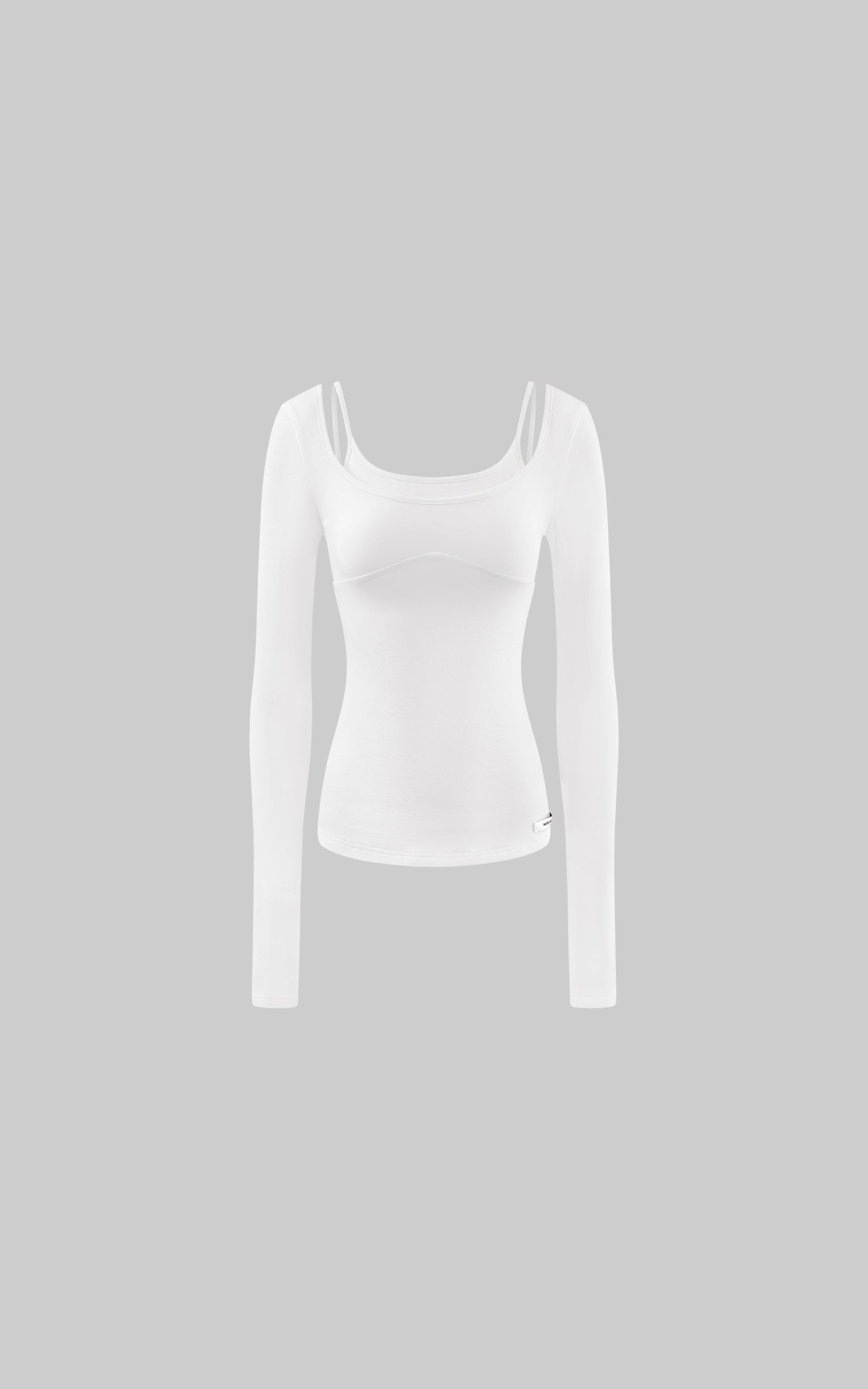 Esta camiseta de manga larga redefine una capa base clásica a través de una construcción de ilusión en capas. Los detalles superpuestos en el escote y los hombros crean una profundidad sutil y una tensión visual, atrayendo la atención hacia la clavícula y la parte superior del cuerpo sin exposición excesiva. La silueta ajustada sigue la curva natural de la cintura, mientras que la tela ligera cae suavemente para una sensación fluida y consciente del cuerpo. Las mangas extendidas añaden una sensación de suavidad y contención, equilibrando la intimidad con el control. Diseñada para usarse sola o en capas sin esfuerzo bajo prendas exteriores, la pieza ofrece un toque sensual y discreto arraigado en el minimalismo moderno.