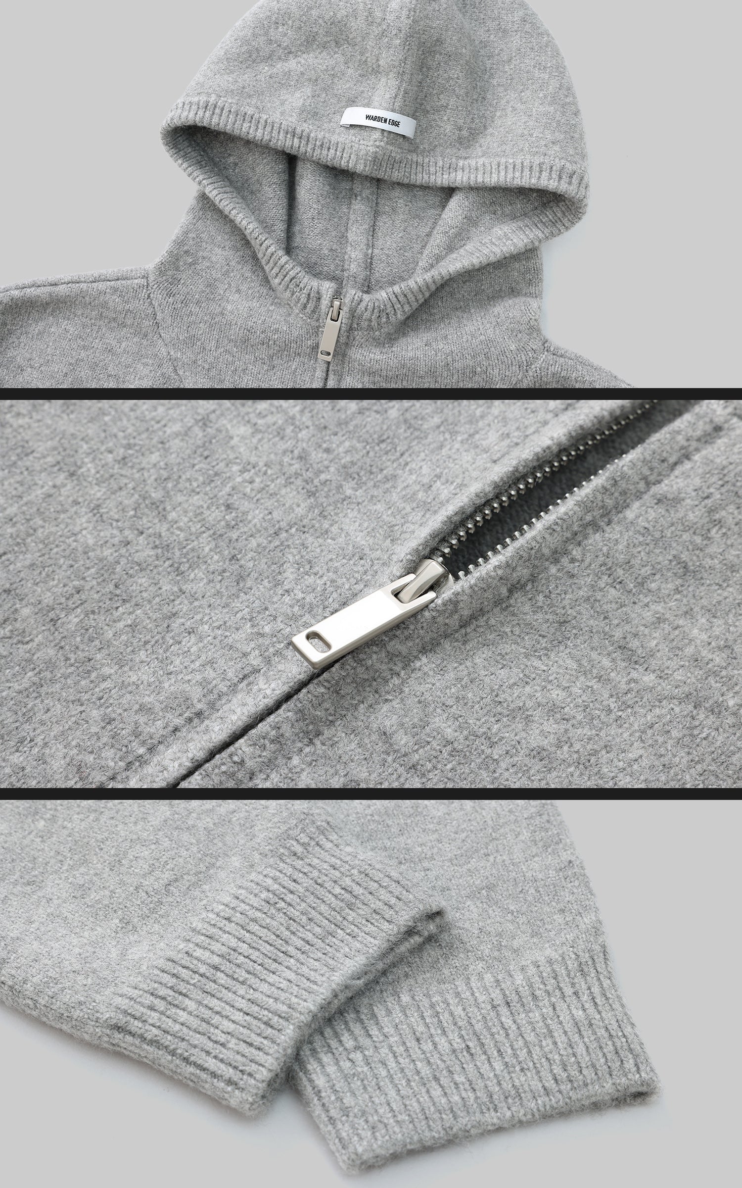 La sudadera con capucha de punto con cremallera presenta una silueta audaz y voluminosa que equilibra perfectamente comodidad y diseño.
