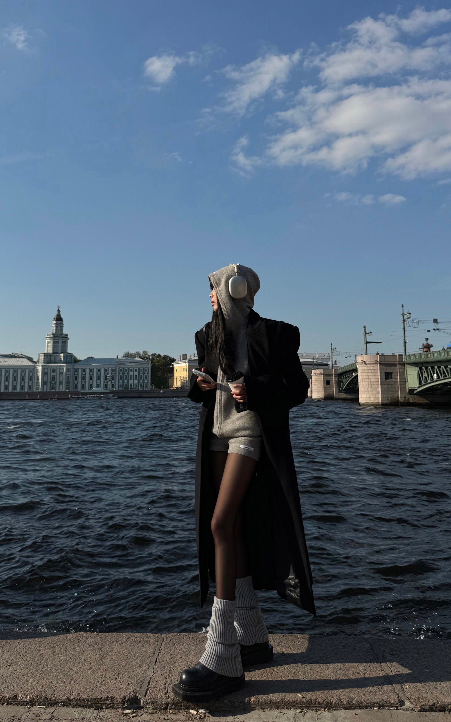 Combinada con shorts de punto de cintura alta, el ajuste elegante y estilizado resalta el top oversize con un contraste sin esfuerzo.
