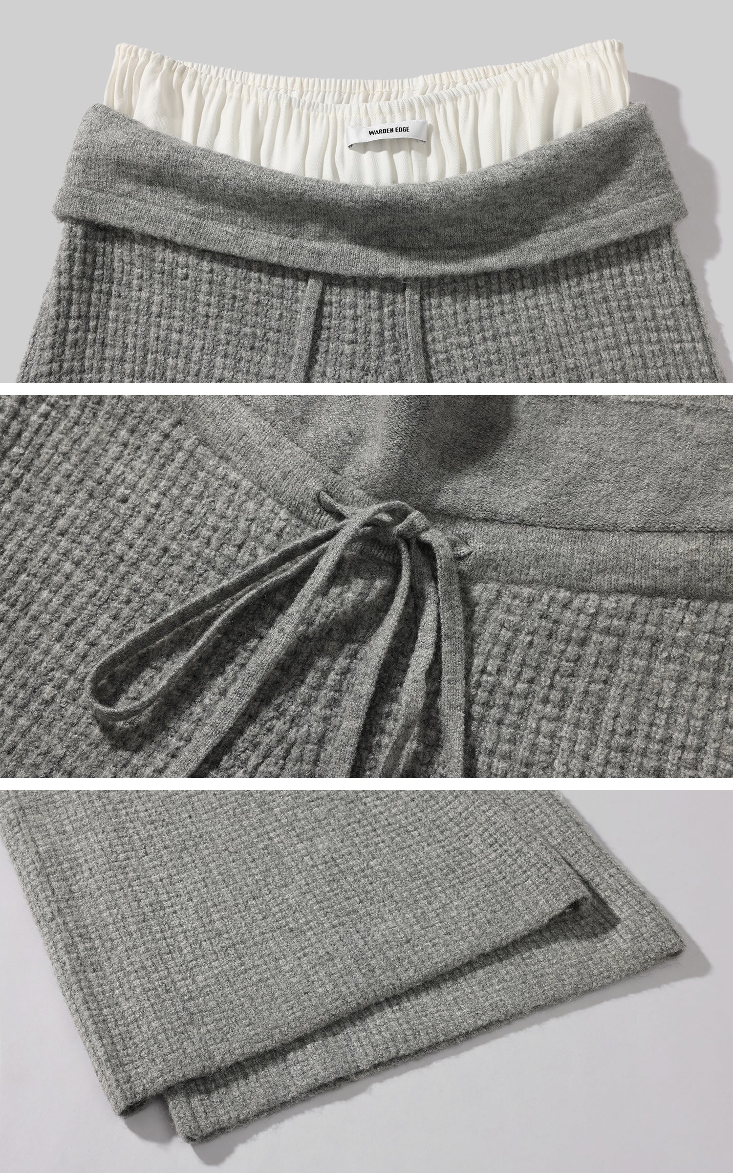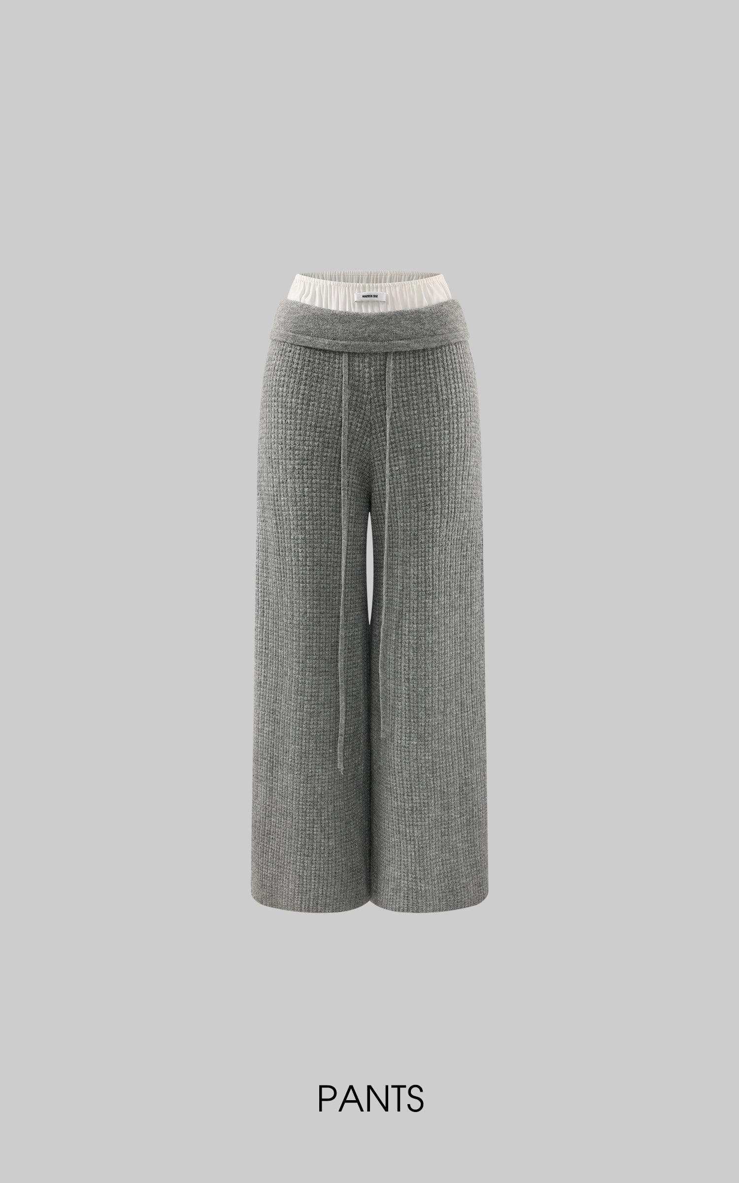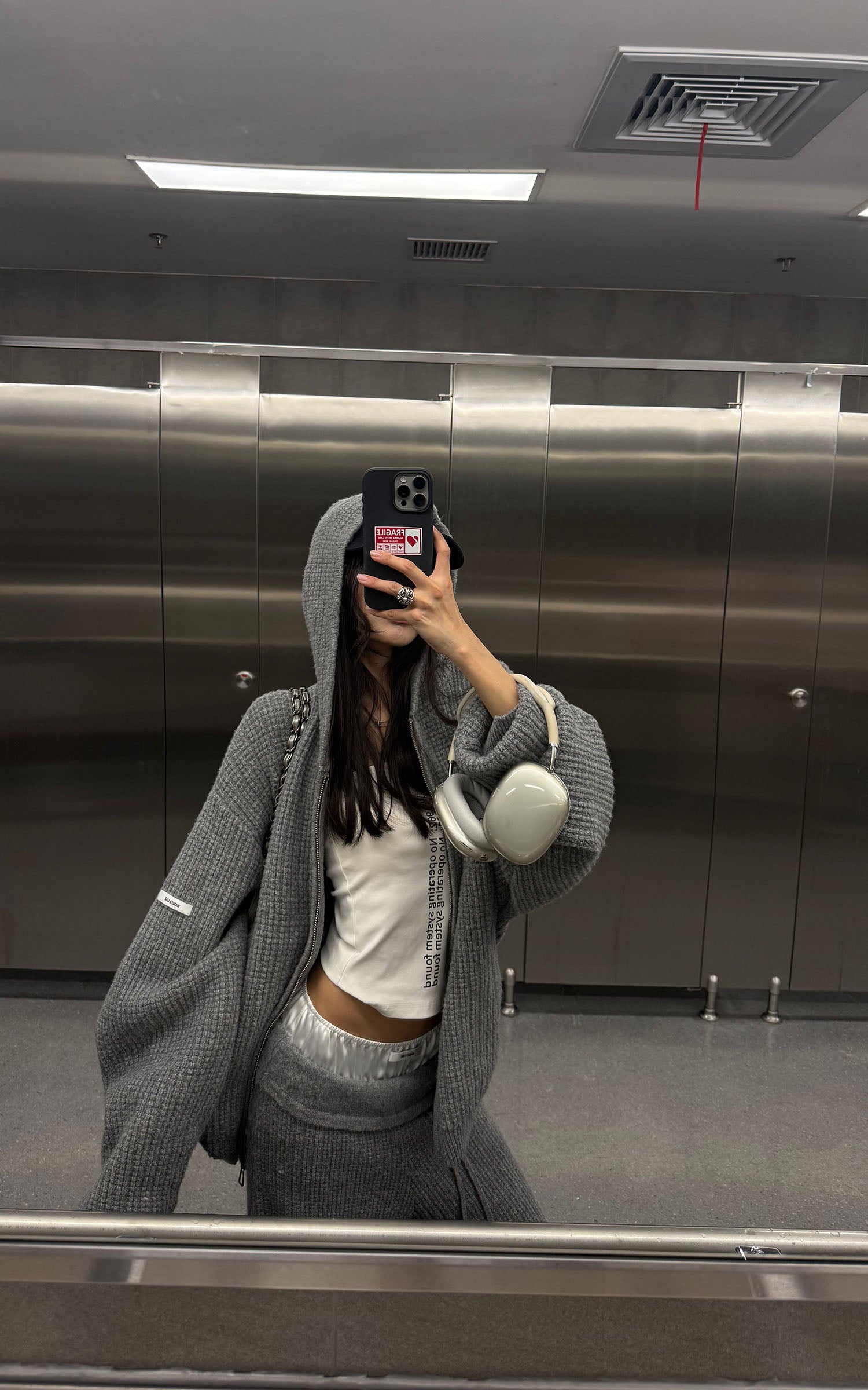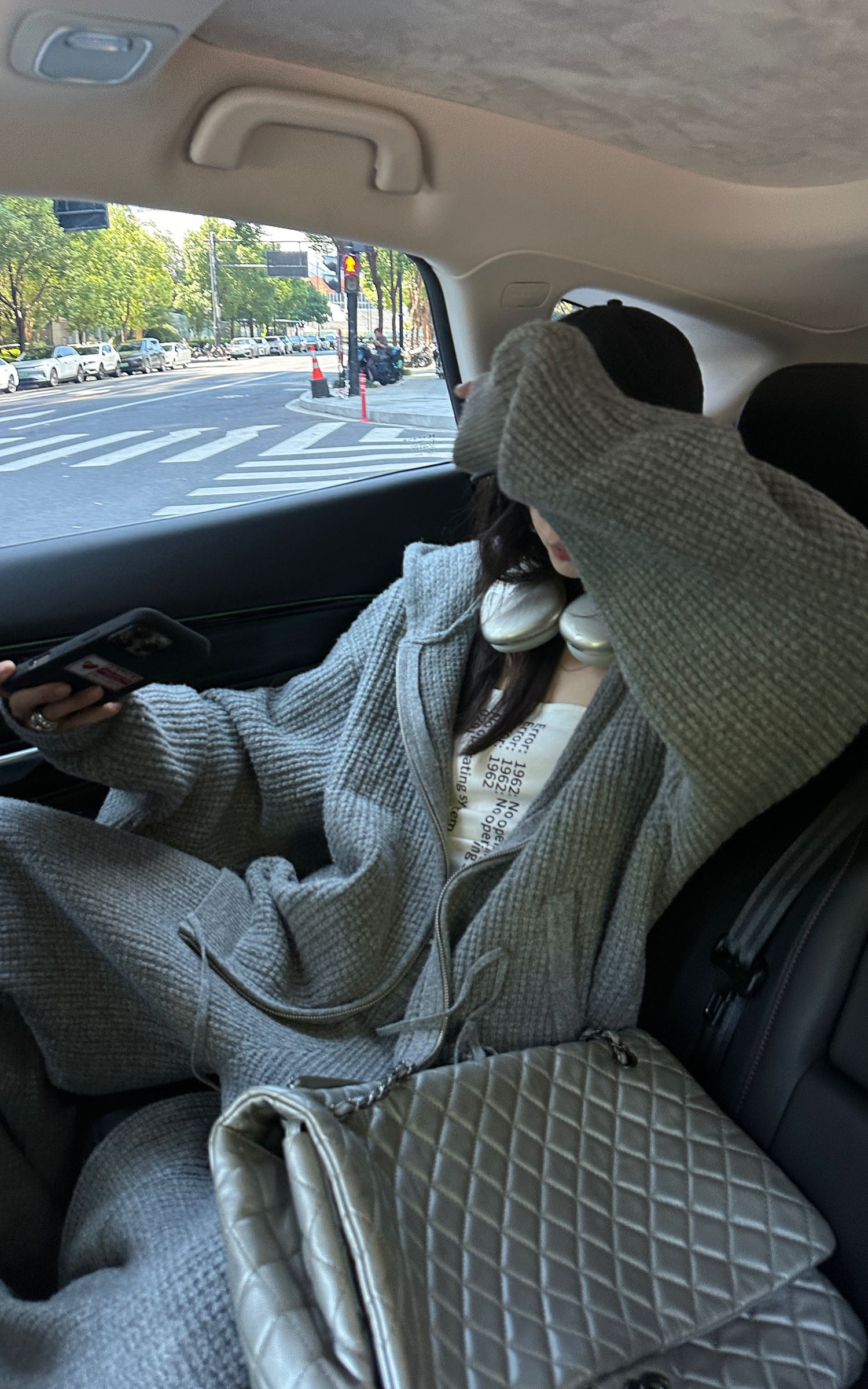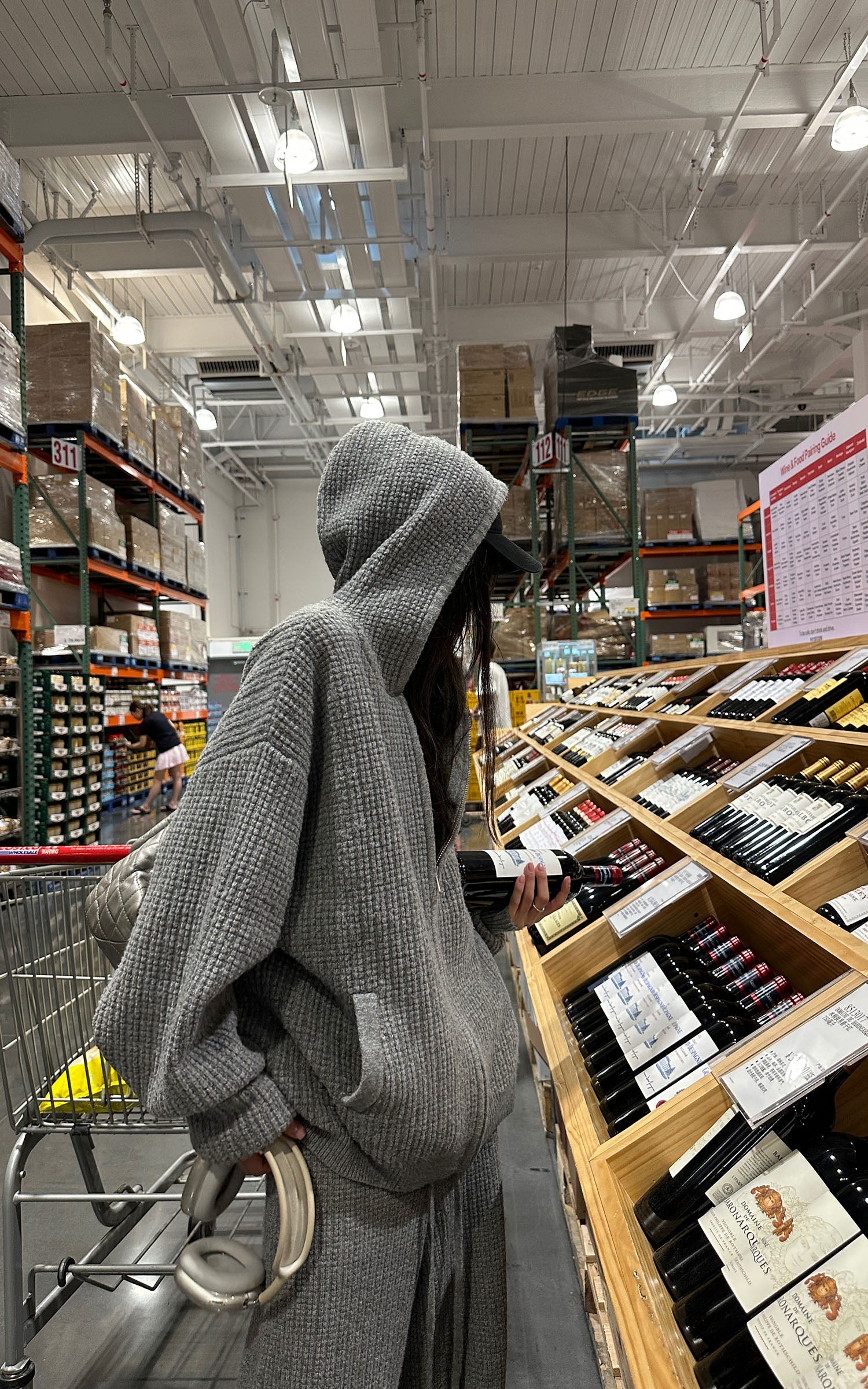 Un conjunto de punto texturizado que presenta una chaqueta con capucha de gran tamaño y pantalones de pierna ancha, diseñado para una silueta relajada pero estructurada. Confeccionado con hilo grueso y suave con una textura sutil acanalada, combina comodidad con un toque vanguardista. Los hombros caídos y las mangas voluminosas realzan la sensación desenfadada, mientras que la cintura ajustable con cordón añade facilidad de uso. Transición sin esfuerzo entre la comodidad interior y el minimalismo urbano.