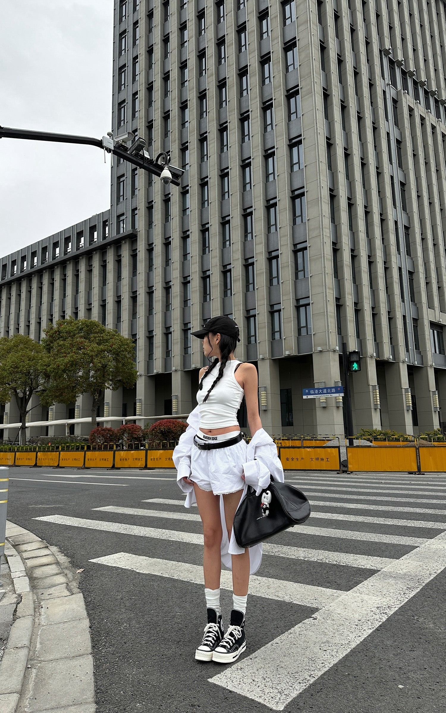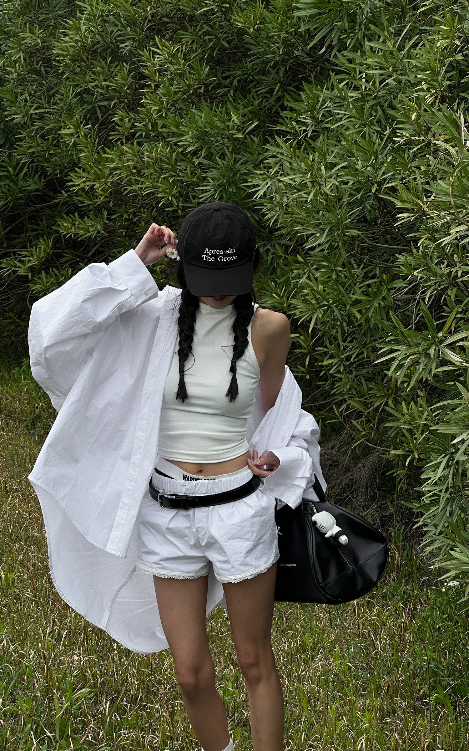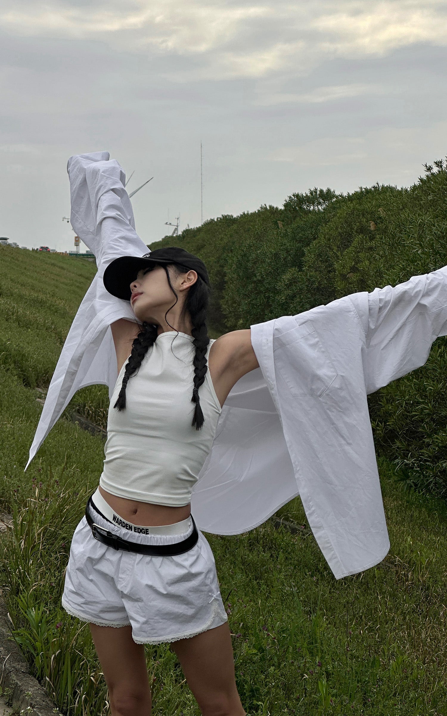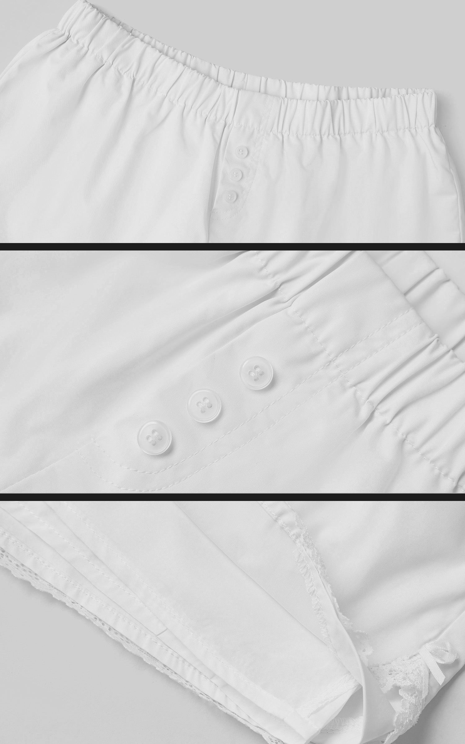 Eleva tu estilo urbano con este conjunto de camisa oversize y shorts con ribete de encaje. La camisa presenta una silueta dramáticamente oversize con hombros caídos para un ajuste relajado y contemporáneo, perfecto para superponer o usar solo. Combinado con delicados shorts con ribete de encaje, este conjunto ofrece una mezcla equilibrada de estética atrevida y femenina. La cintura elástica de los shorts asegura la máxima comodidad, mientras que las líneas limpias de la camisa añaden un estilo minimalista pero impactante. Ideal para un look versátil y casual-chic.