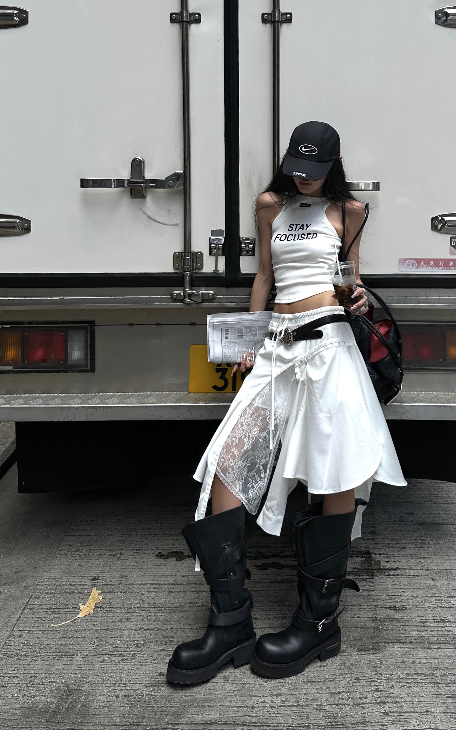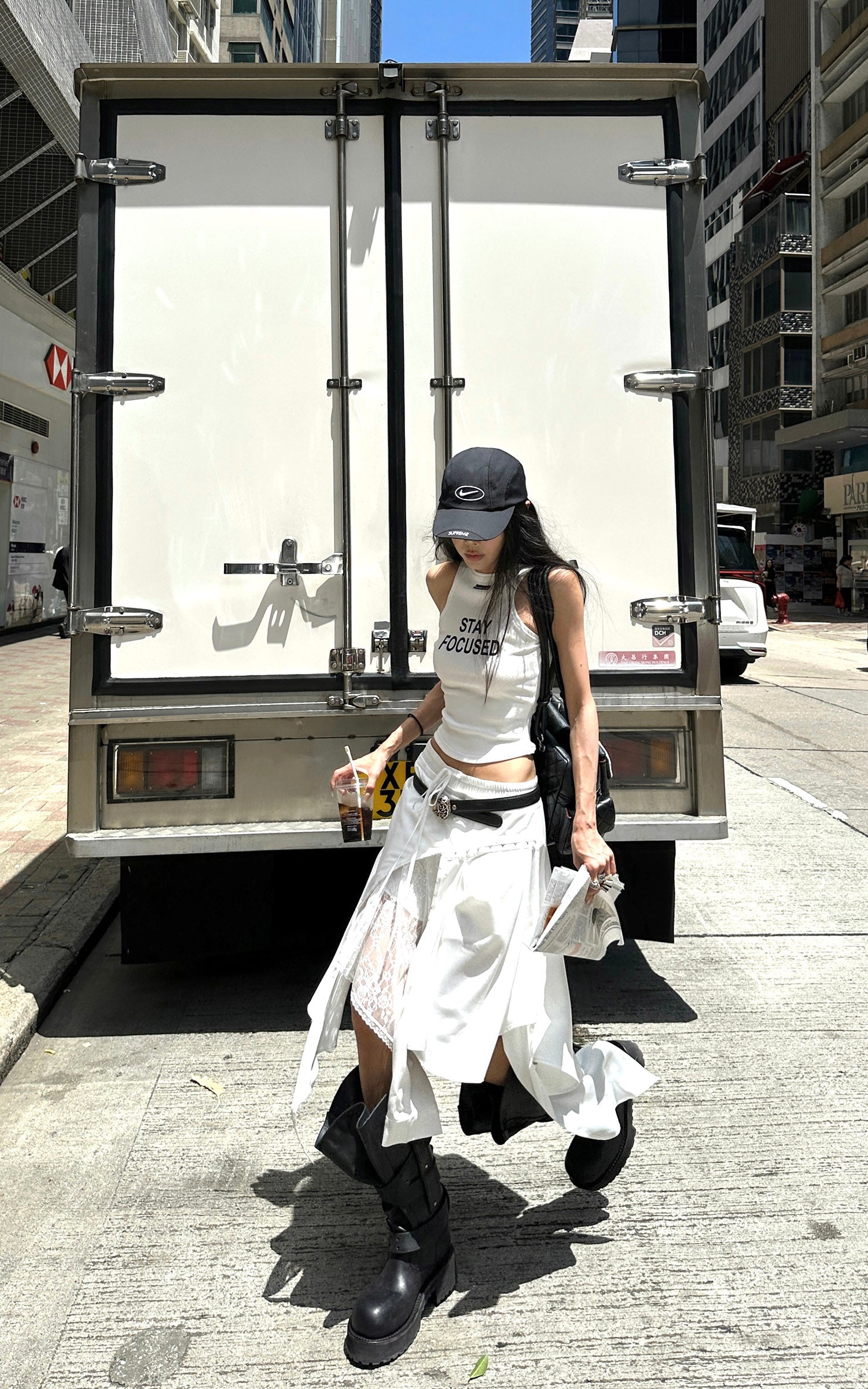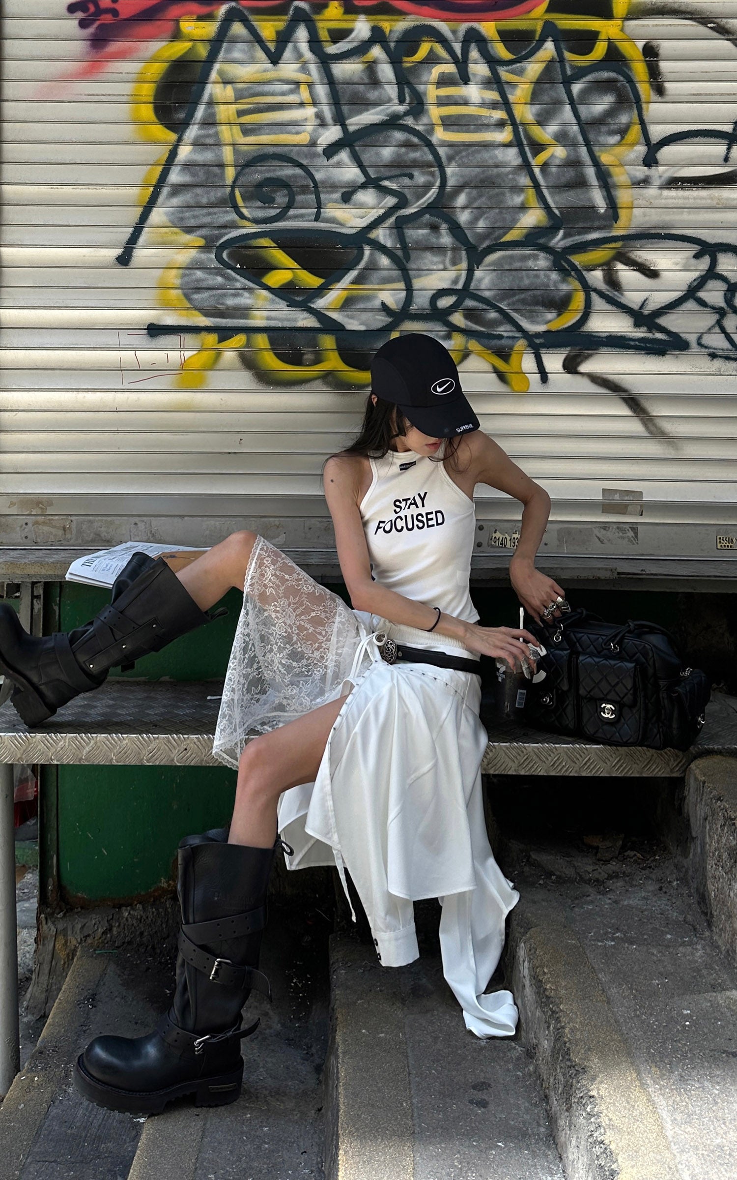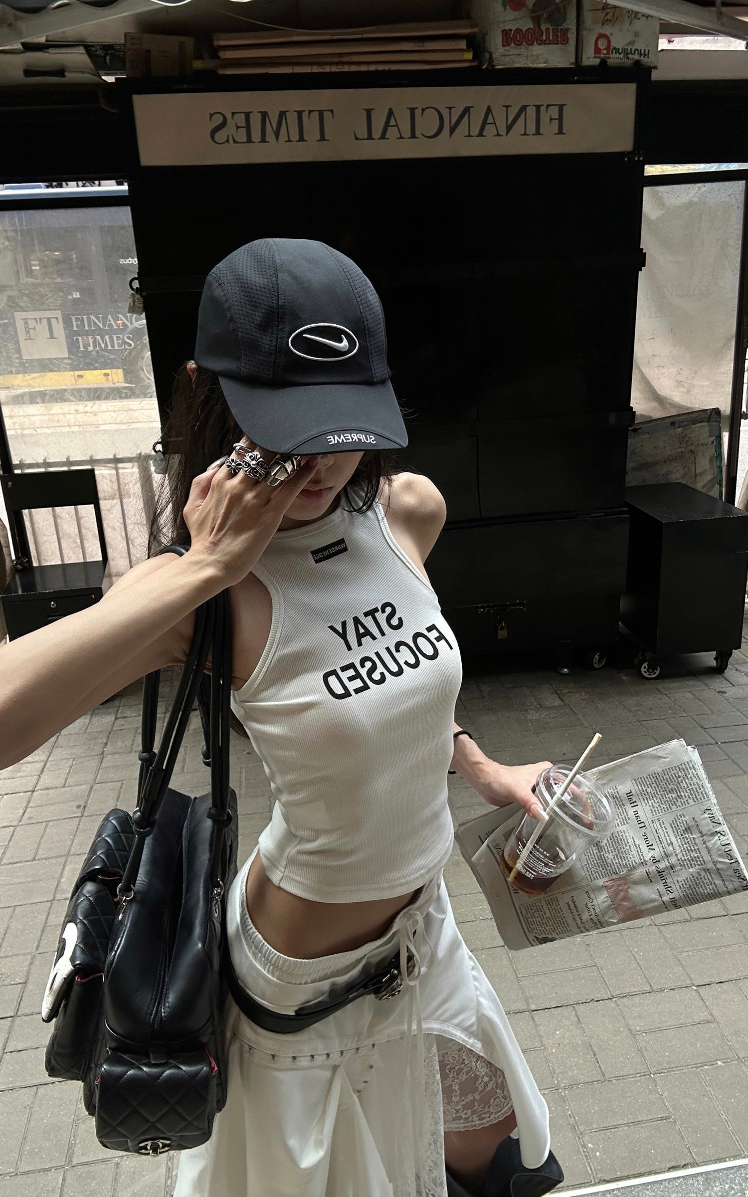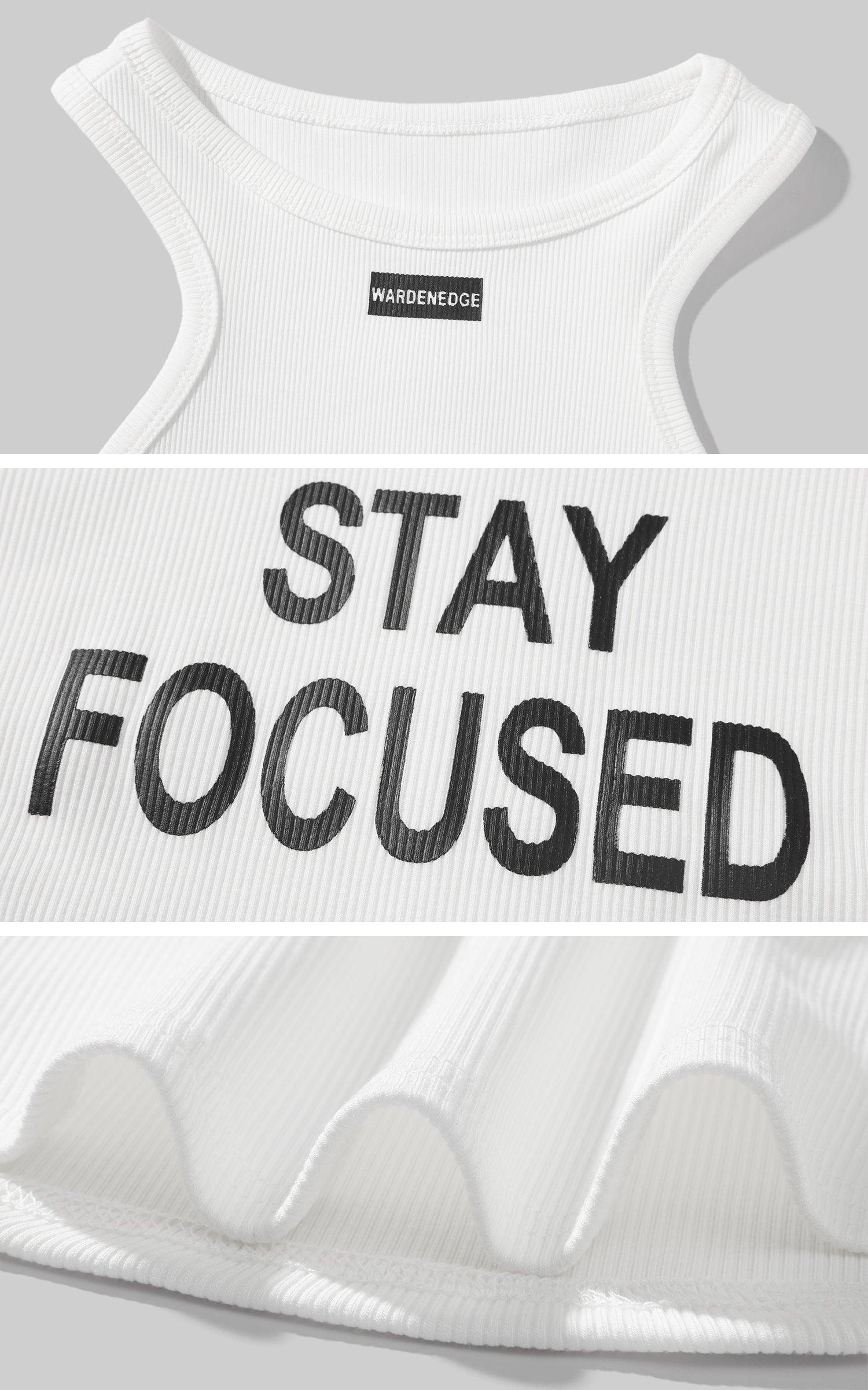 Una segunda piel estilizada con estructura. Este tanque ajustado de canalé mantiene la tensión en sus líneas limpias y su corte atlético de espalda de nadador. Letras en negrita contrastantes cortan el silencio, diseñadas para interrumpir. Los bordes de unión de precisión reflejan control, mientras que el dobladillo recortado permite espacio para respirar. Para aquellos que se mueven con agudeza en la quietud.