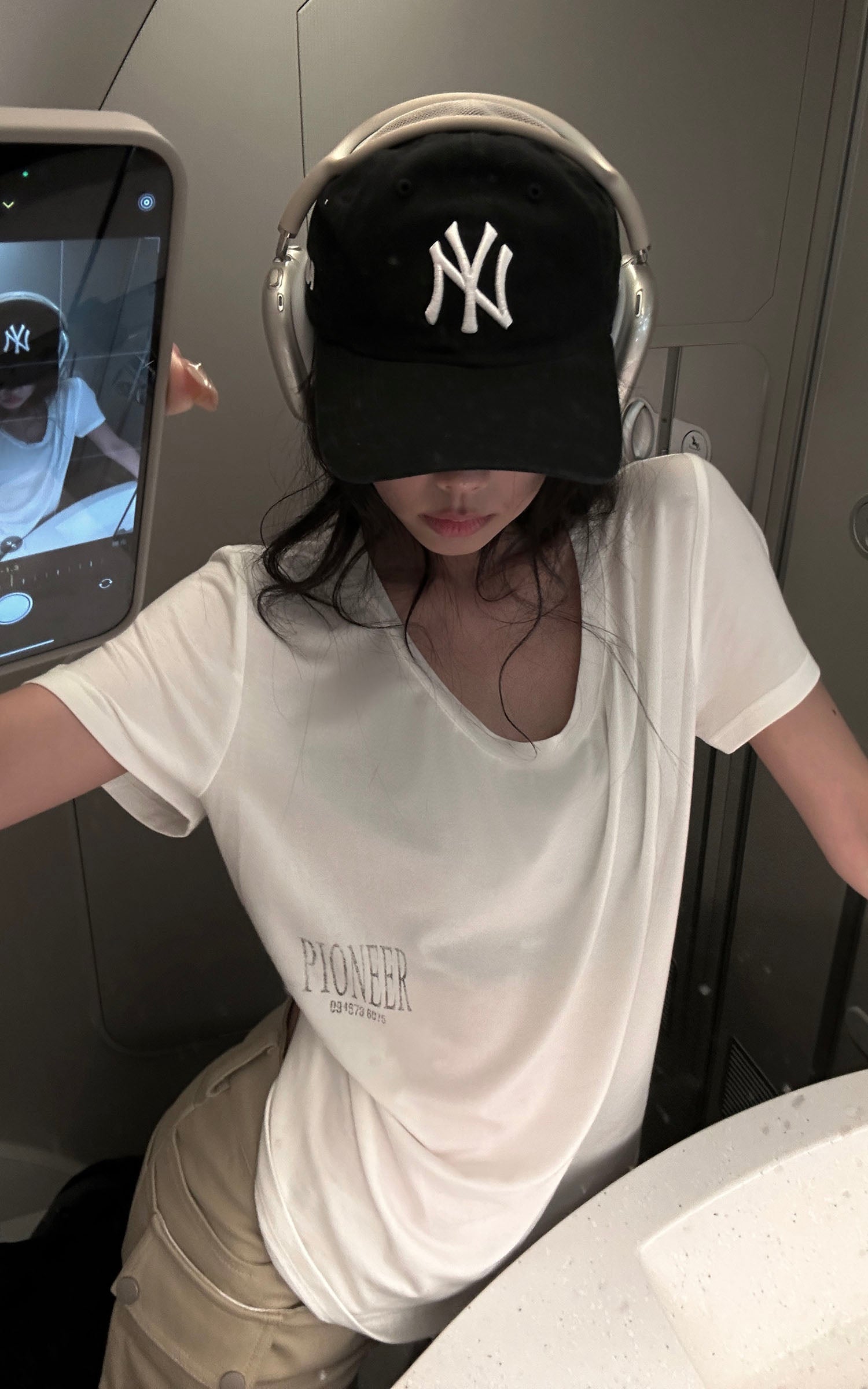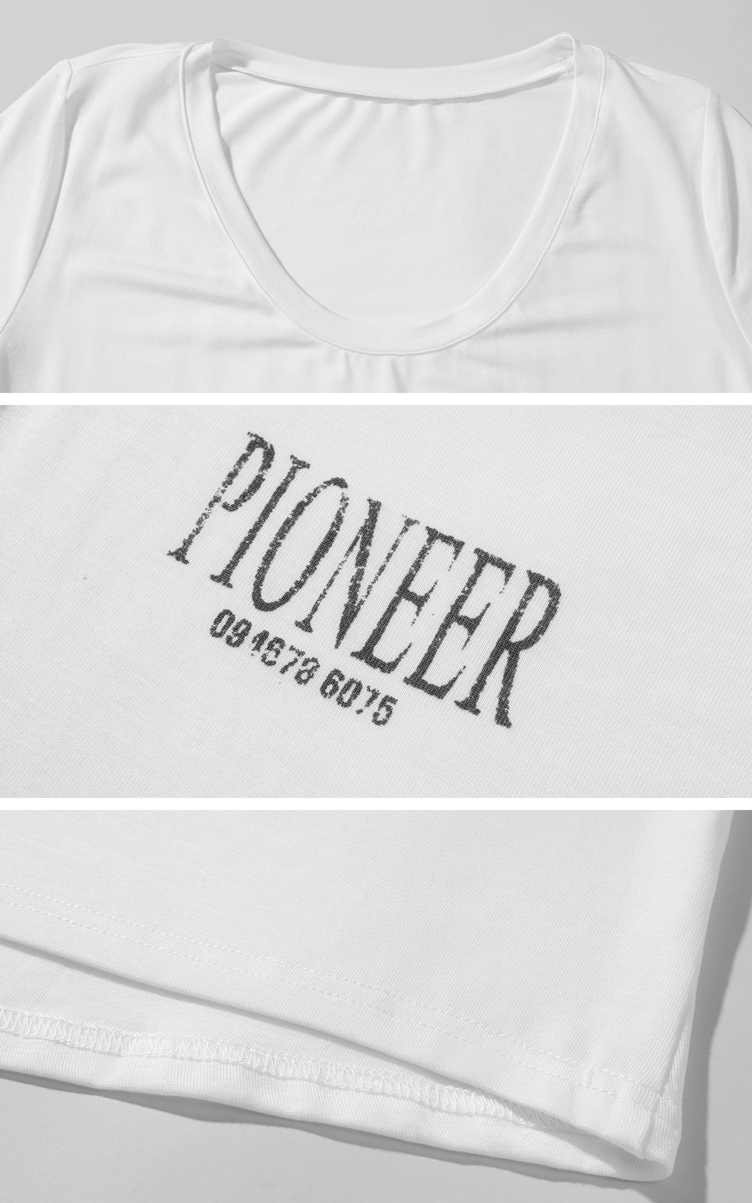 Limpio pero no silencioso. Esta camiseta blanca presenta un amplio escote redondo y un corte relajado, detallada con un estampado desgastado en el pecho que dice "PIONEER", que hace un guiño a la esencia subterránea. La tela ligera y elástica la mantiene cómoda para moverse todo el día. Úsala sola o combínala con ropa exterior para un look desenfadado y con estilo.