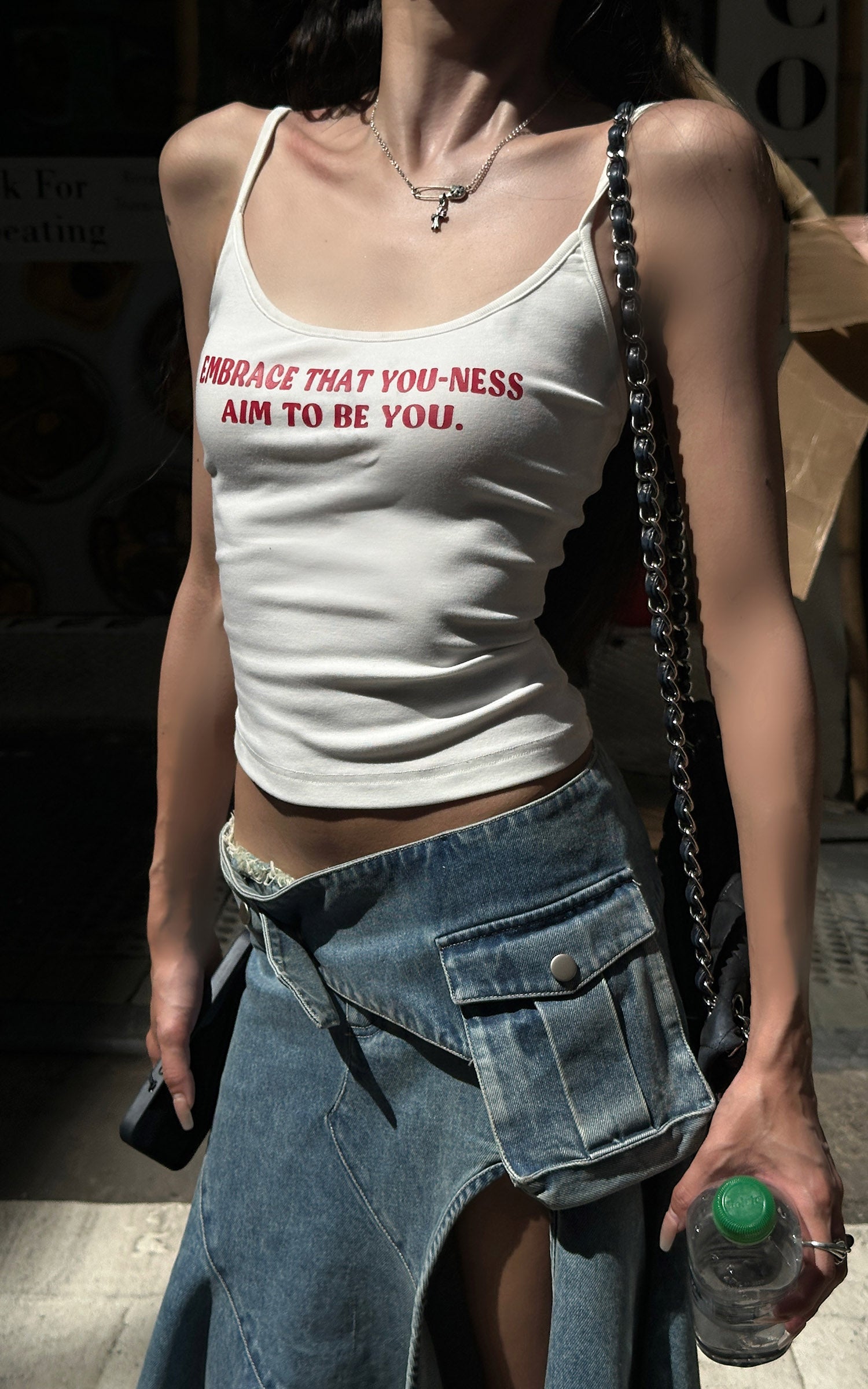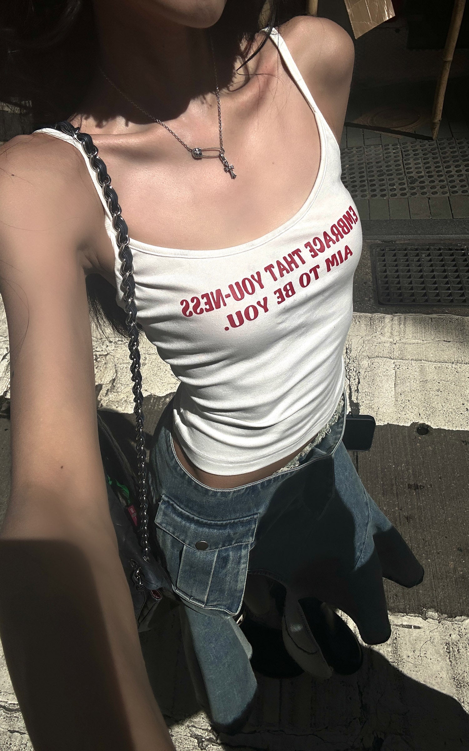 A stripped-down essential reimagined with edge. This slim-fit cami features sleek double shoulder straps and a back bar detail for a touch of structural intrigue. Made from soft stretch cotton with a sculpting feel, it molds to your silhouette and layers effortlessly. A clean base with urban attitude—engineered for self-expression.