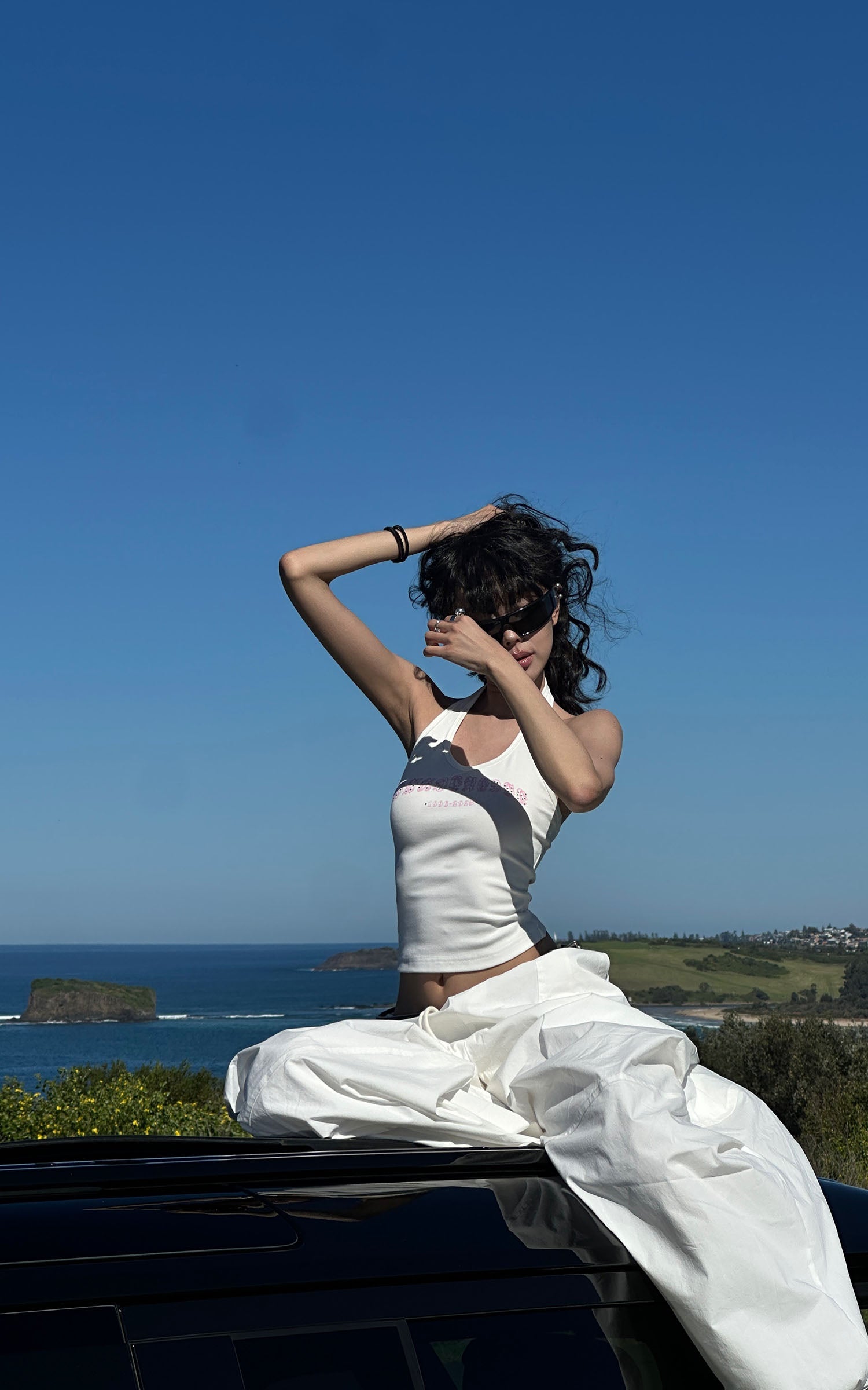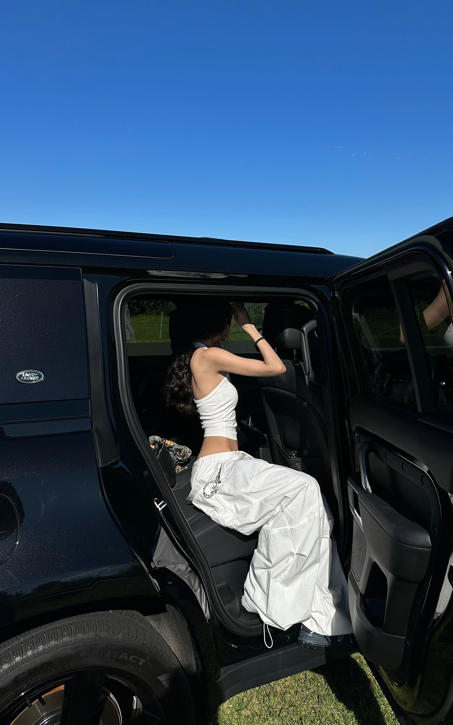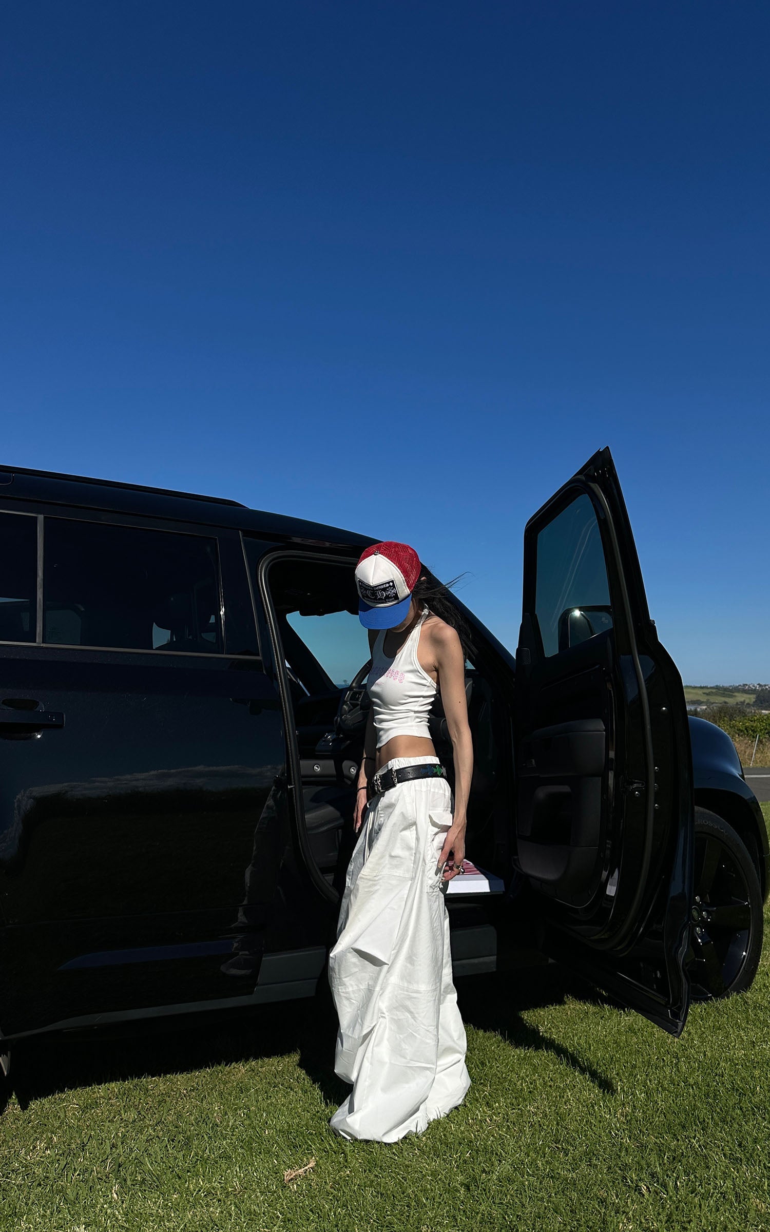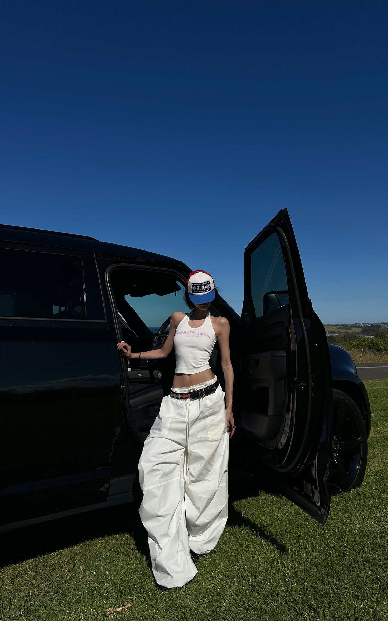 Sculpted for impact, these voluminous trousers redefine structure with exaggerated drape and adjustable drawstrings. Crafted from crisp, lightweight fabric, the design features utility patch pockets, a soft elastic waistband, and toggled hems to personalize the silhouette. Streetwear precision meets engineered ease—built to stand alone or layer loud.