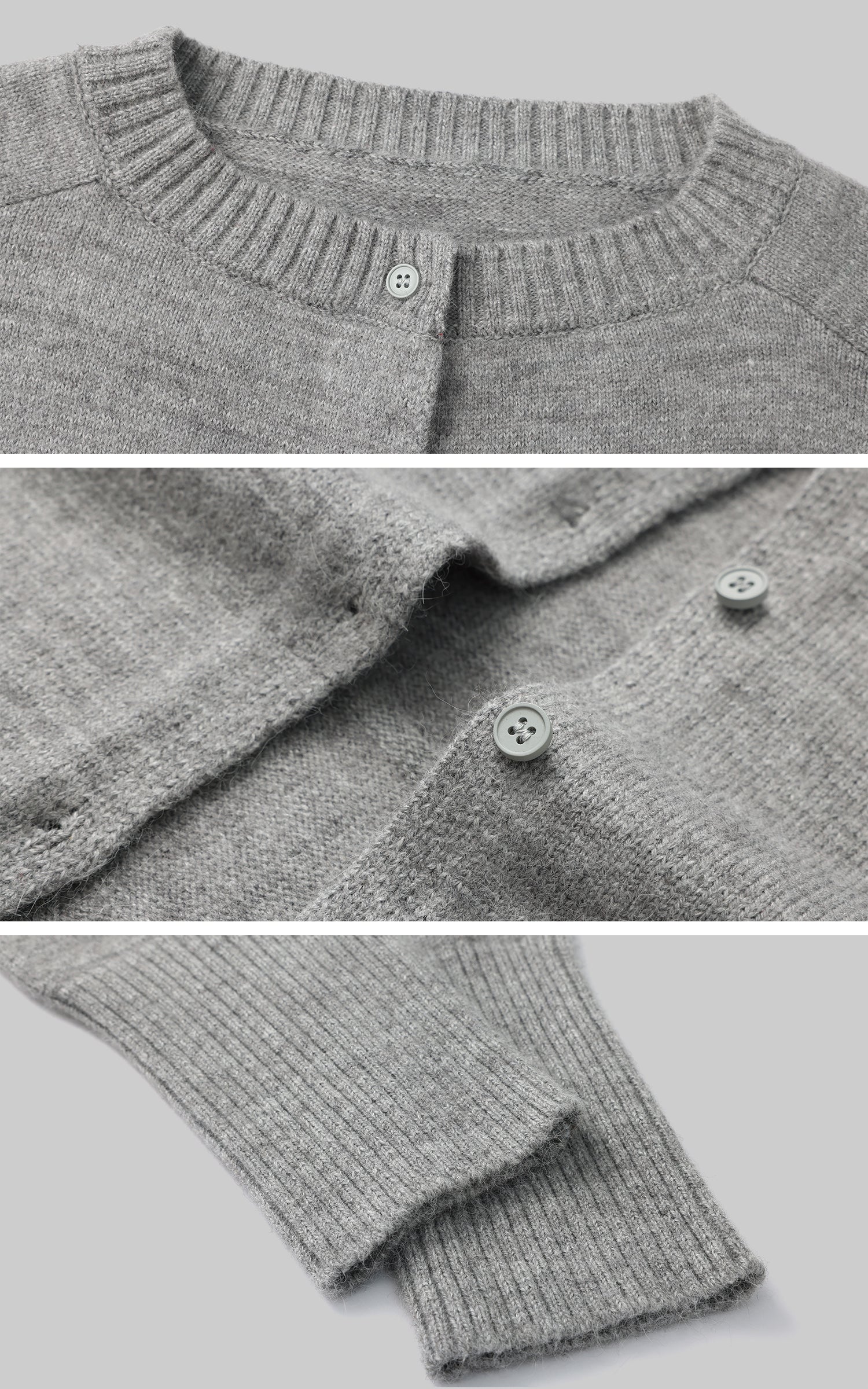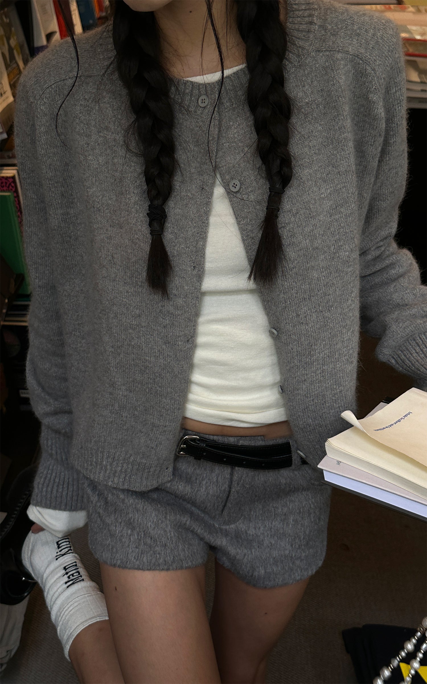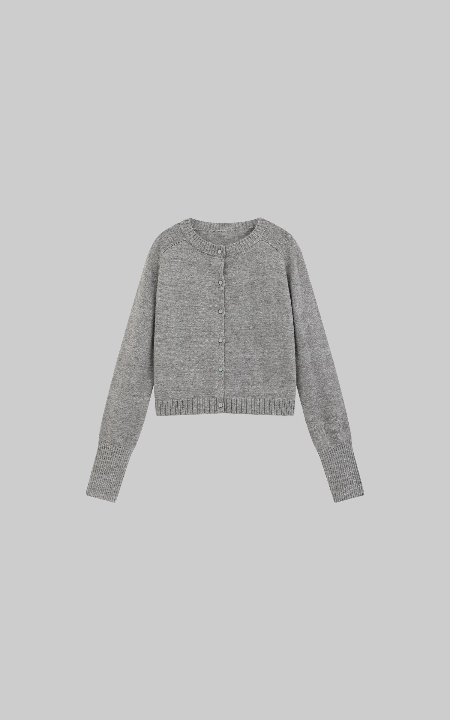 A timeless wardrobe essential crafted for the minimalist aesthetic. This soft-knit cardigan features a classic round neckline, subtle button details, and ribbed cuffs for an understated elegance. Designed for versatility, it pairs effortlessly with casual shorts or layered over tailored pieces, offering comfort without sacrificing style. The cropped silhouette ensures a modern edge, making it a go-to for transitional seasons and beyond.