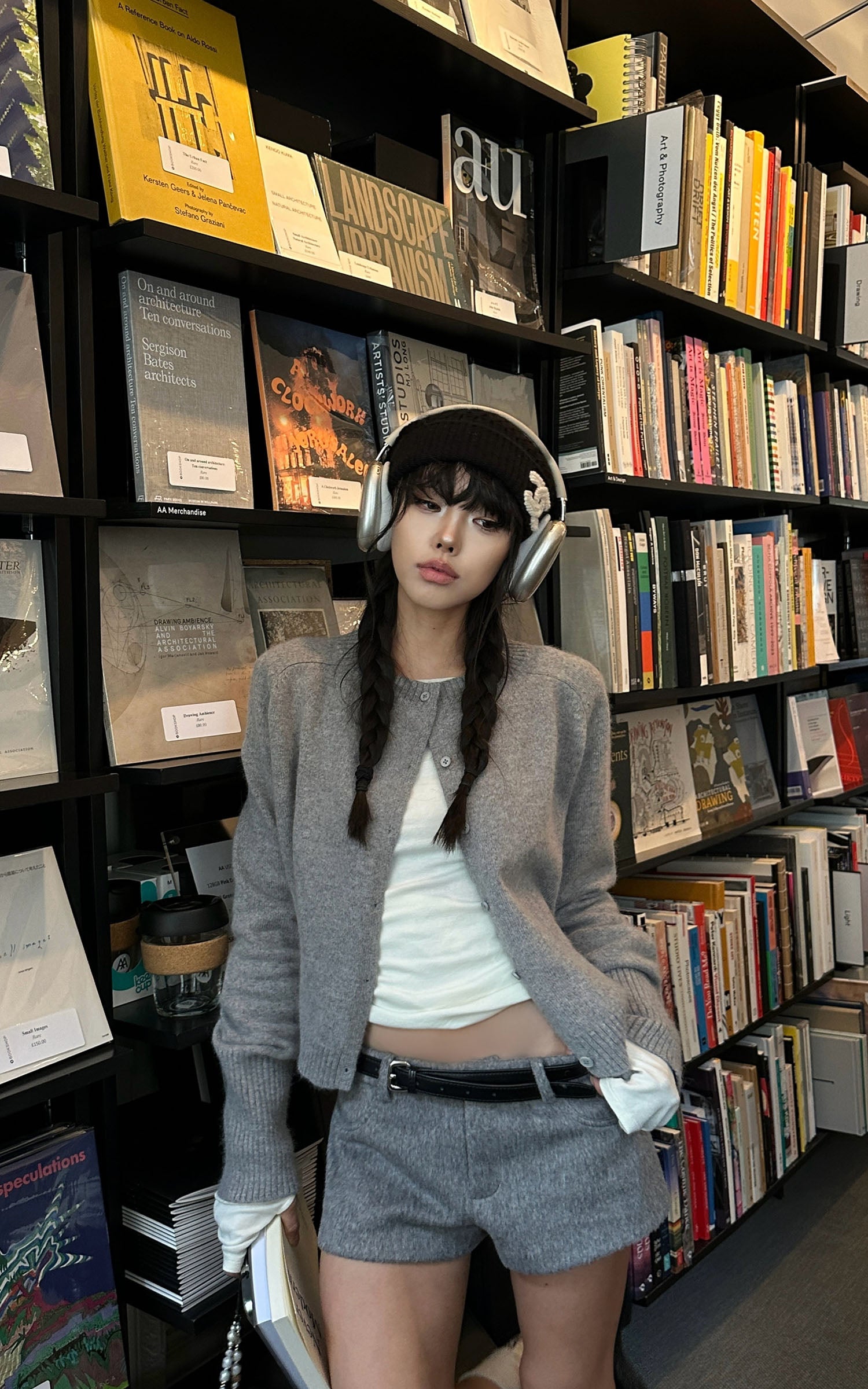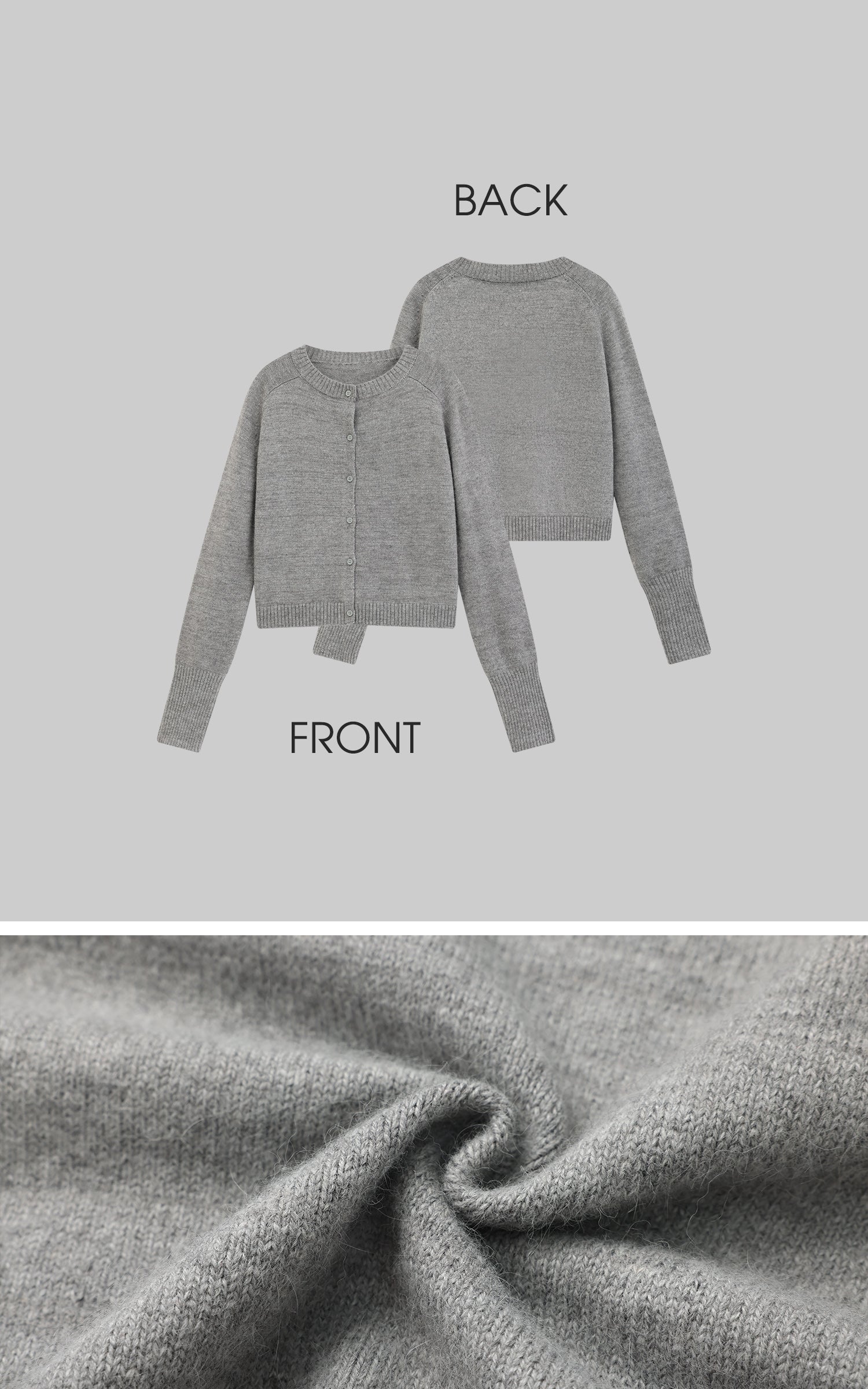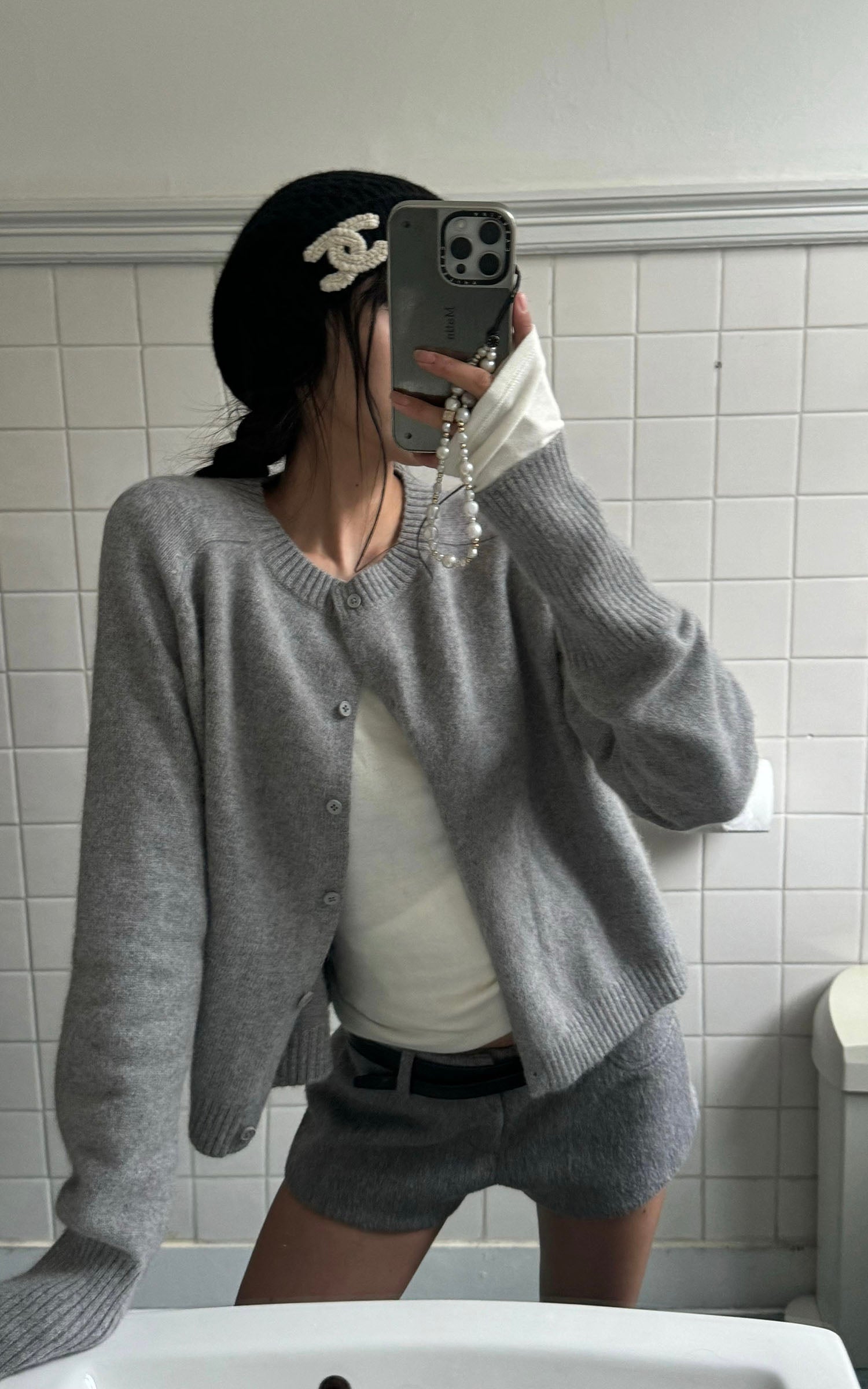 A timeless wardrobe essential crafted for the minimalist aesthetic. This soft-knit cardigan features a classic round neckline, subtle button details, and ribbed cuffs for an understated elegance. Designed for versatility, it pairs effortlessly with casual shorts or layered over tailored pieces, offering comfort without sacrificing style. The cropped silhouette ensures a modern edge, making it a go-to for transitional seasons and beyond.