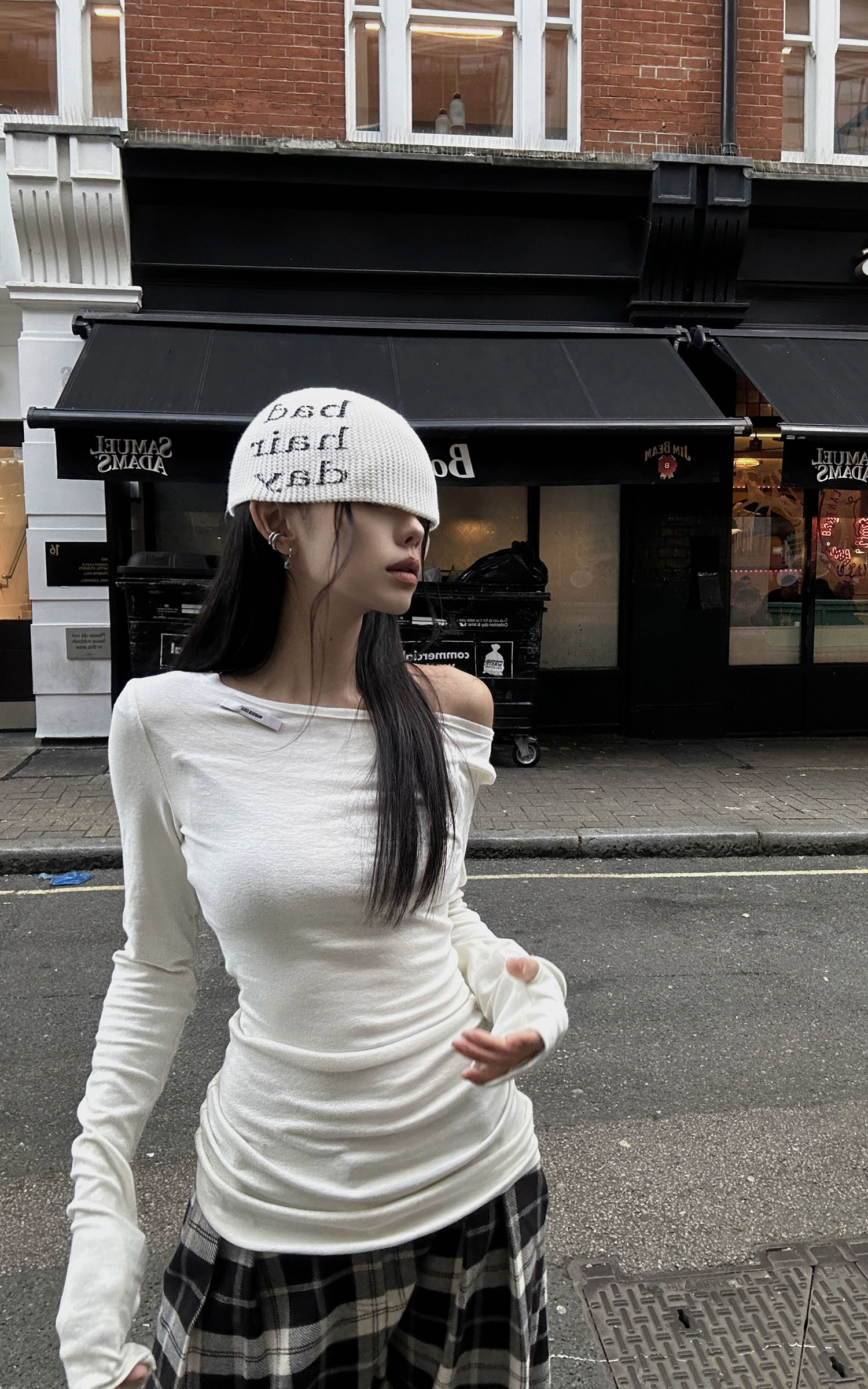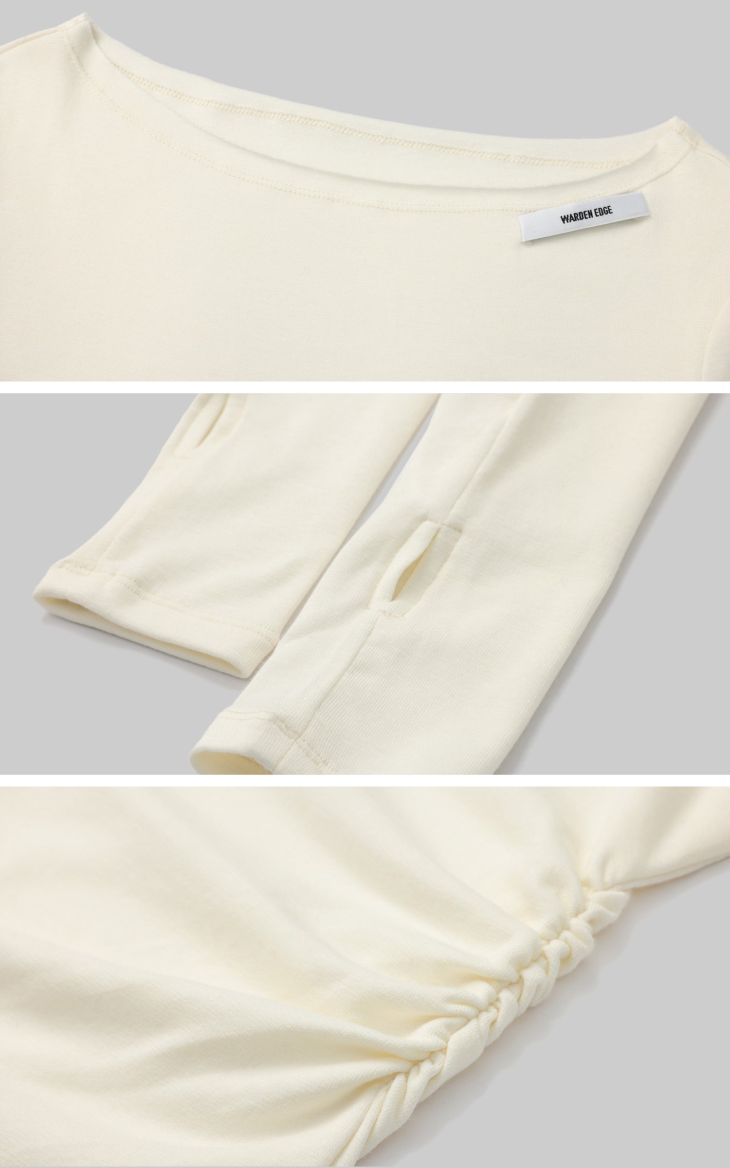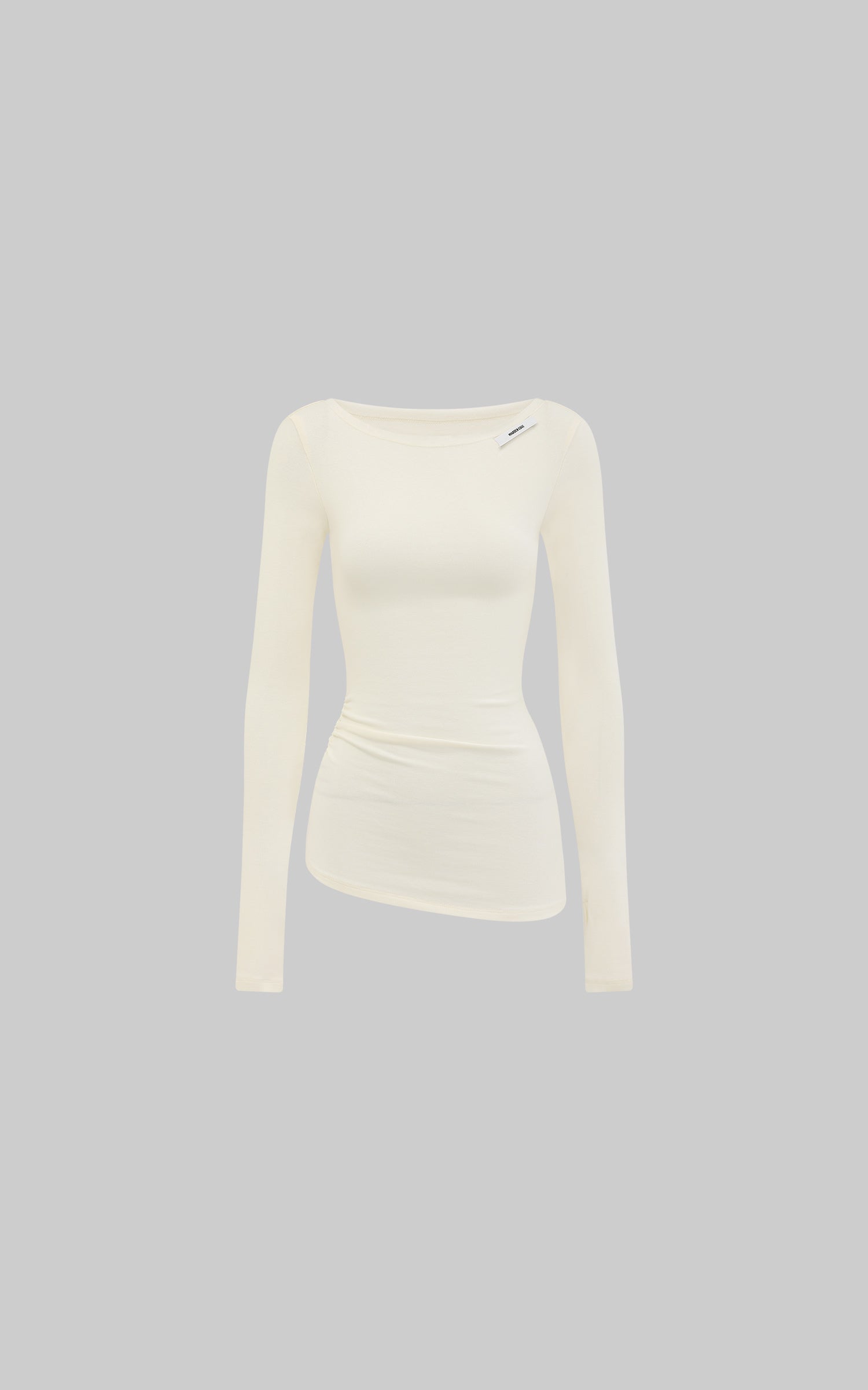 Le minimalisme rencontre la sophistication avec ce t-shirt à manches longues et épaules dénudées. Confectionné dans un mélange de tissus côtelés, il offre une silhouette ajustée qui met en valeur la forme sans compromettre le confort. La découpe unique des épaules apporte une élégance asymétrique et sans effort, tandis que le froncé subtil à la taille flatte la silhouette. Conçu avec des manches à trous pour les pouces, cette pièce allie utilité et audace, parfaite pour être superposée ou portée seule comme une déclaration de style.