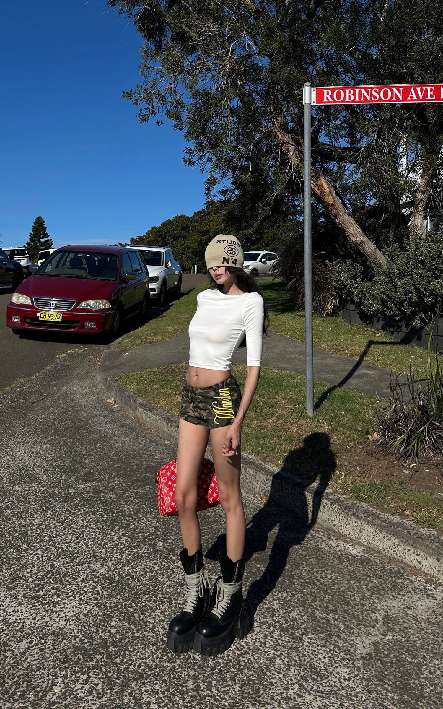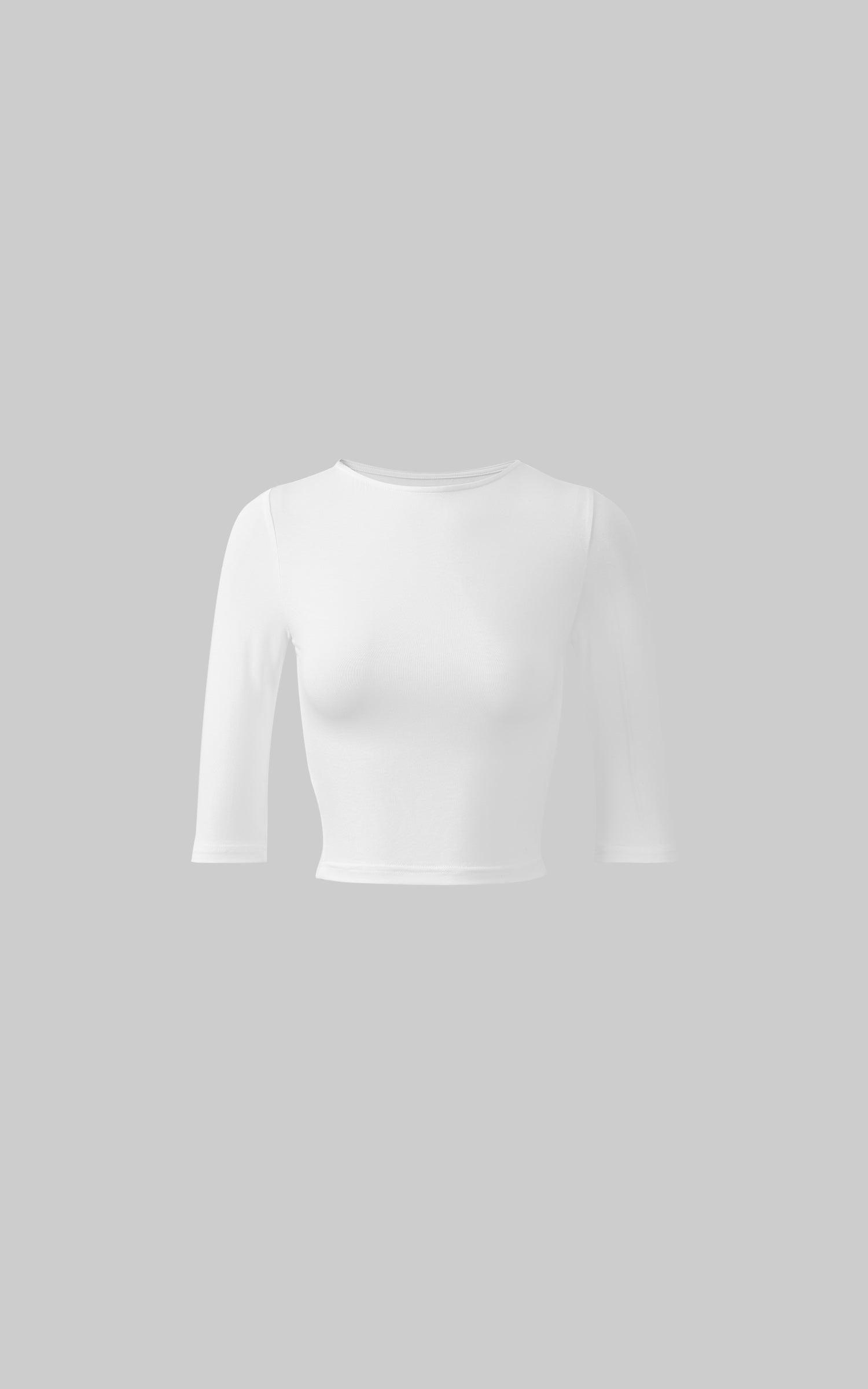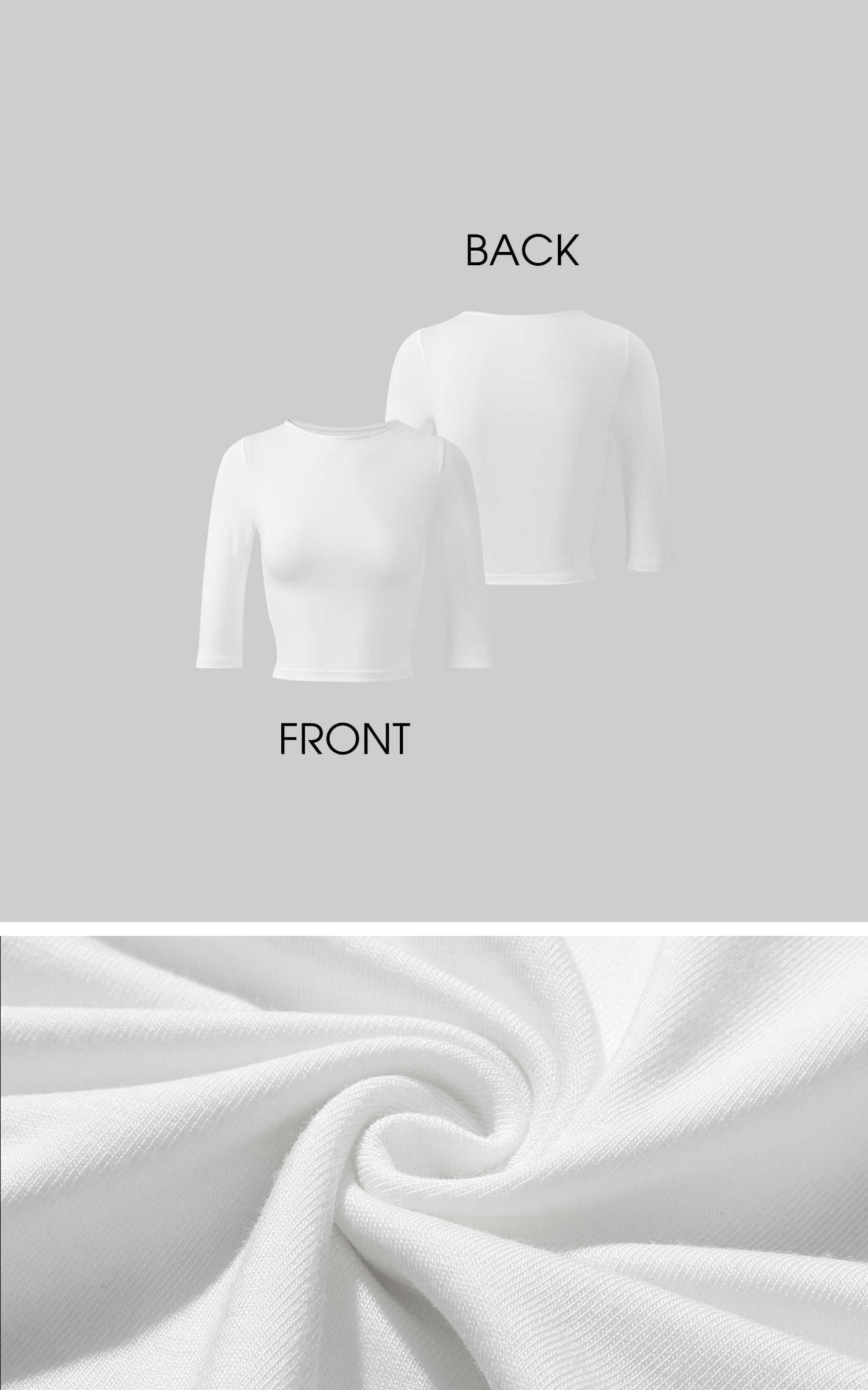 Un basique élégant redéfini avec attitude. Ce t-shirt court à manches 3/4 est confectionné dans un tricot extensible doux qui épouse les formes de votre corps. Minimaliste au premier regard, il associe des lignes épurées à une confiance discrète—qu'il soit superposé ou porté seul. Conçu pour les journées de détente et les escapades nocturnes.