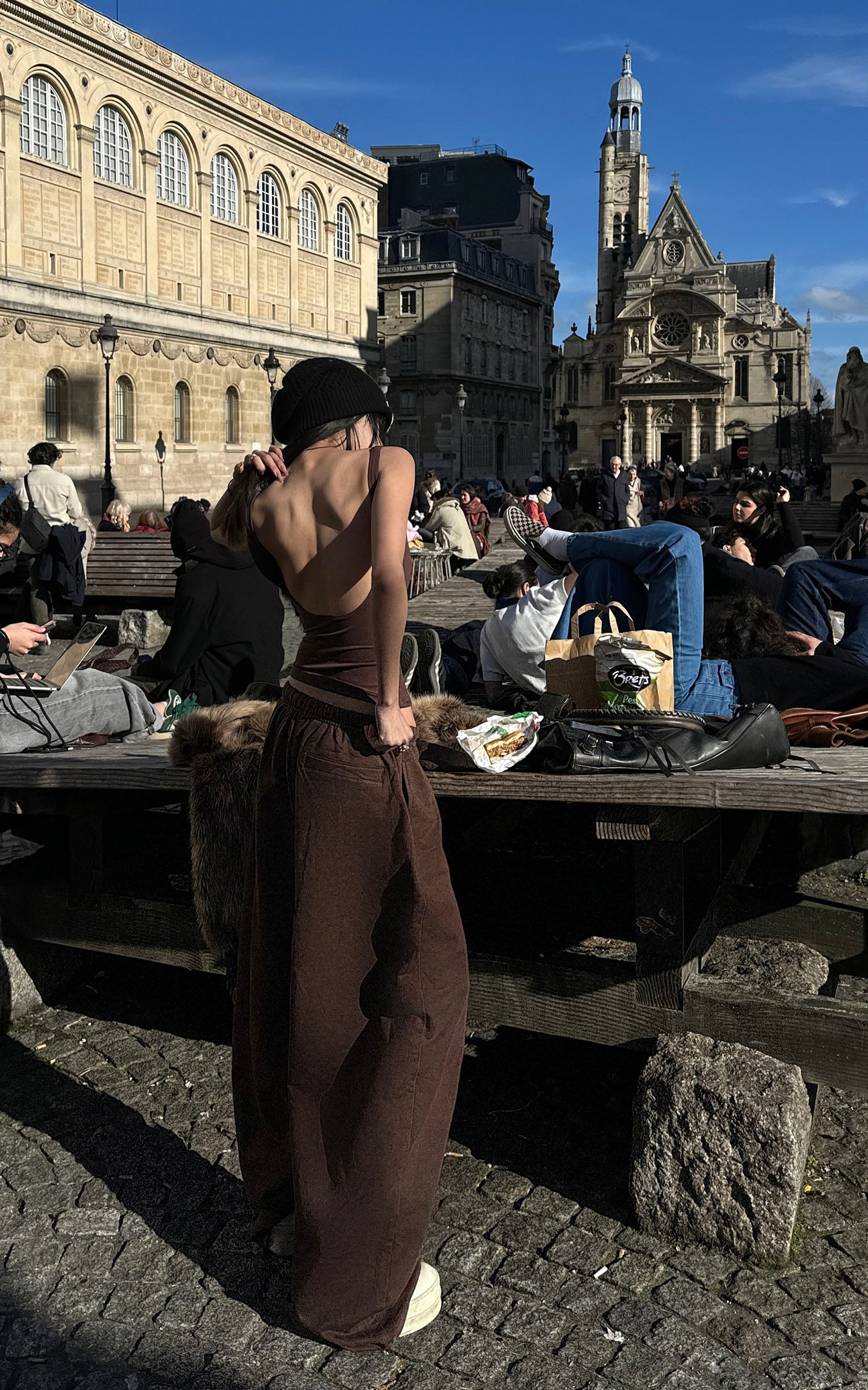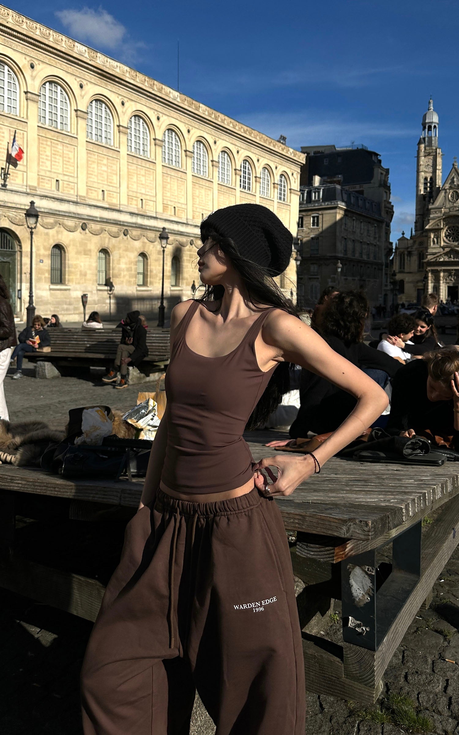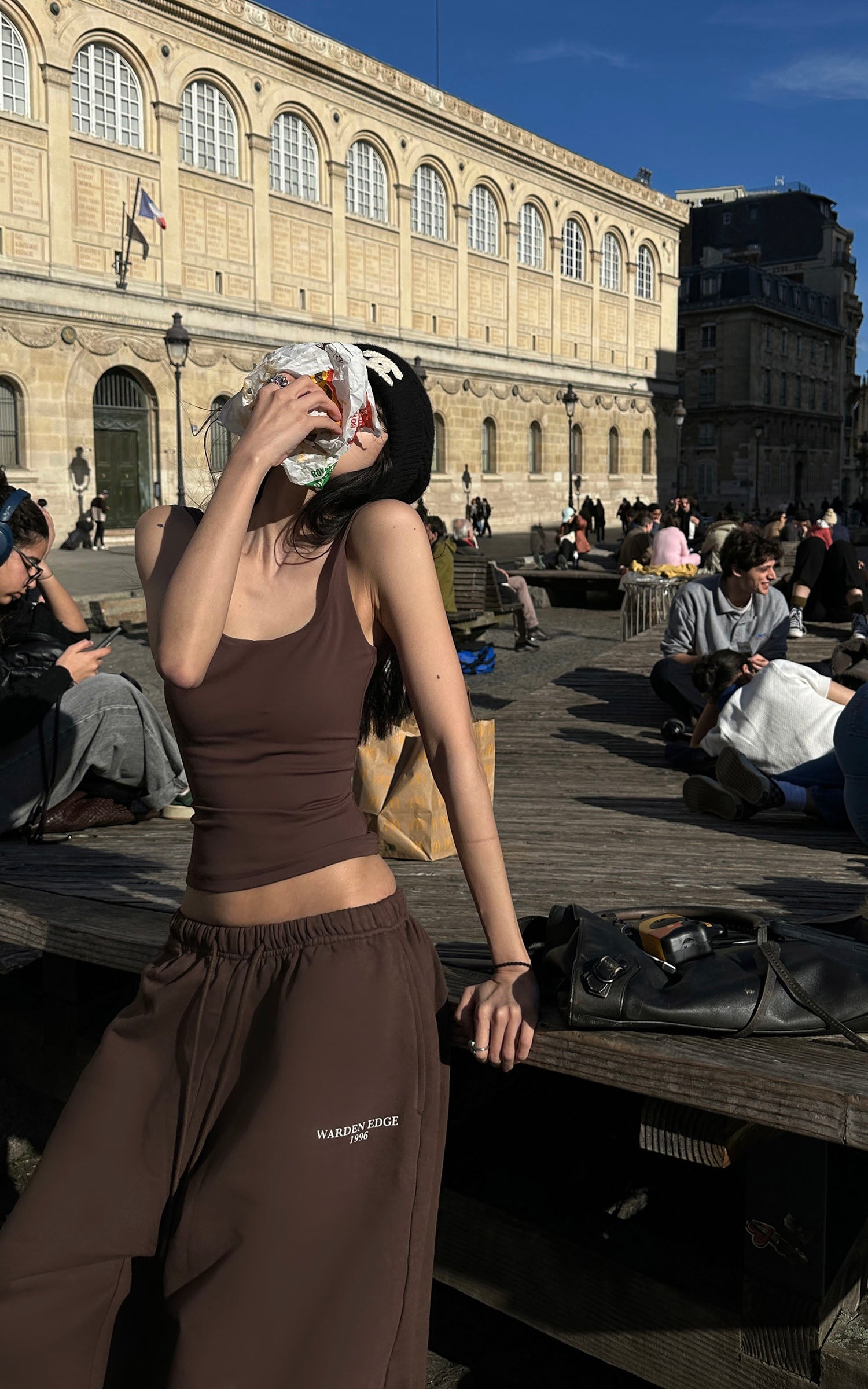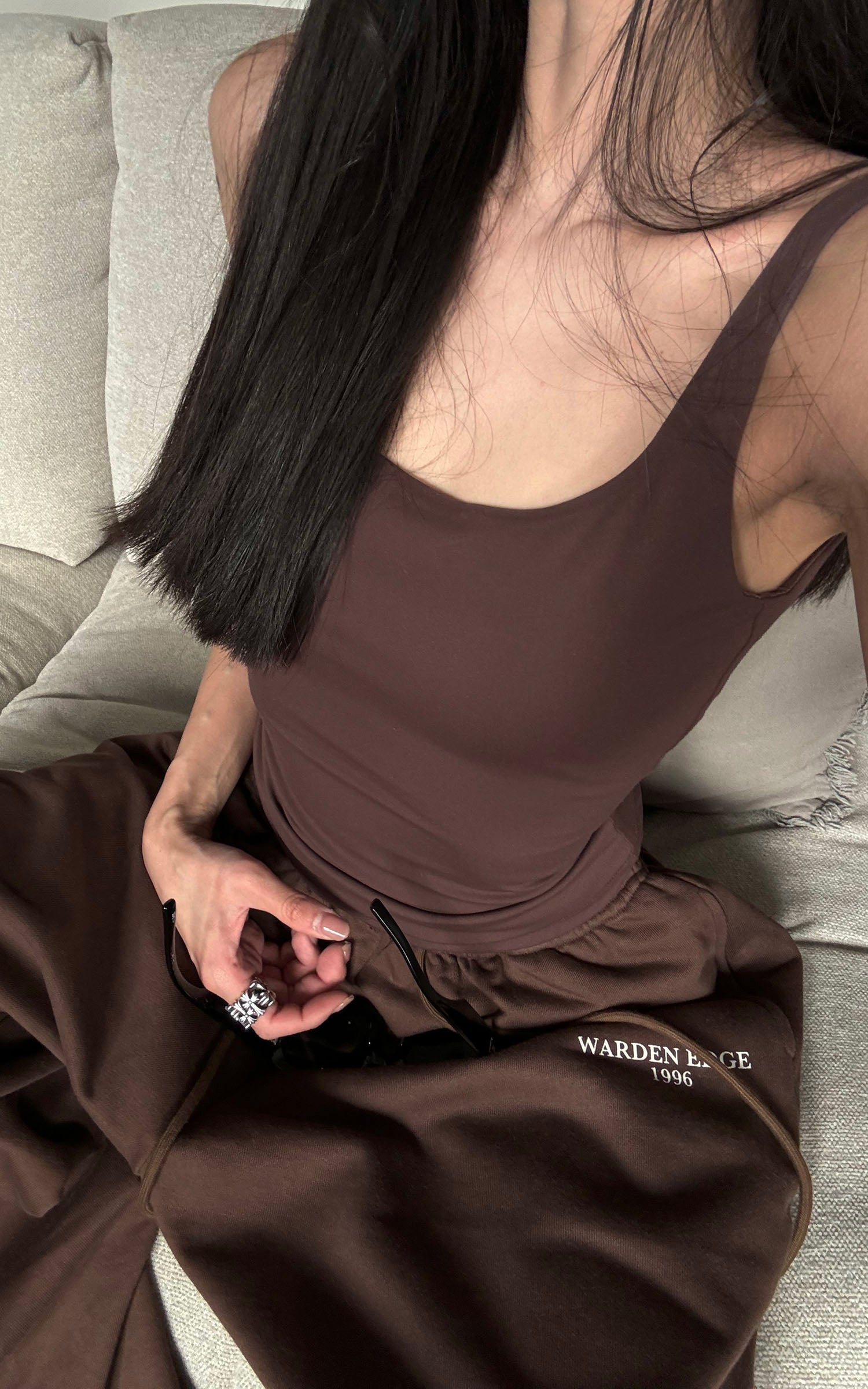 Minimal yet bold, simple yet rich in detail. This square-neck sleeveless tank is crafted from high-stretch ribbed knit fabric, offering a body-hugging fit with exceptional comfort. The deep U-shaped back design elongates the neckline and shoulders, enhancing the natural curves with effortless elegance. The muted coffee brown hue adds depth and sophistication, making it a versatile staple for any style—whether paired with oversized cargo pants for a streetwear edge or styled with a sleek skirt for a refined minimalist look. More than just a basic, this is a statement piece.