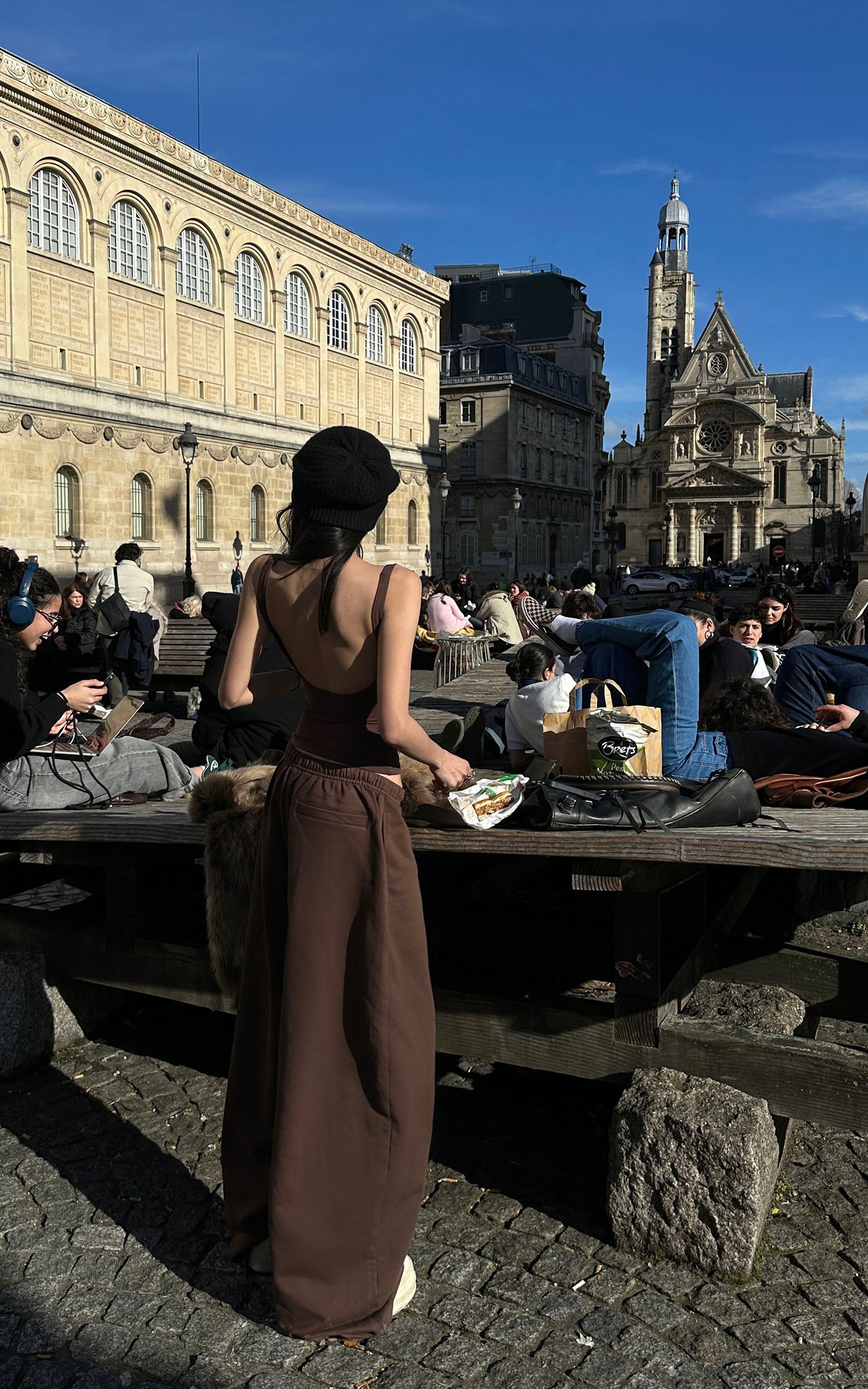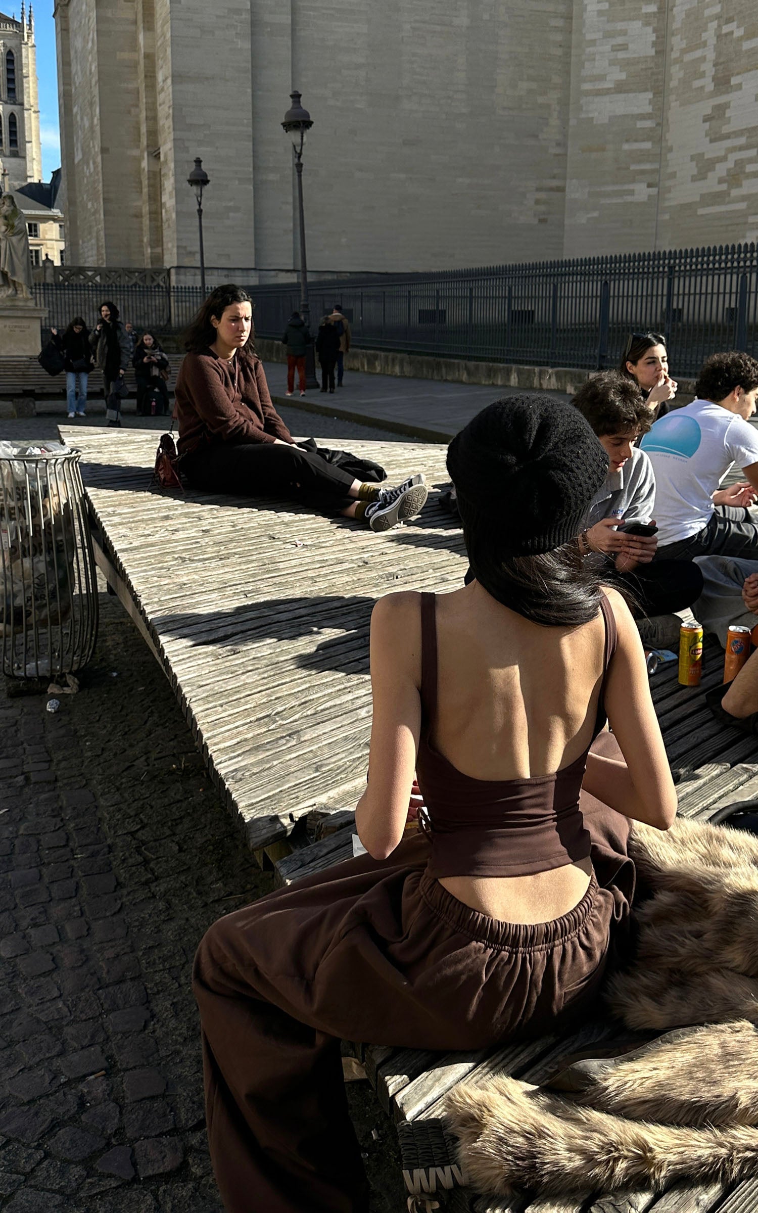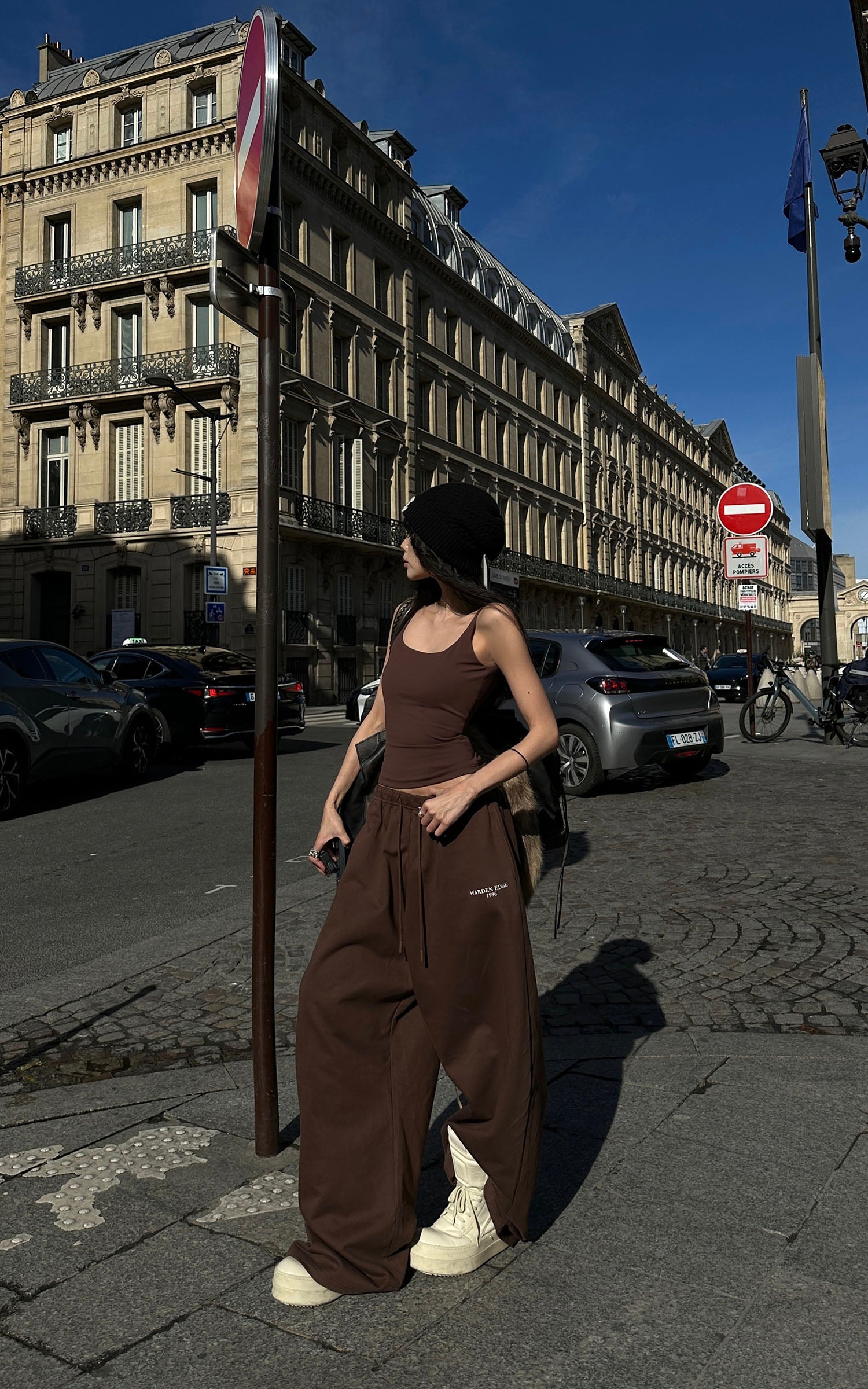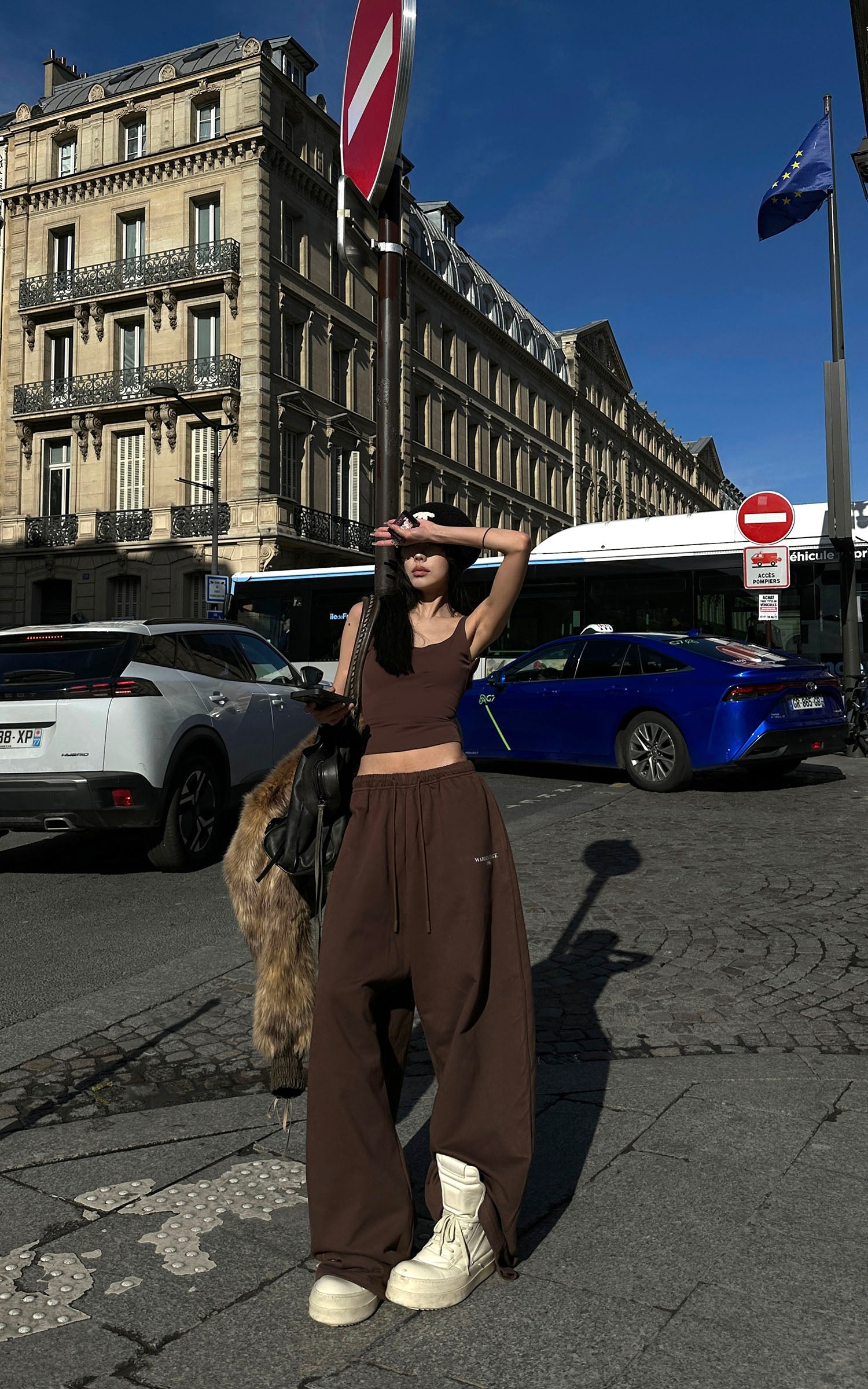 Minimal yet bold, simple yet rich in detail. This square-neck sleeveless tank is crafted from high-stretch ribbed knit fabric, offering a body-hugging fit with exceptional comfort. The deep U-shaped back design elongates the neckline and shoulders, enhancing the natural curves with effortless elegance. The muted coffee brown hue adds depth and sophistication, making it a versatile staple for any style—whether paired with oversized cargo pants for a streetwear edge or styled with a sleek skirt for a refined minimalist look. More than just a basic, this is a statement piece.