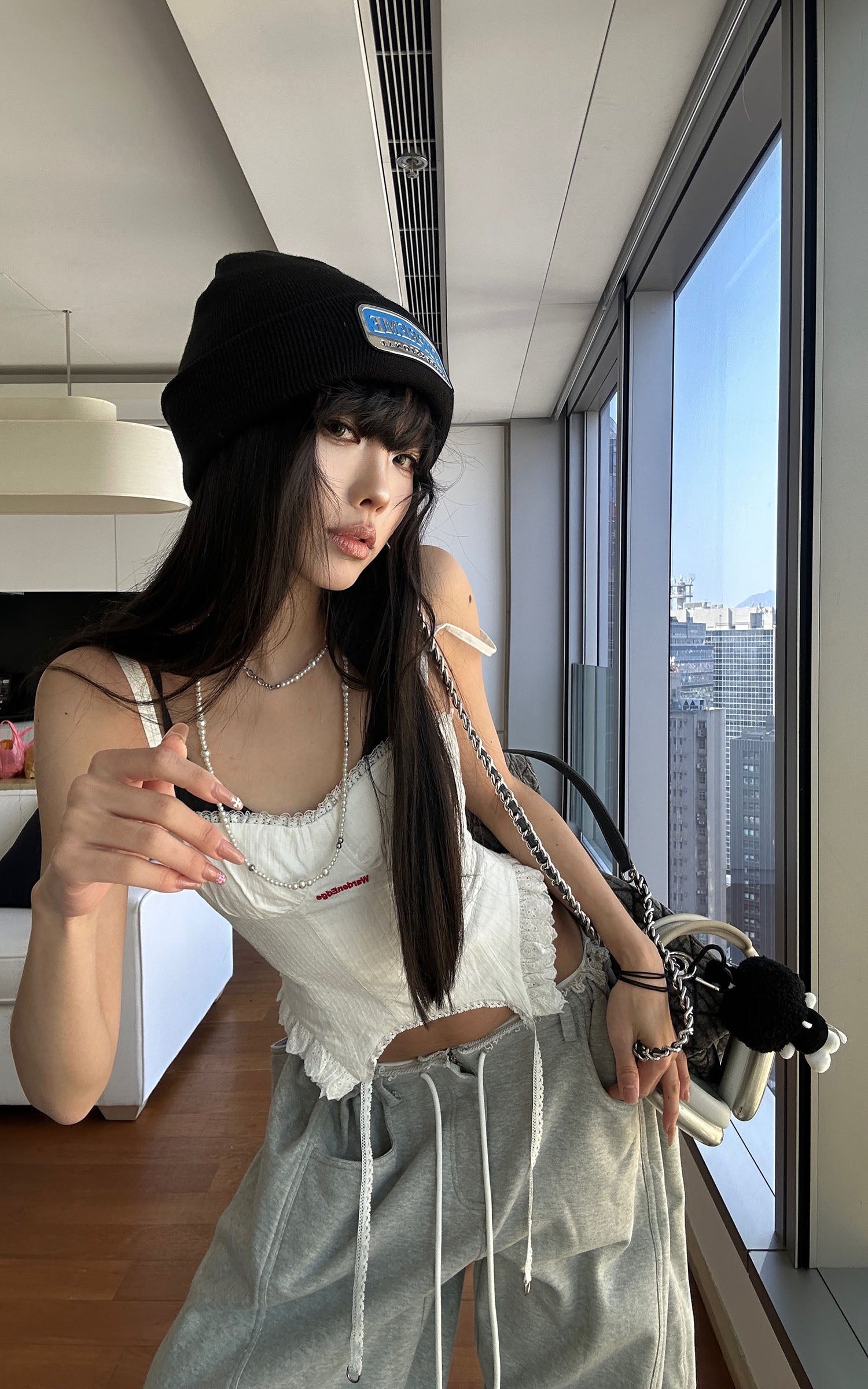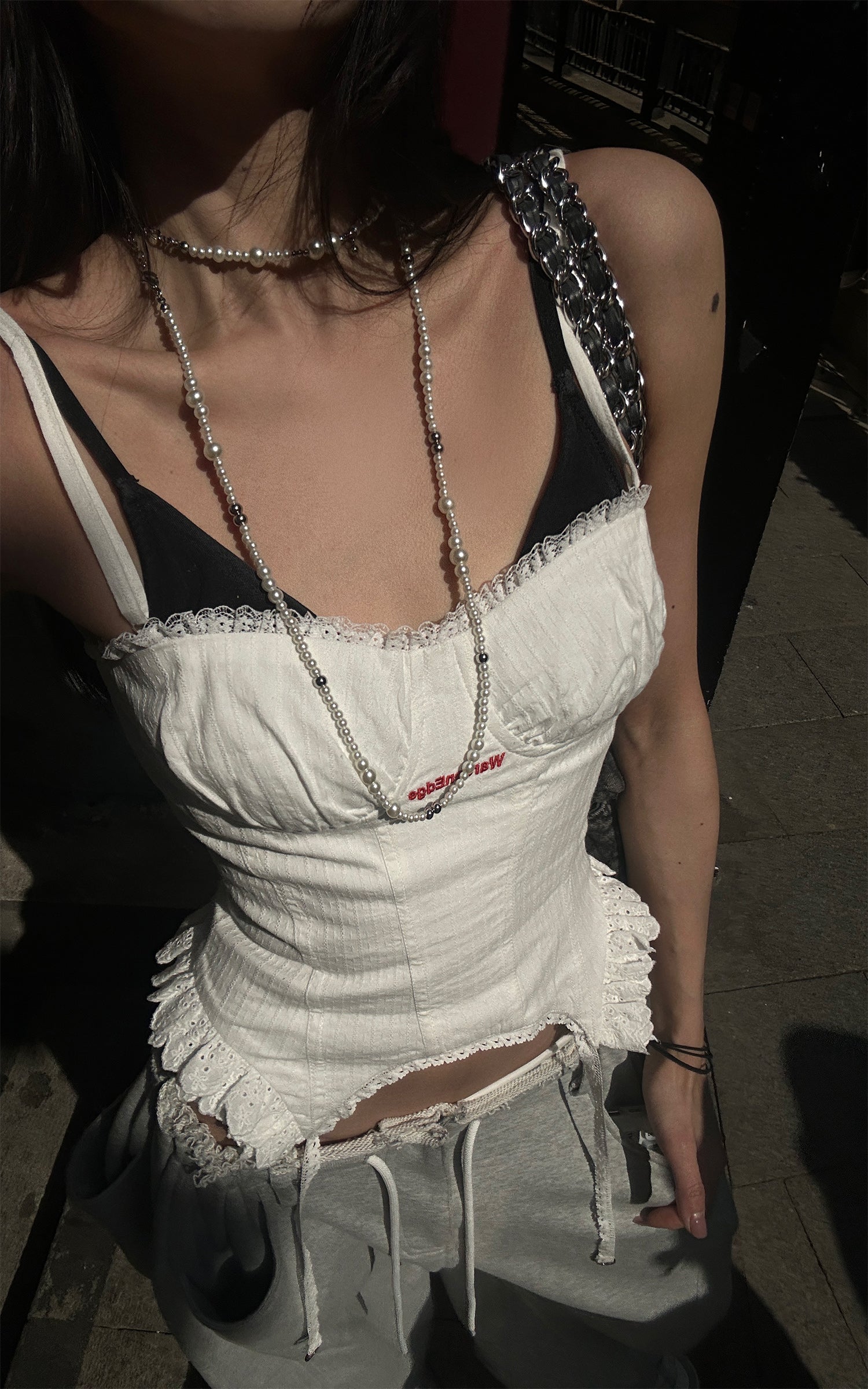 Ce débardeur présente un design épuré qui met en valeur la silhouette féminine grâce à son effet unique de cintrage à la taille, offrant un équilibre entre élégance et sensualité. Des bordures en dentelle délicate et un tissu texturé créent un effet visuel captivant, mêlant décontraction et raffinement. Parfait pour être associé à n'importe quel bas, qu'il s'agisse de pantalons larges ou de jupes, il apporte une ambiance de style urbain inégalée.