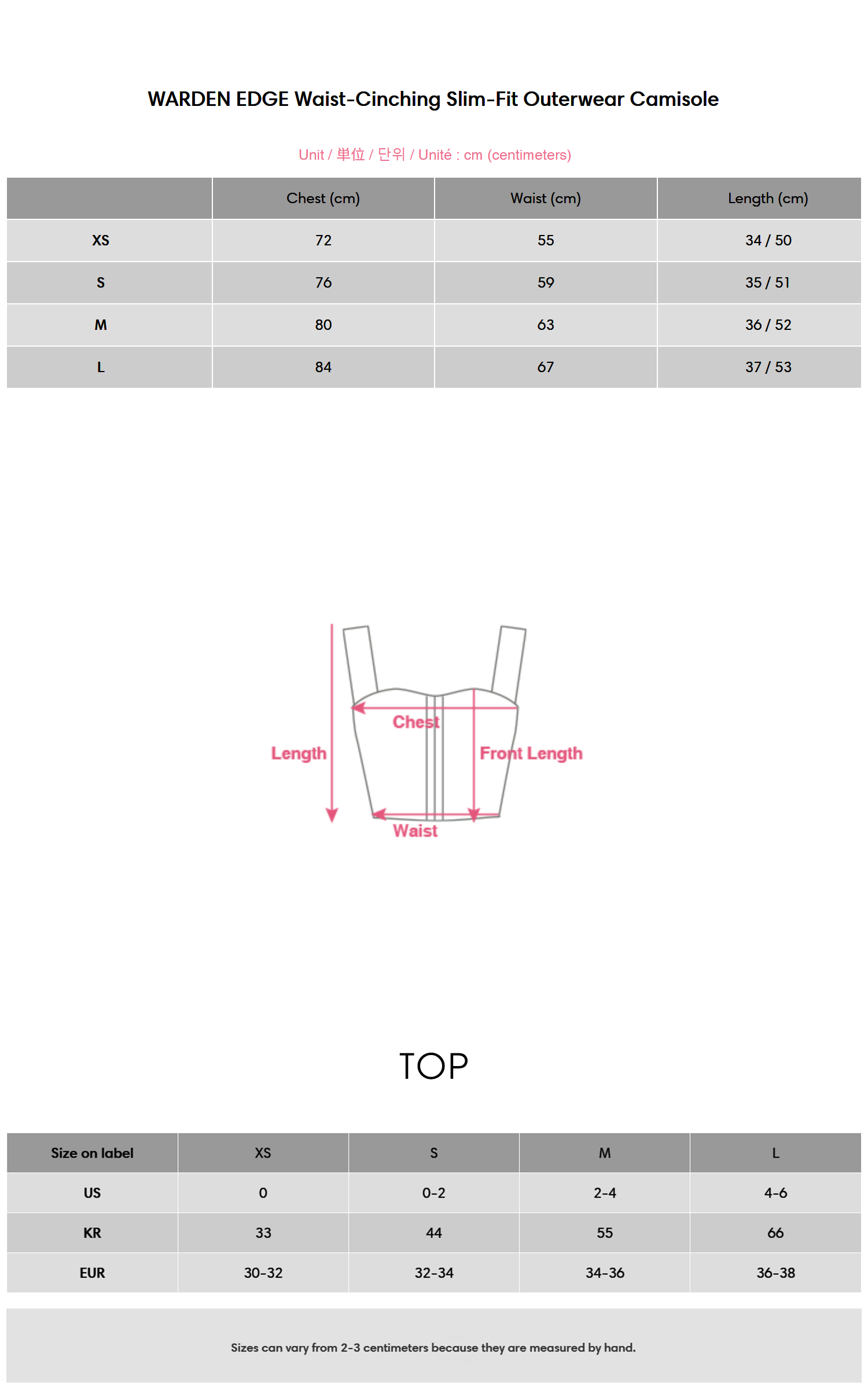 Ci-dessous les tailles que le mannequin porte lors de la séance photo :