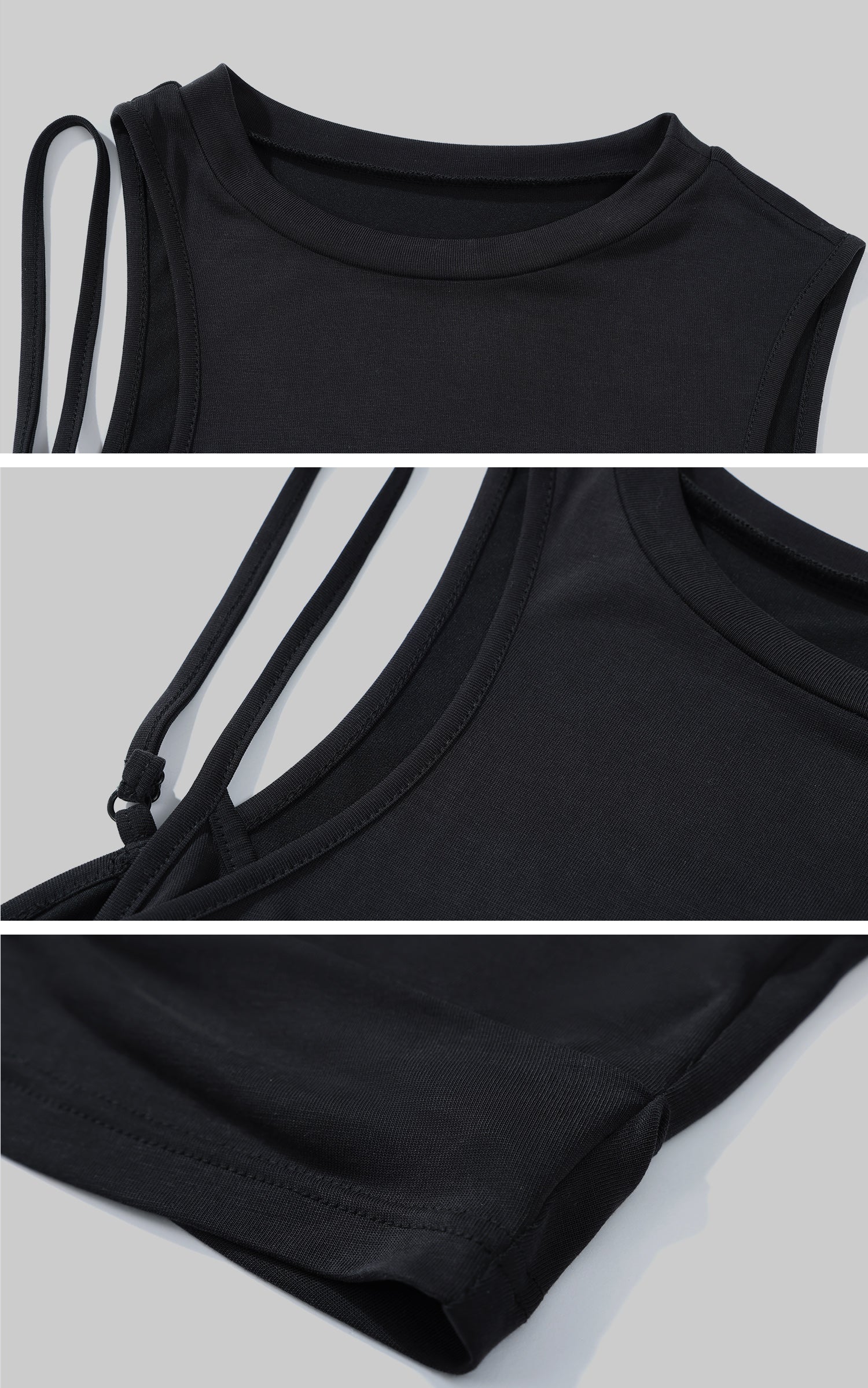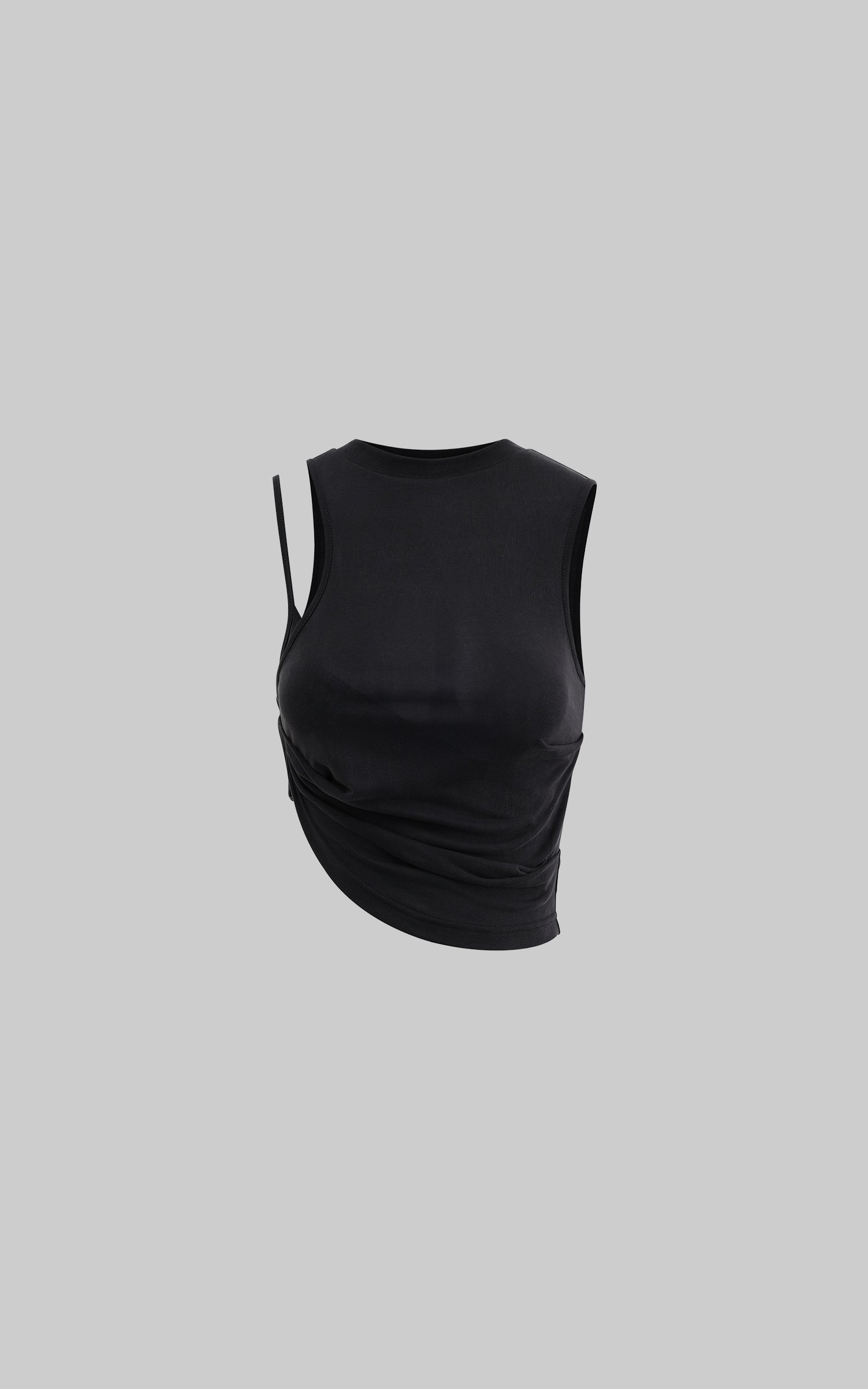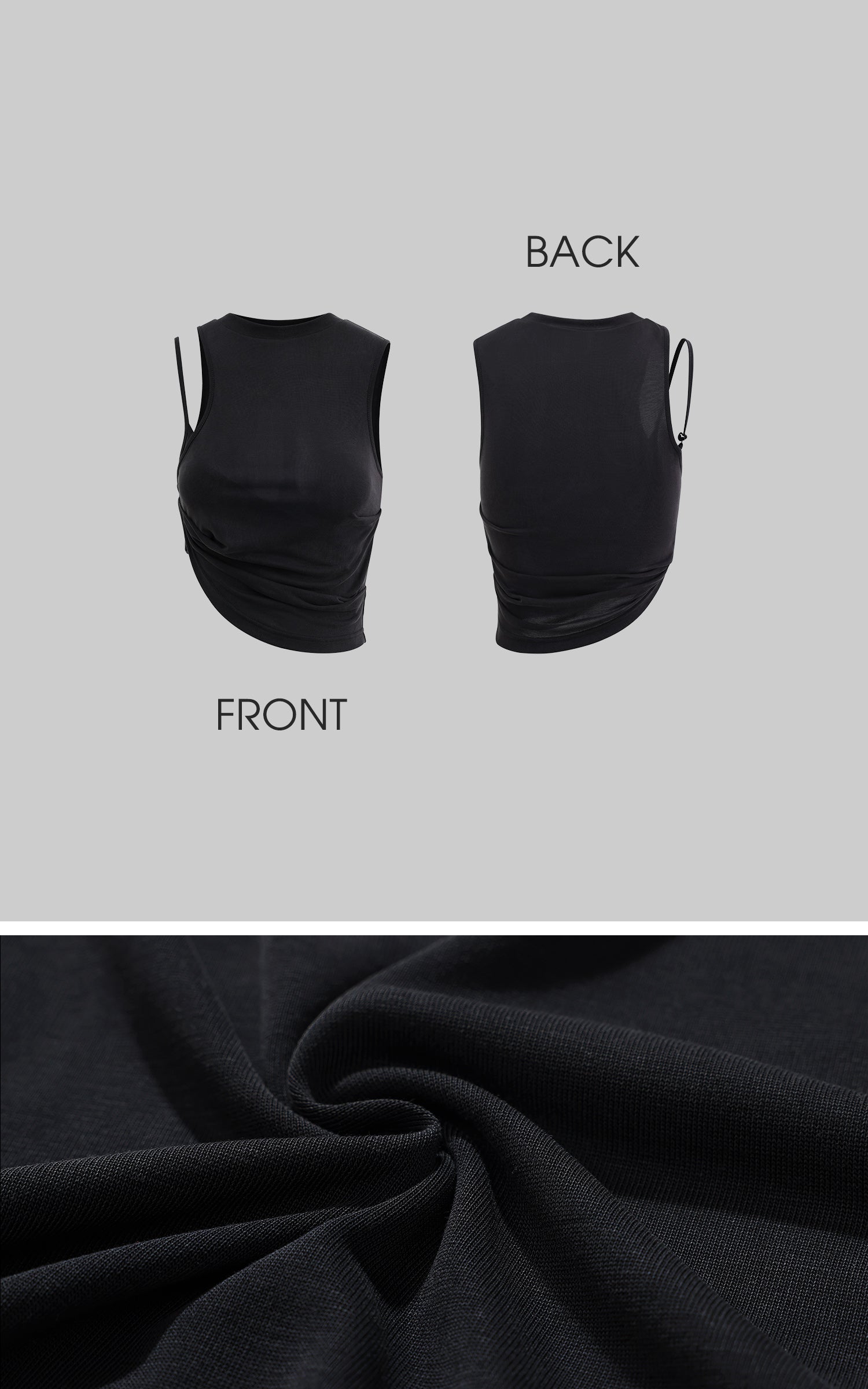 Ribelle senza sforzo, perfettamente raffinato. Questo top corto presenta un design a spallina asimmetrica, rompendo la silhouette convenzionale con un tocco audace e avanguardistico. Una vestibilità sottile che stringe la vita esalta la figura, mentre il tessuto morbido ed elastico assicura comfort e supporto per tutto il giorno. Il dettaglio della singola spallina regolabile aggiunge profondità, elevando la sua estetica urban-chic. Che sia indossato sotto una giacca o da solo per un look corto e audace, questo capo è un'affermazione di individualità moderna.
