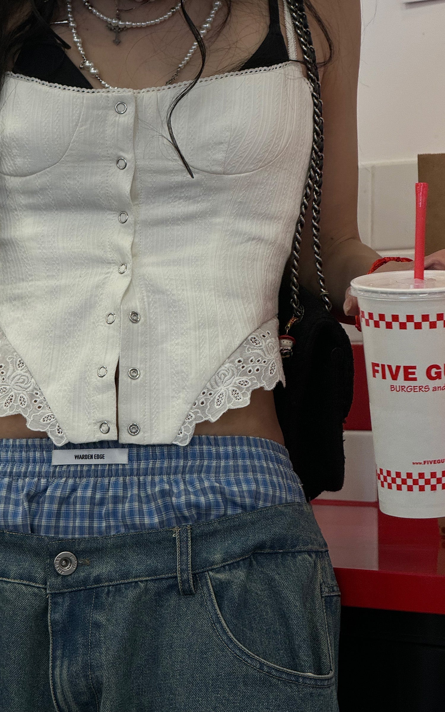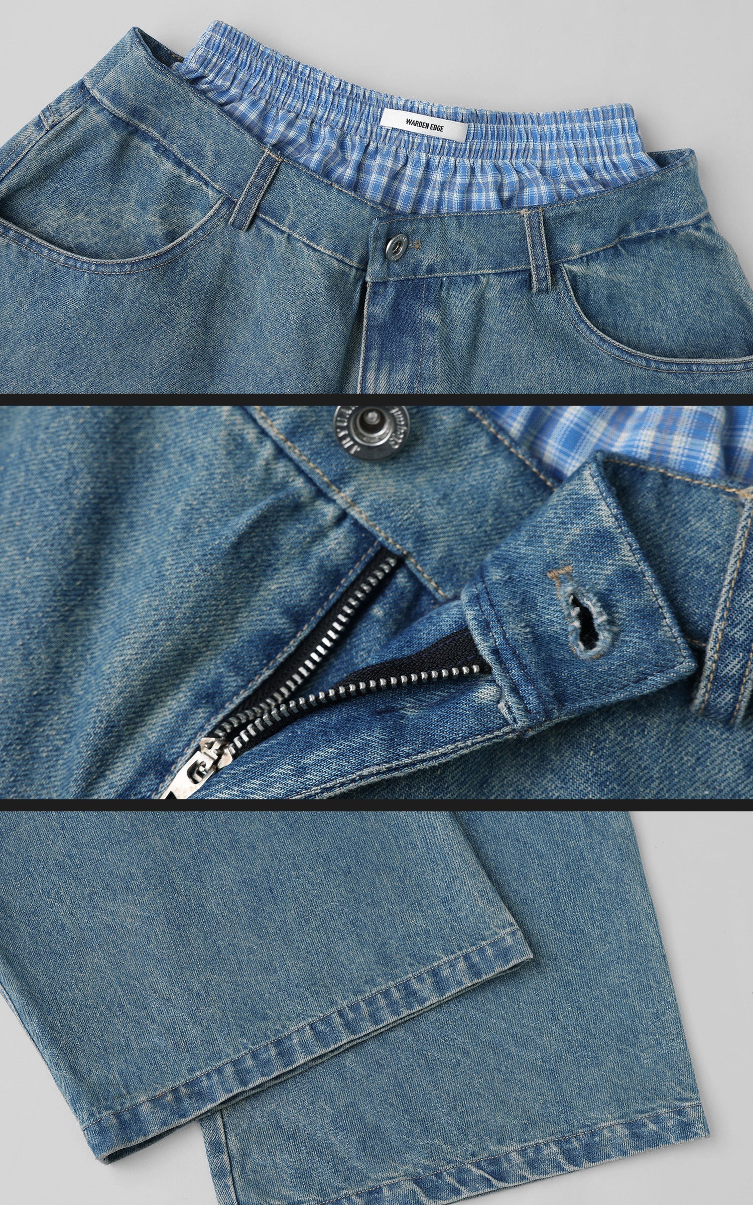 <tc>WARDEN EDGE</tc> Jeans oversize con doppia cintura a quadri