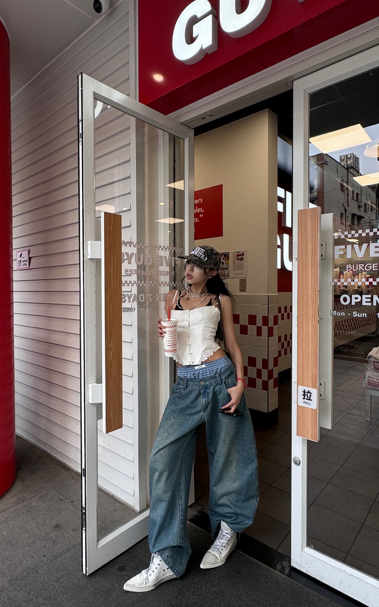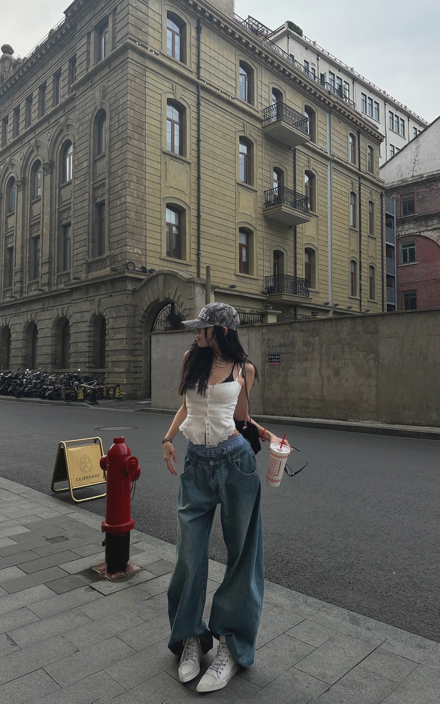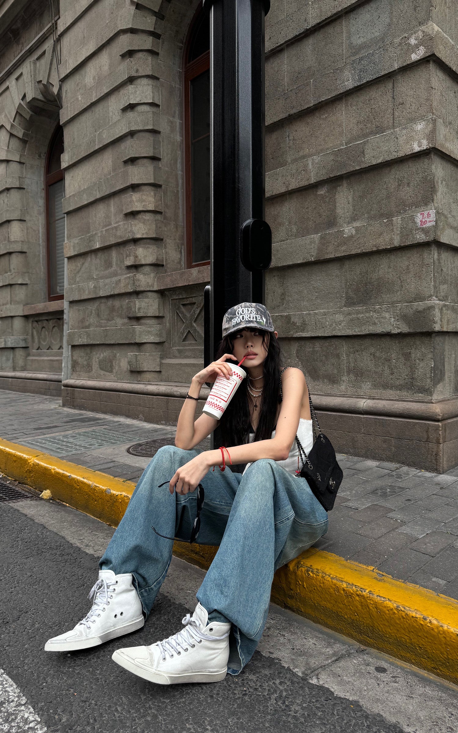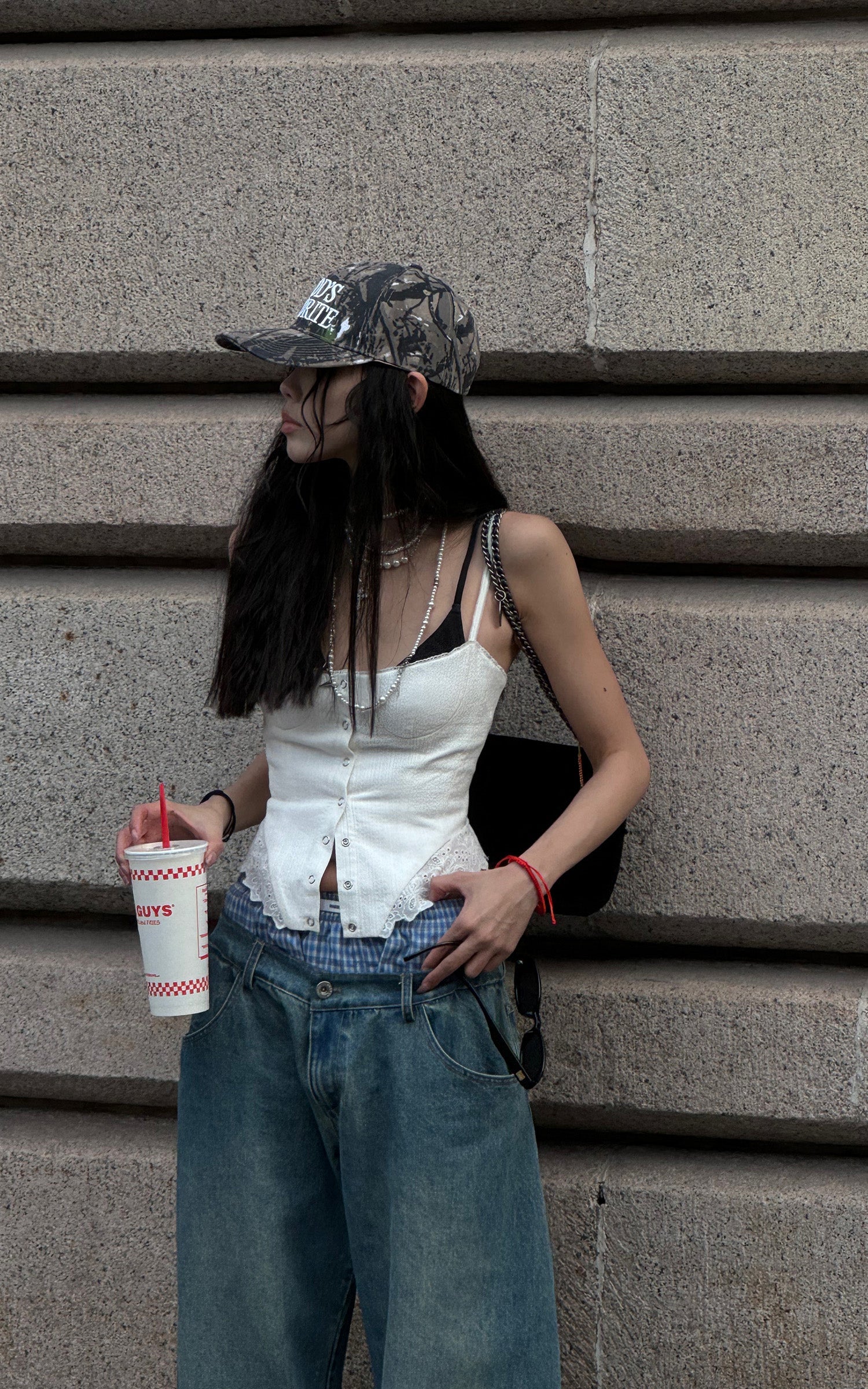 Questi pantaloni in denim oversize combinano lo stile rilassato dello streetwear con dettagli intricati. Caratterizzati da un design unico con doppia cintura e accenti a quadri, questi pantaloni offrono un'innovativa rivisitazione del classico denim. La silhouette a gamba larga aggiunge un flusso e un movimento senza sforzo, mentre il taglio lungo fino al pavimento assicura un look audace e d'impatto. Perfetti da abbinare sia con top aderenti che oversize, questi pantaloni sono un'aggiunta versatile a qualsiasi guardaroba contemporaneo.