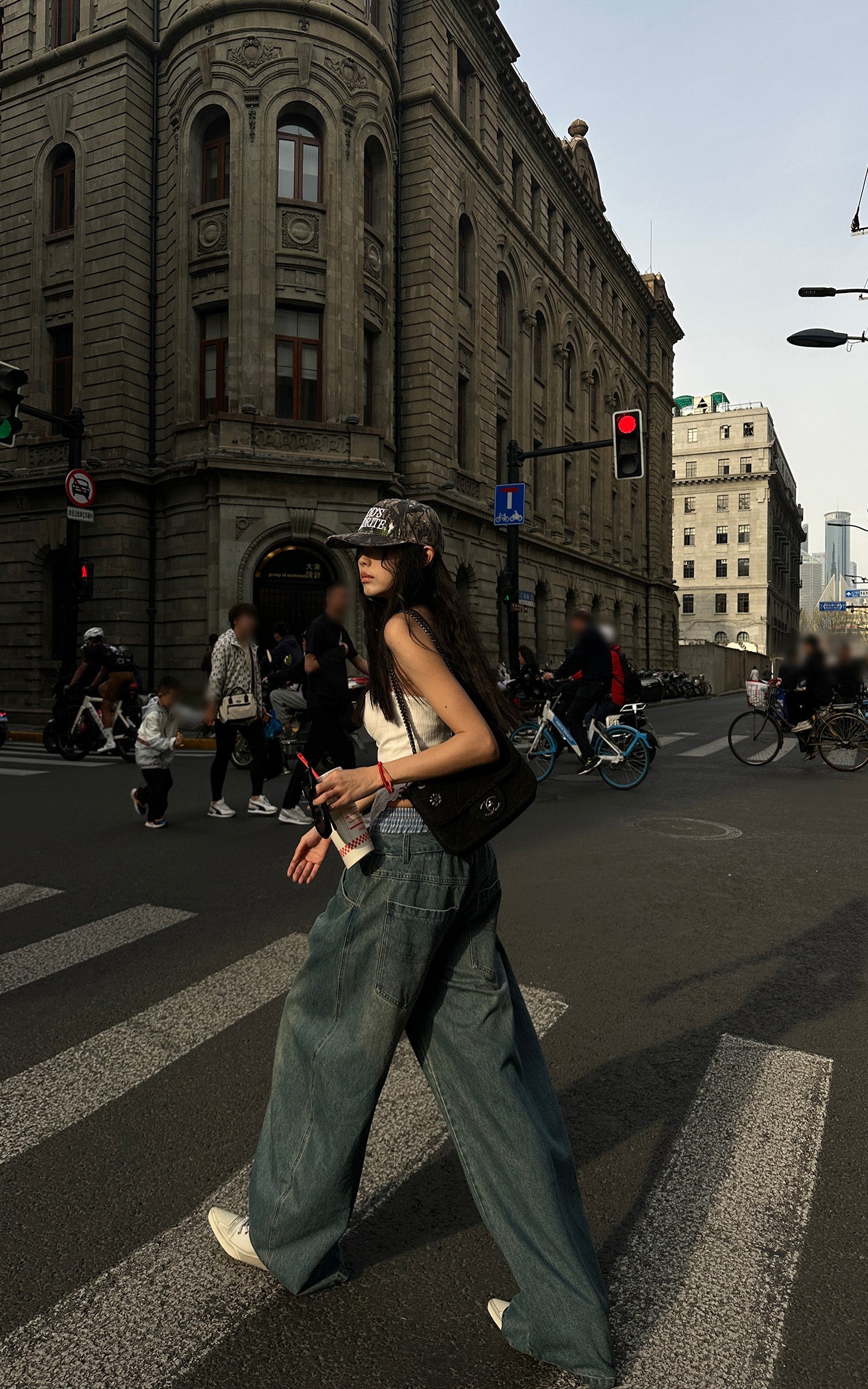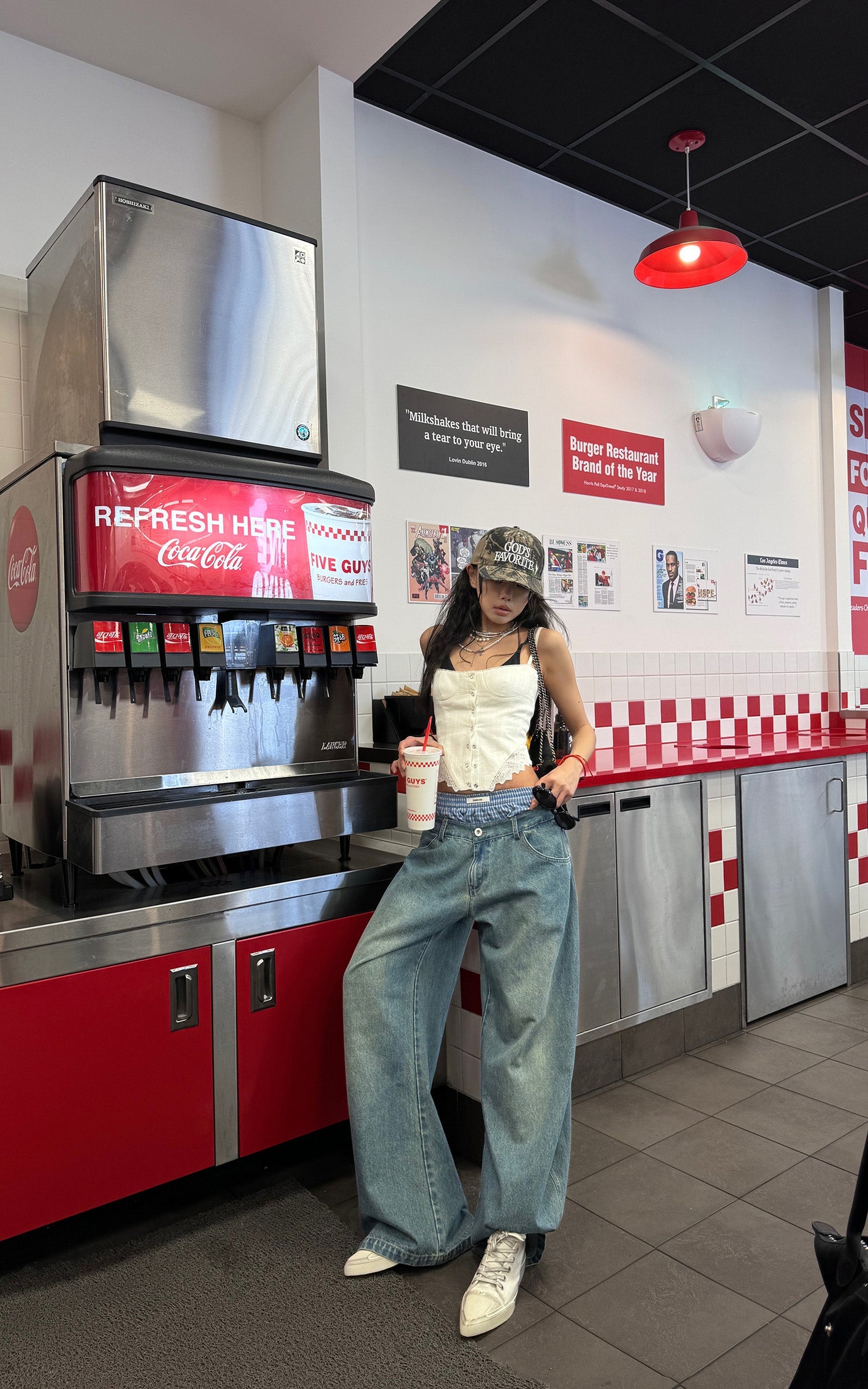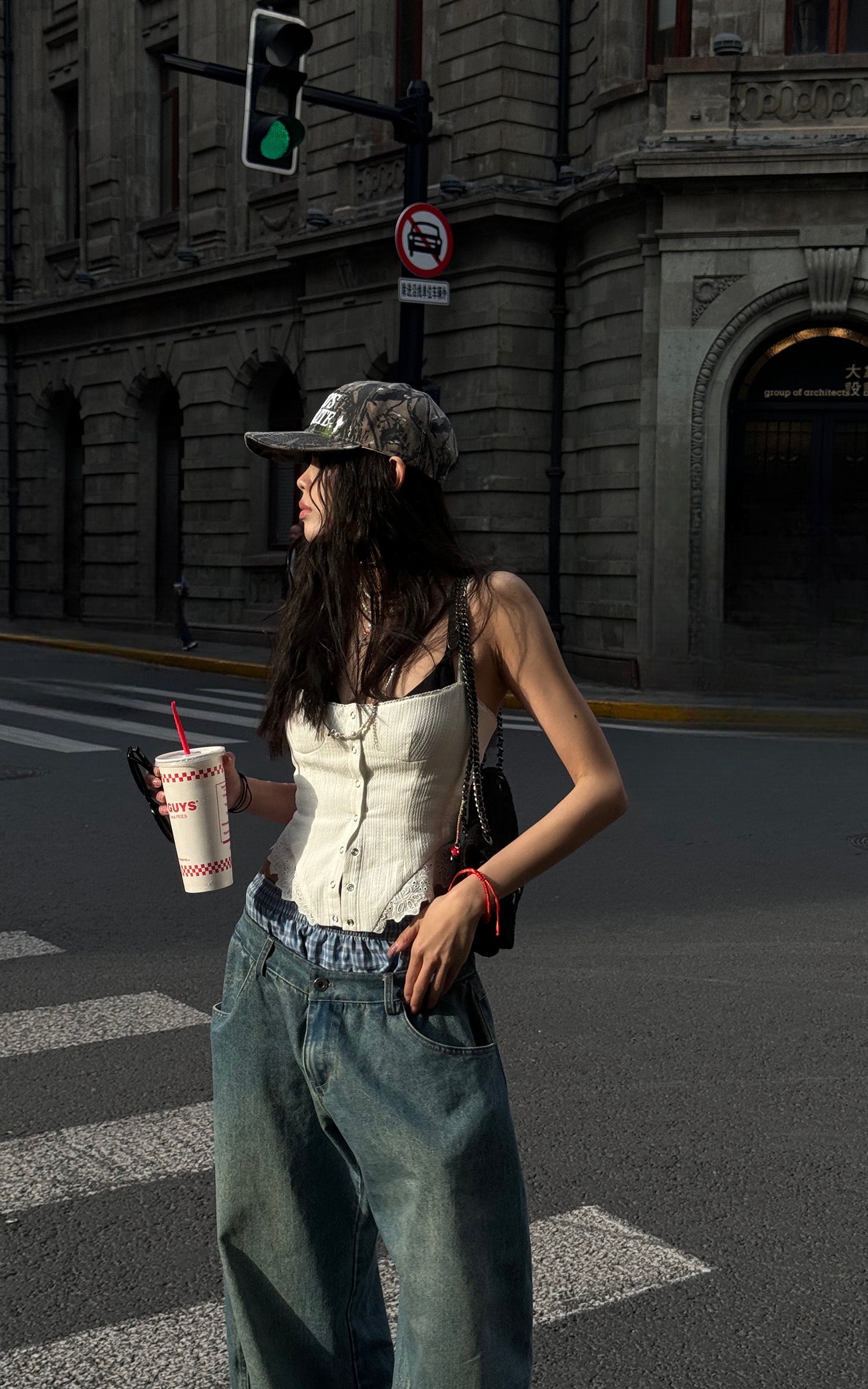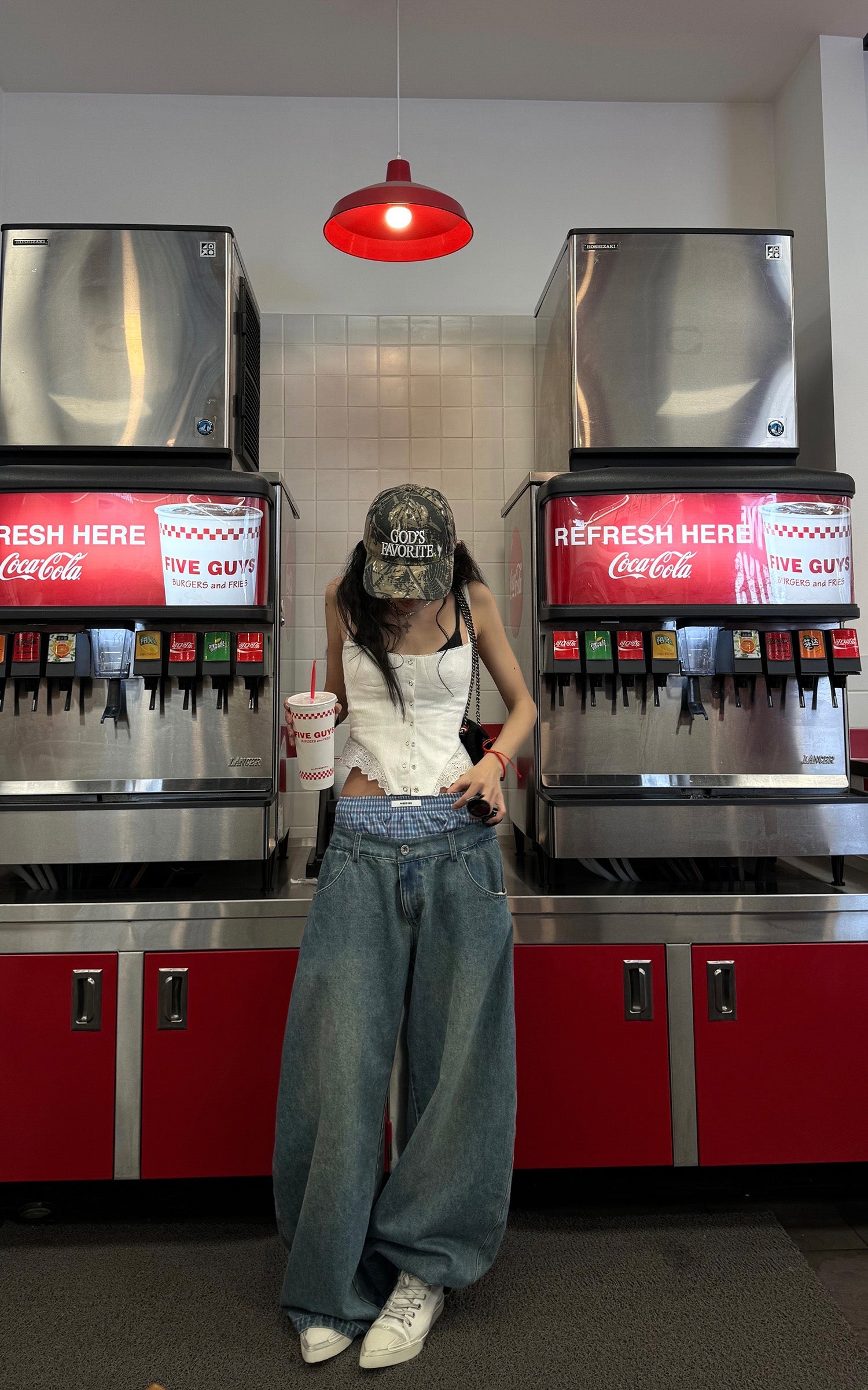 Questi pantaloni in denim oversize combinano lo stile rilassato dello streetwear con dettagli intricati. Caratterizzati da un design unico con doppia cintura e accenti a quadri, questi pantaloni offrono un'innovativa rivisitazione del classico denim. La silhouette a gamba larga aggiunge un flusso e un movimento senza sforzo, mentre il taglio lungo fino al pavimento assicura un look audace e d'impatto. Perfetti da abbinare sia con top aderenti che oversize, questi pantaloni sono un'aggiunta versatile a qualsiasi guardaroba contemporaneo.
