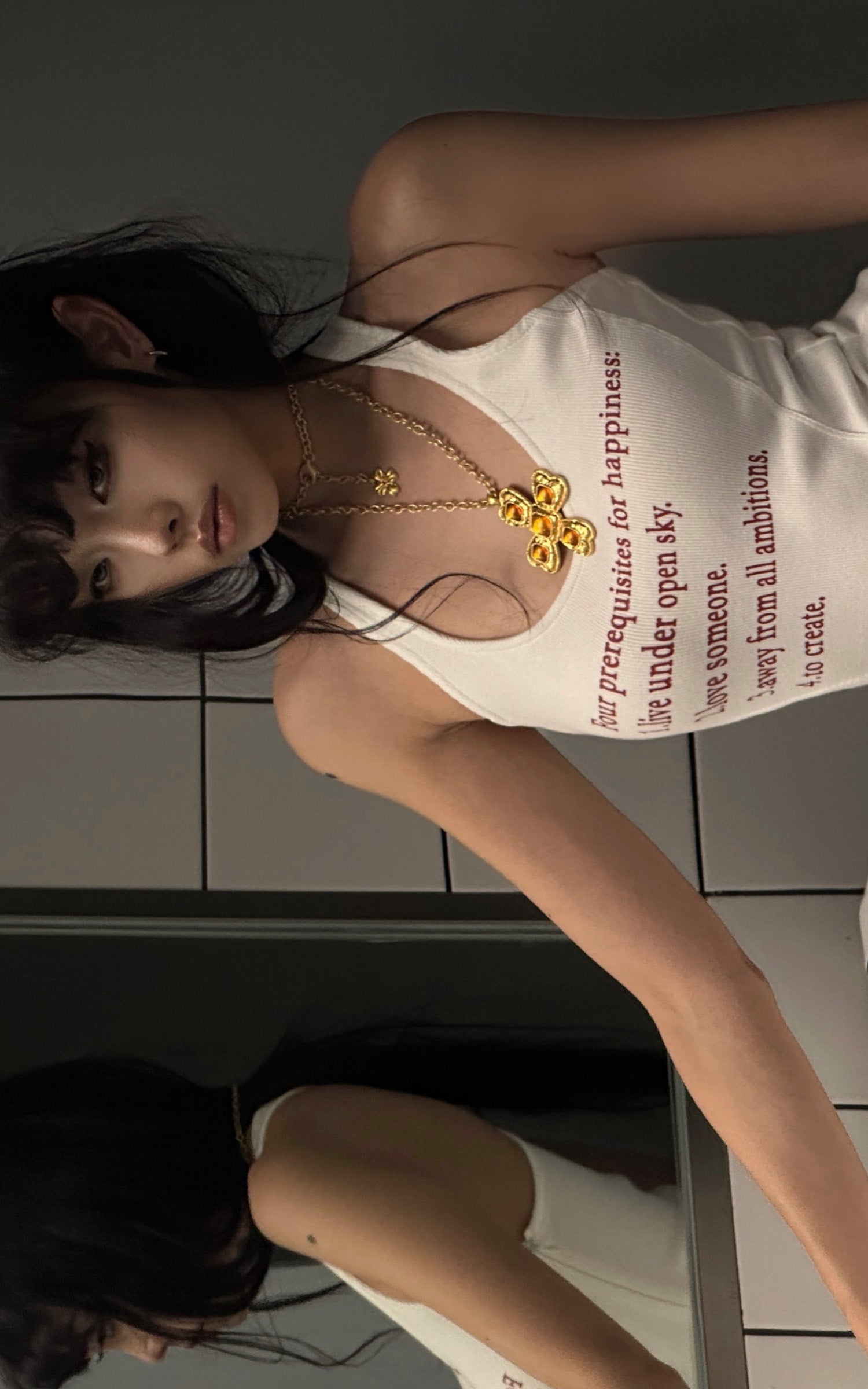 Di seguito sono riportate le taglie che la modella indossa durante il servizio fotografico: