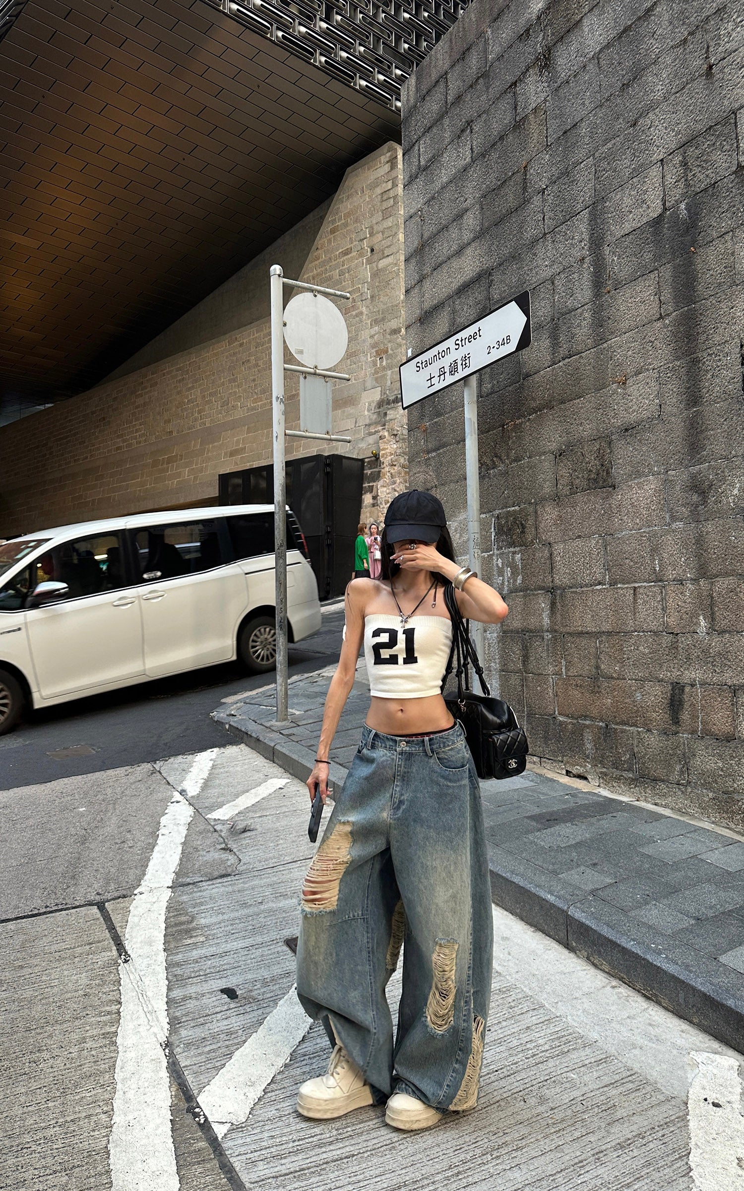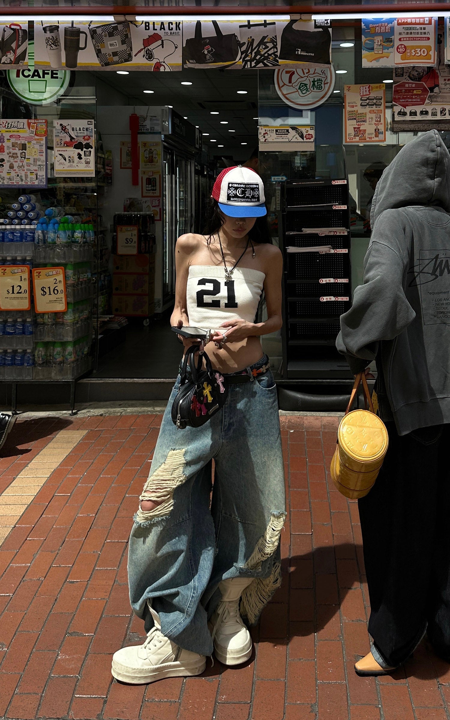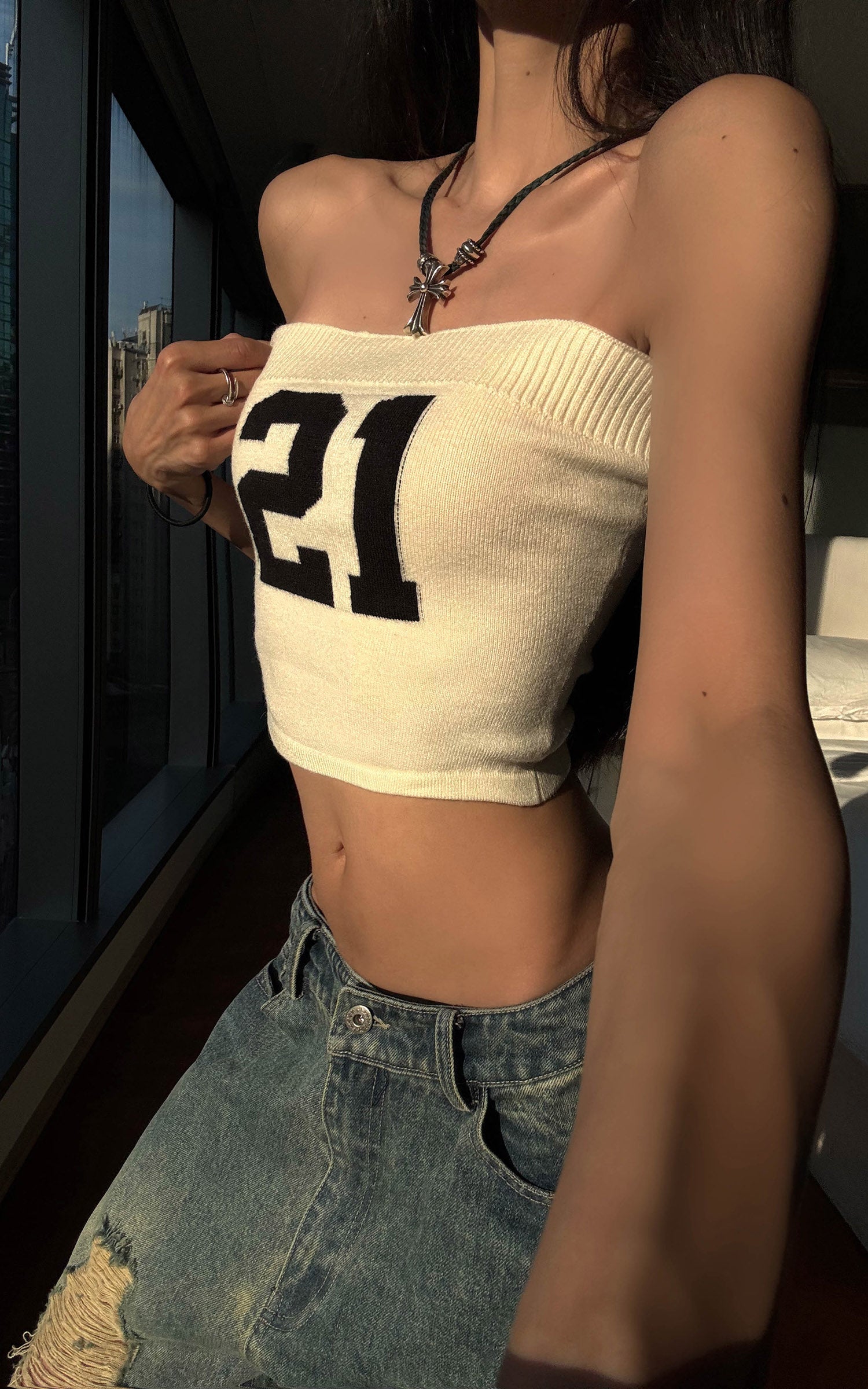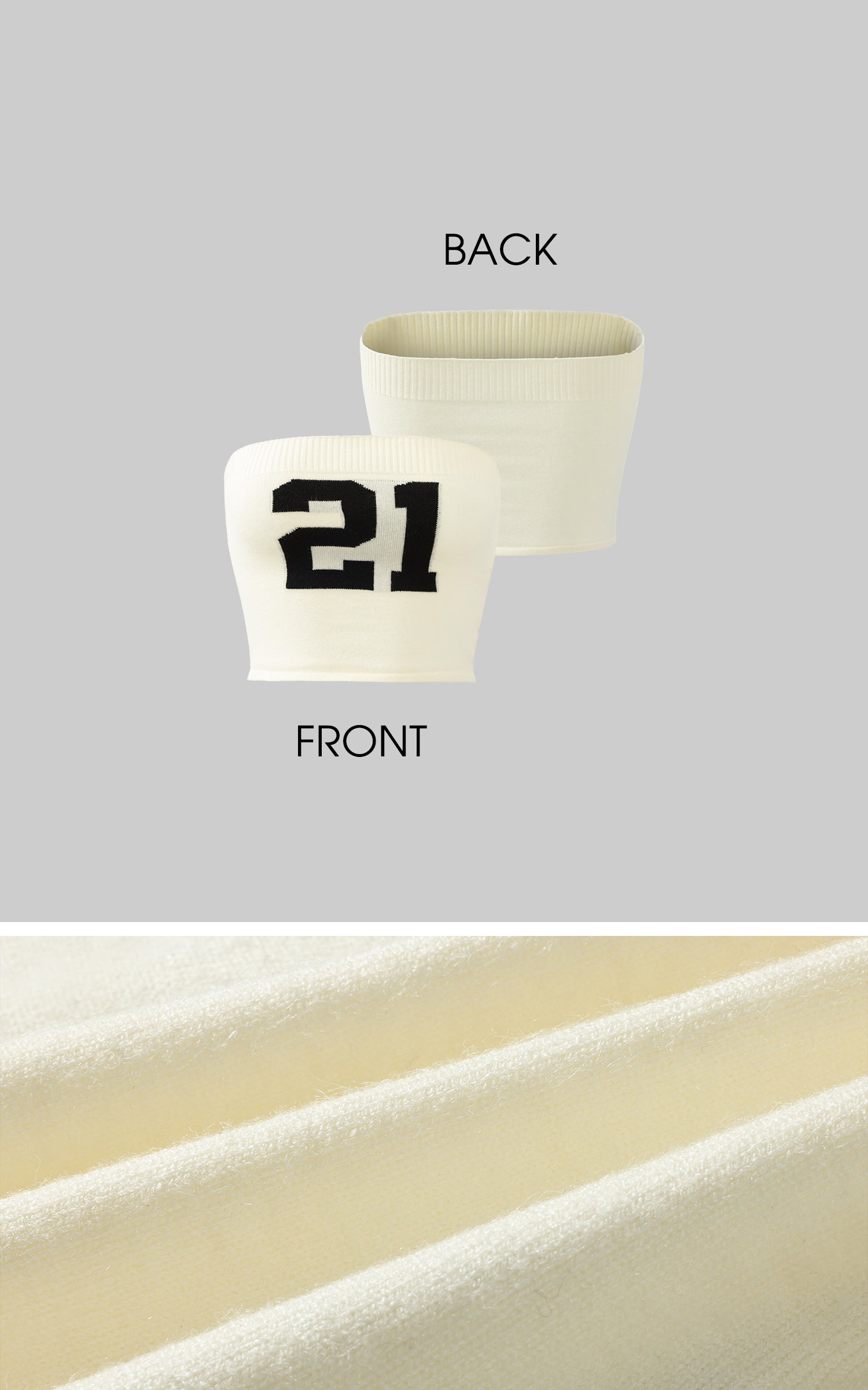 Silhouette minimalista, massima dichiarazione. Questo bandeau in maglia elasticizzata è realizzato con un bordo superiore a coste per garantire una vestibilità sicura, mentre il grintoso jacquard "21" sul davanti offre un codice di strada distintivo. Abbinalo a un denim ampio, stratifica con capi oversize, o indossalo da solo sotto il sole estivo—questo top non gioca mai sul sicuro.