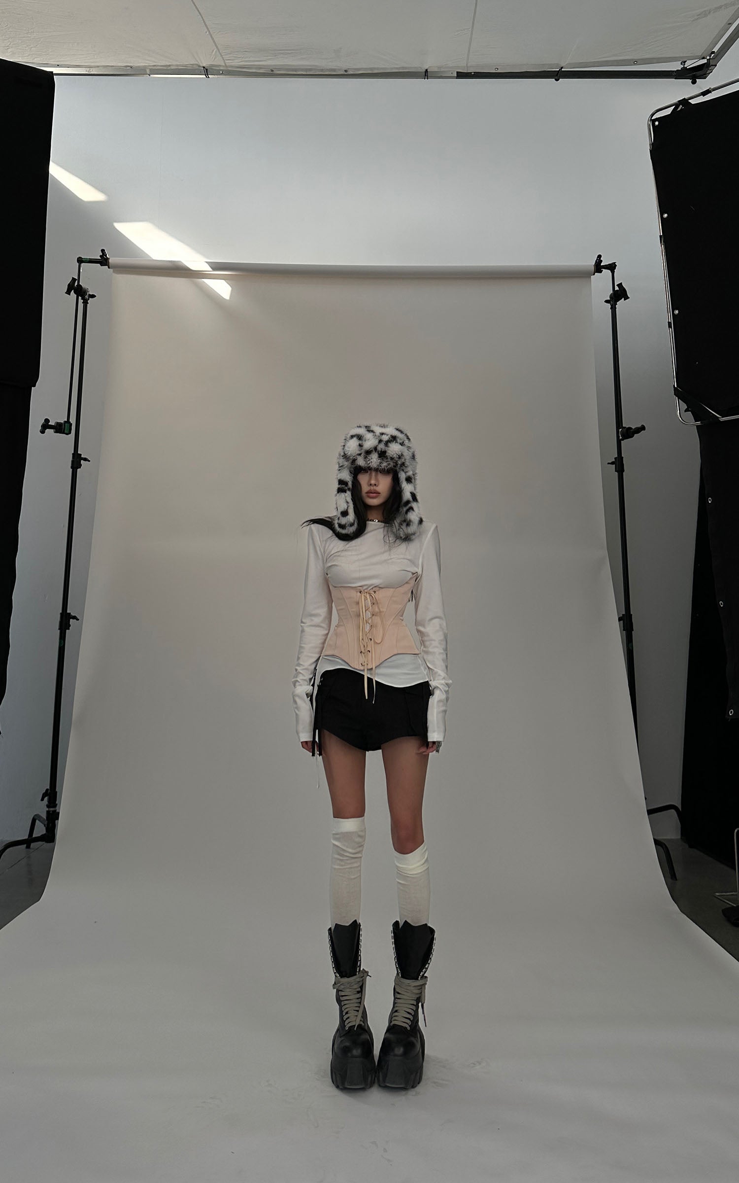 Di seguito sono riportate le taglie che la modella indossa durante il servizio fotografico: