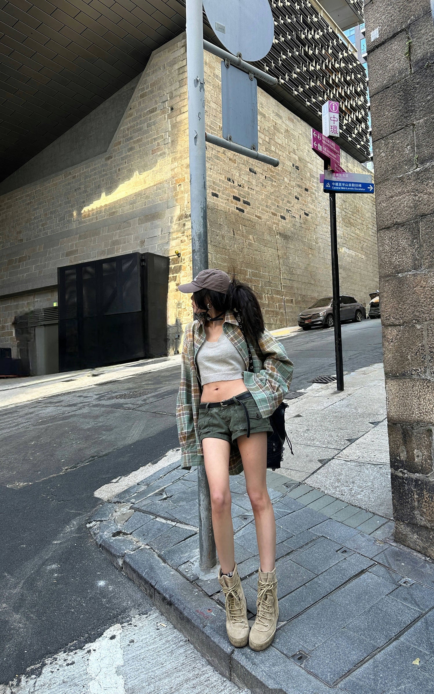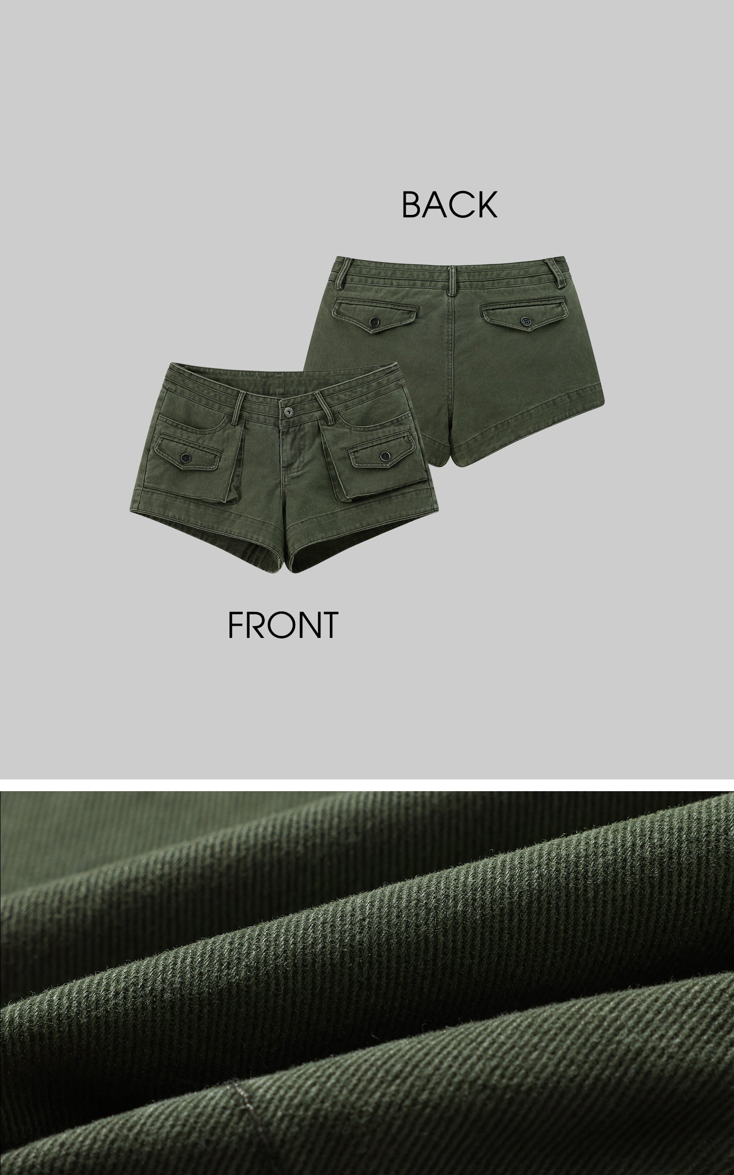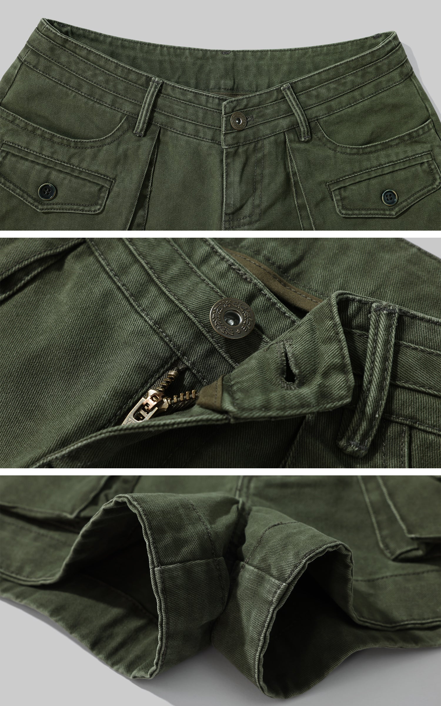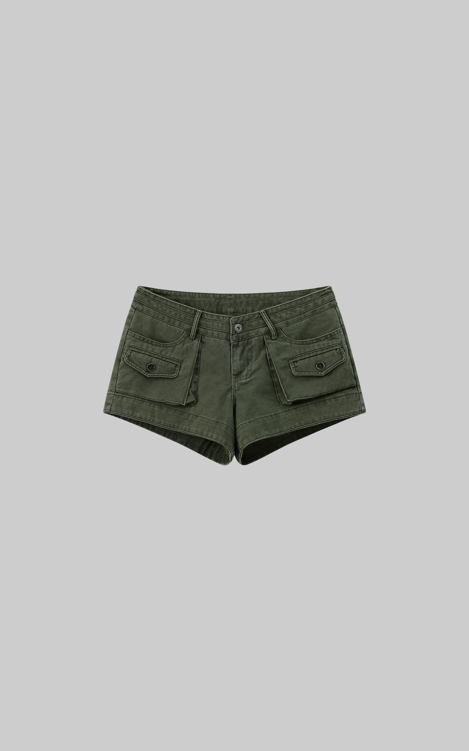 Eleva il tuo stile streetwear con questi pantaloncini ispirati all'utilità. Realizzati in tessuto di cotone di alta qualità, questi pantaloncini sono progettati per offrire sia stile che comfort. Caratterizzati da una vita media, chiusura sicura con bottone e zip, e molteplici tasche cargo con dettagli a patta e bottone, questi pantaloncini fondono funzionalità con una silhouette moderna e audace. La tonalità verde lavato conferisce un aspetto robusto e vintage, perfetto da abbinare a camicie oversize o canotte aderenti. Un capo versatile che unisce senza sforzo abbigliamento casual e di tendenza.