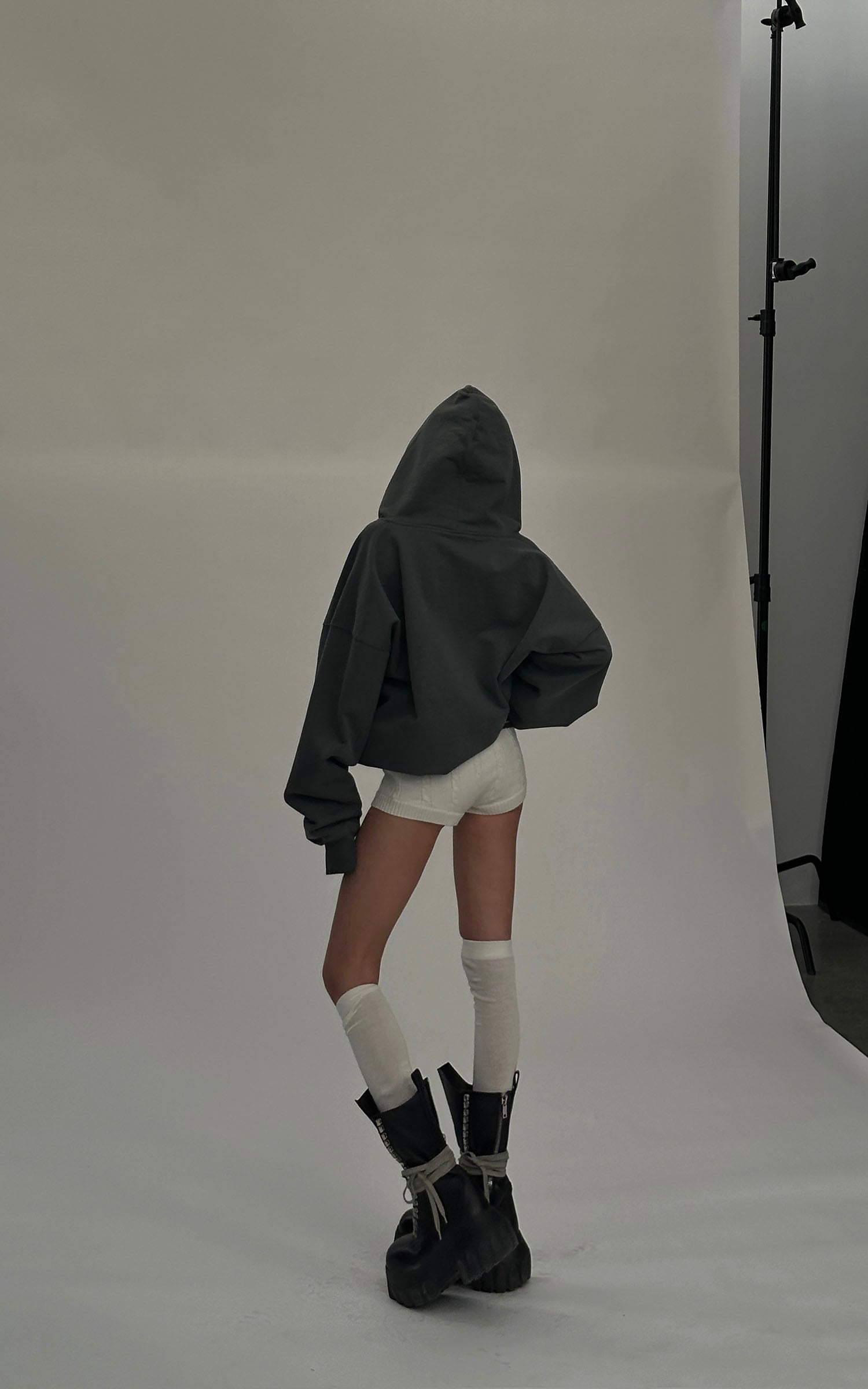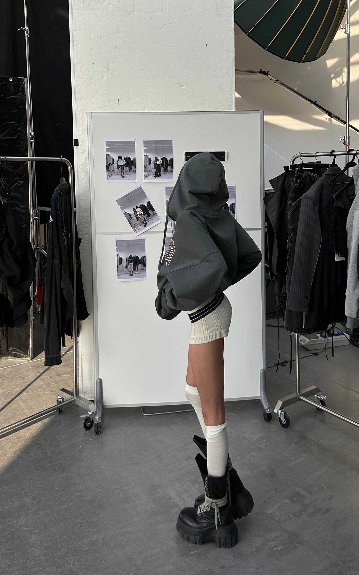 Questi pantaloncini a vita alta in maglia bilanciano silhouette vintage con artigianato moderno, creando un'estetica di sobria eleganza. La spessa texture a maglia intrecciata aggiunge profondità, mentre la vestibilità scolpita esalta i contorni del corpo, evocando un senso di eleganza senza restrizioni.
