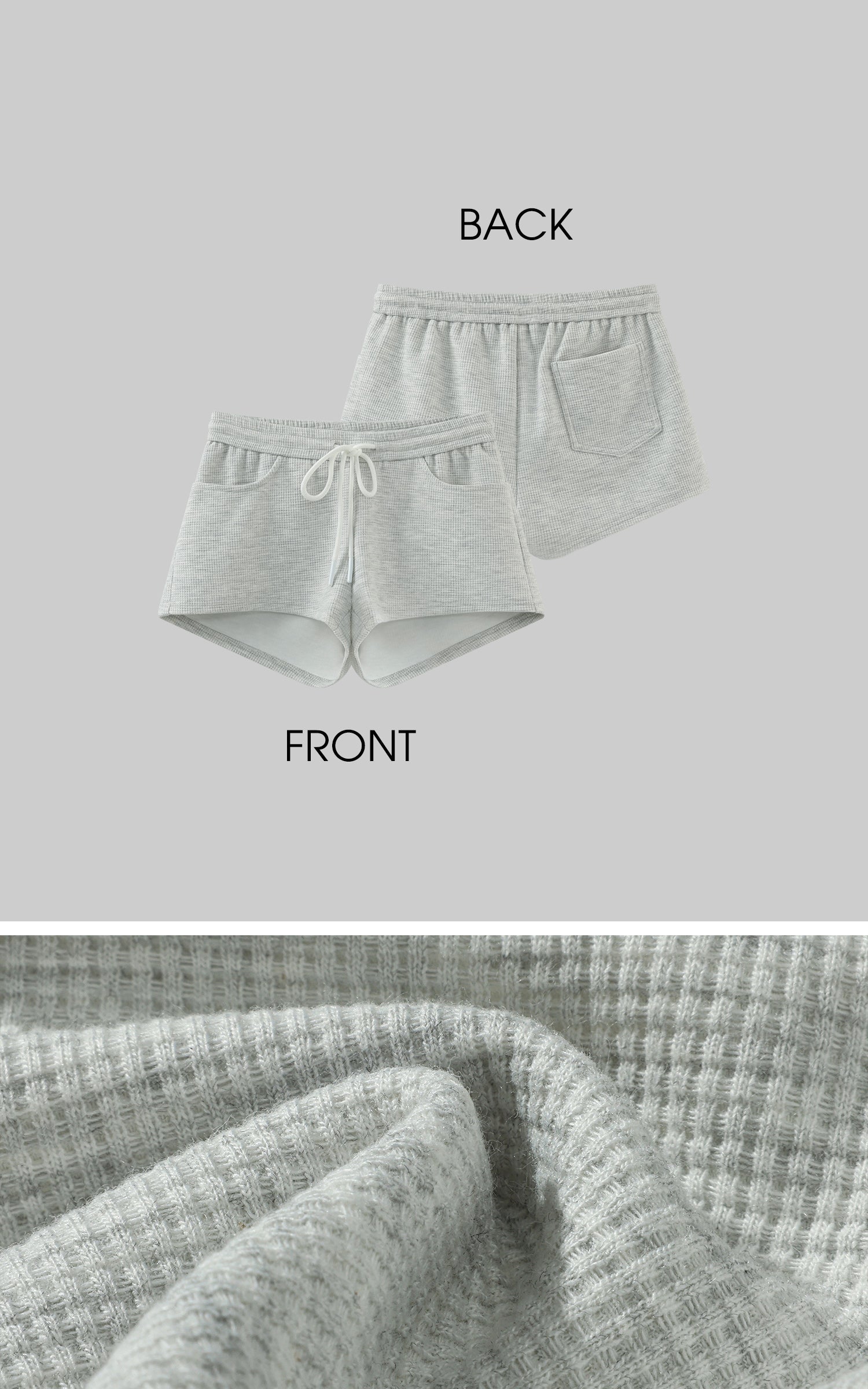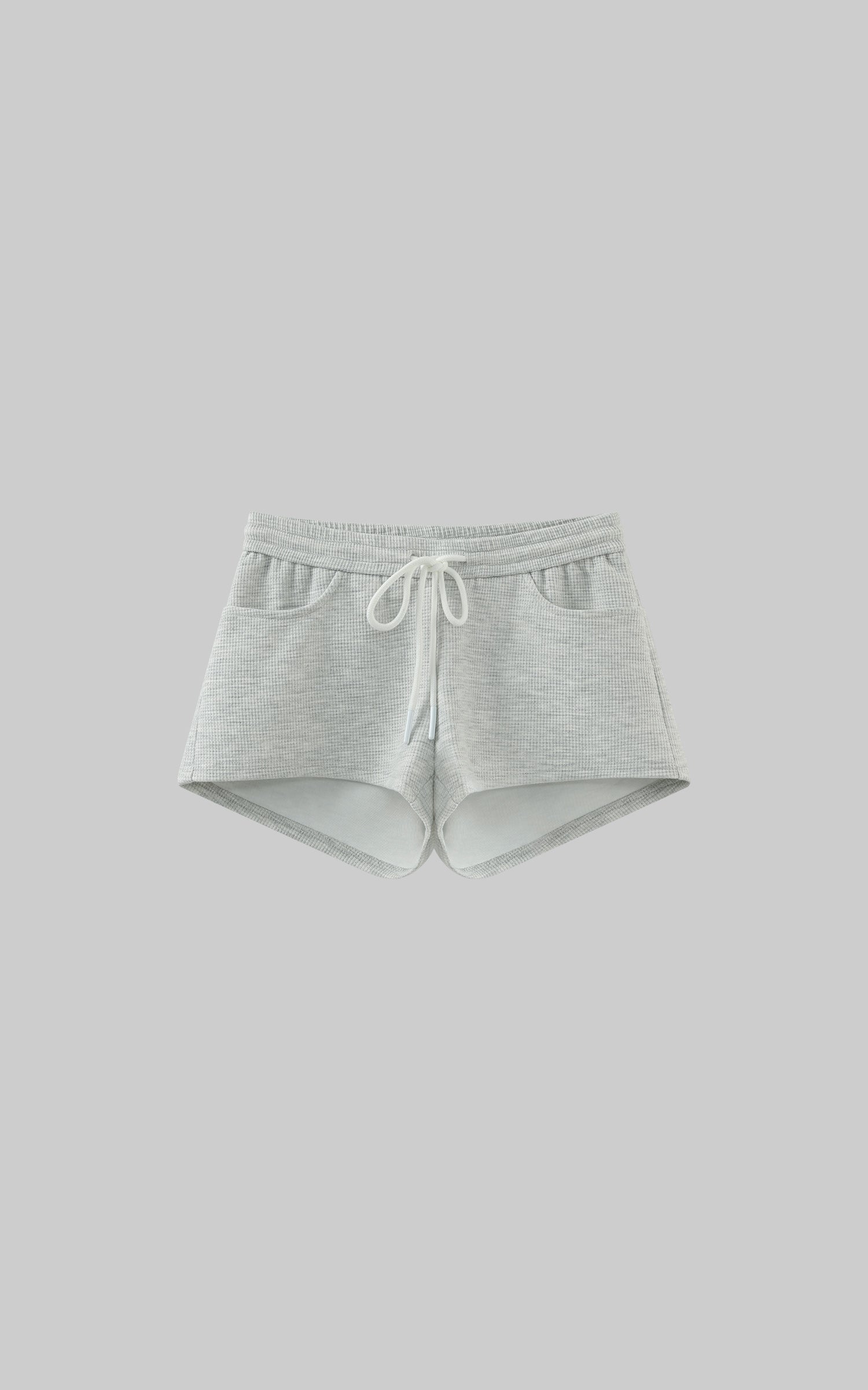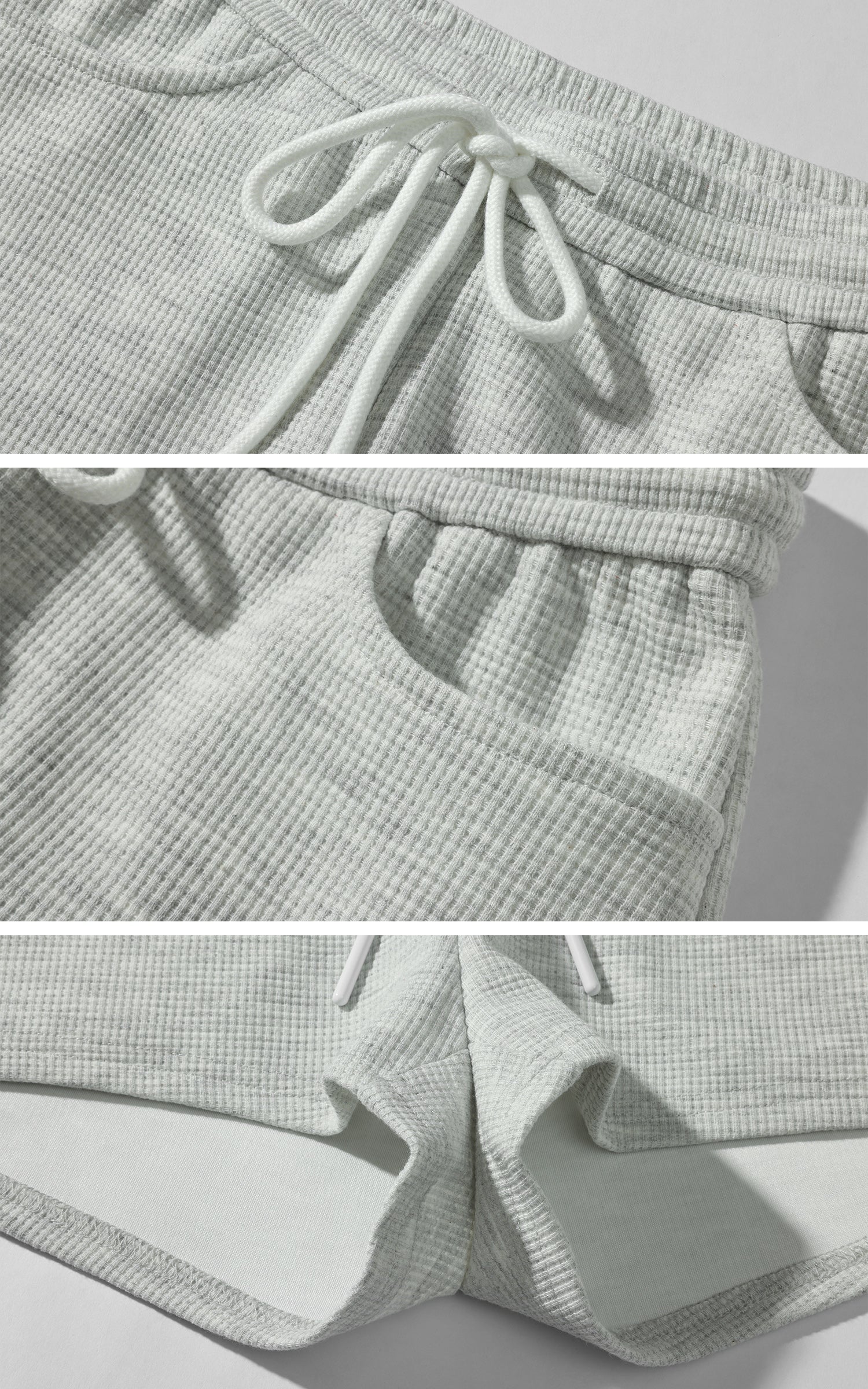 Senza sforzo e discreti. Questi pantaloncini in maglia waffle presentano un taglio pulito, vita con coulisse tonale e orlo curvo liscio. Progettati per la facilità quotidiana con una struttura morbida e una texture sottile, si muovono senza problemi tra il relax e l'uscita. Le tasche laterali a fessura e una tasca posteriore applicata offrono funzionalità senza complicazioni.