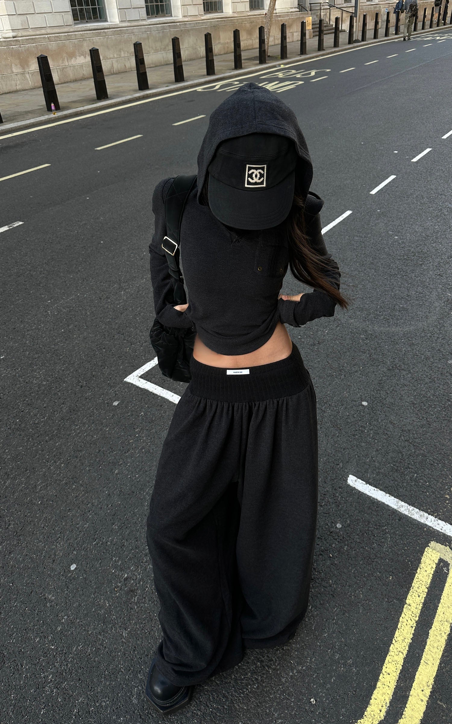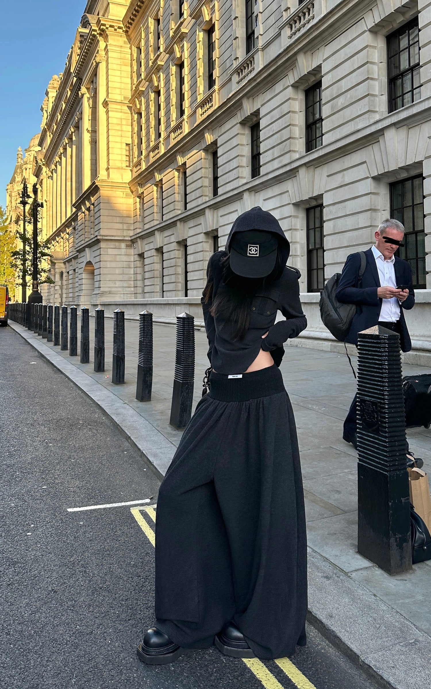 ゆったりとしたシルエットでありながら構造的なデザインのワイドレッグパンツは、精密にボリュームを再定義します。滑らかで重厚感のある生地は、形を保ちながら流れるようにドレープします。リブ編みのハイウエストバンドは、しっかりとしたフィット感を提供し、流れるような脚部に彫刻的なコントラストを加えます。最小限の縫い目とクリーンなラインが動きを強調し、ユーティリタリアンなエッジとモダンな抑制をバランスさせ、ストリート感のある洗練されたルックを実現します。