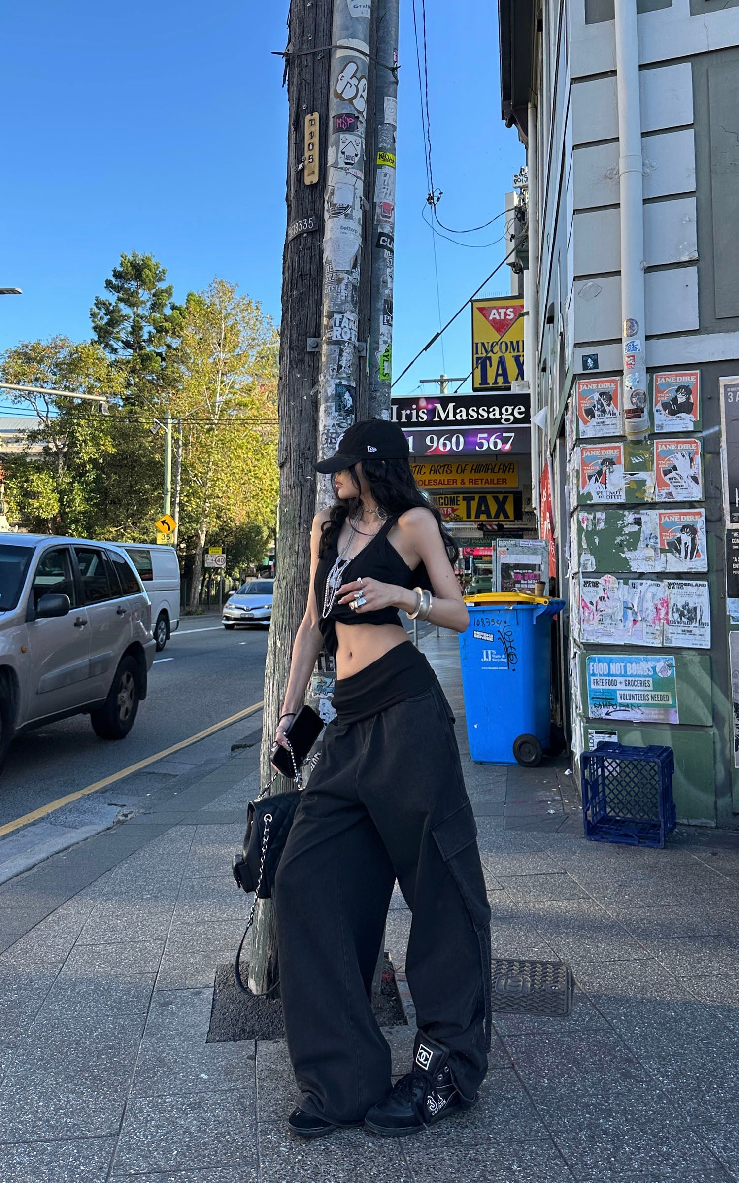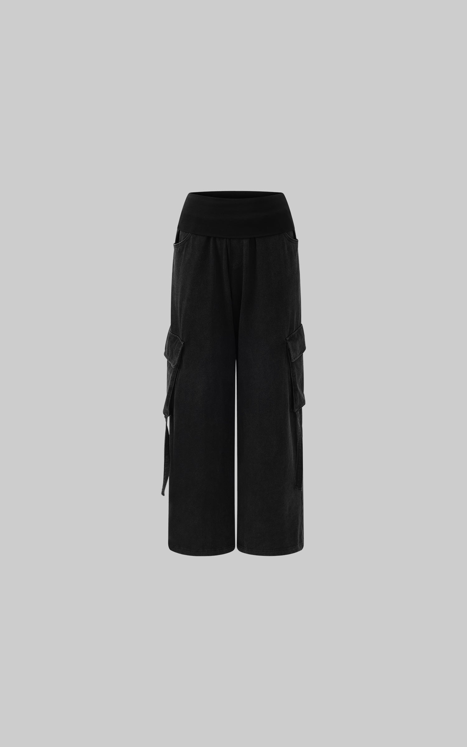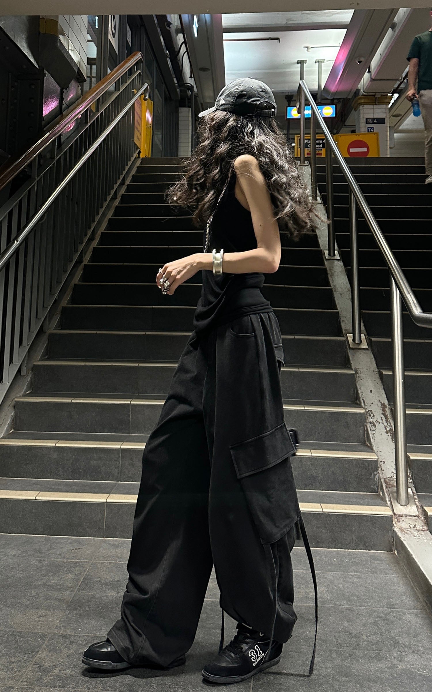 戦術的な定番アイテムを再構築したこれらのブラックカーゴパンツは、構造とゆるさを融合させています。重量感のあるコットンからカットされ、洗いざらしのマットな質感が特徴です。シルエットは、オーバーサイズのボリュームとシャープな構造のバランスを取っています。ストレッチジャージーのリブウエストバンドは期待を裏切り、粗く、洗練され、彫刻的です。サイドフラップポケットには延長されたストラップがあり、ユーティリティコードを反映しつつ動きを誇張しています。反逆のために作られましたが、今のスタイルに合わせています。