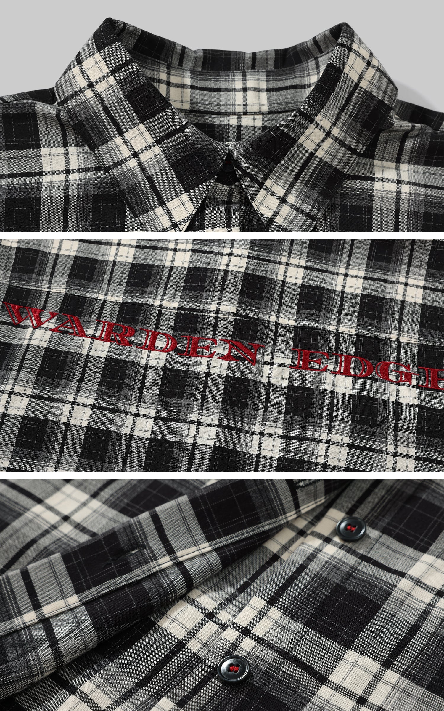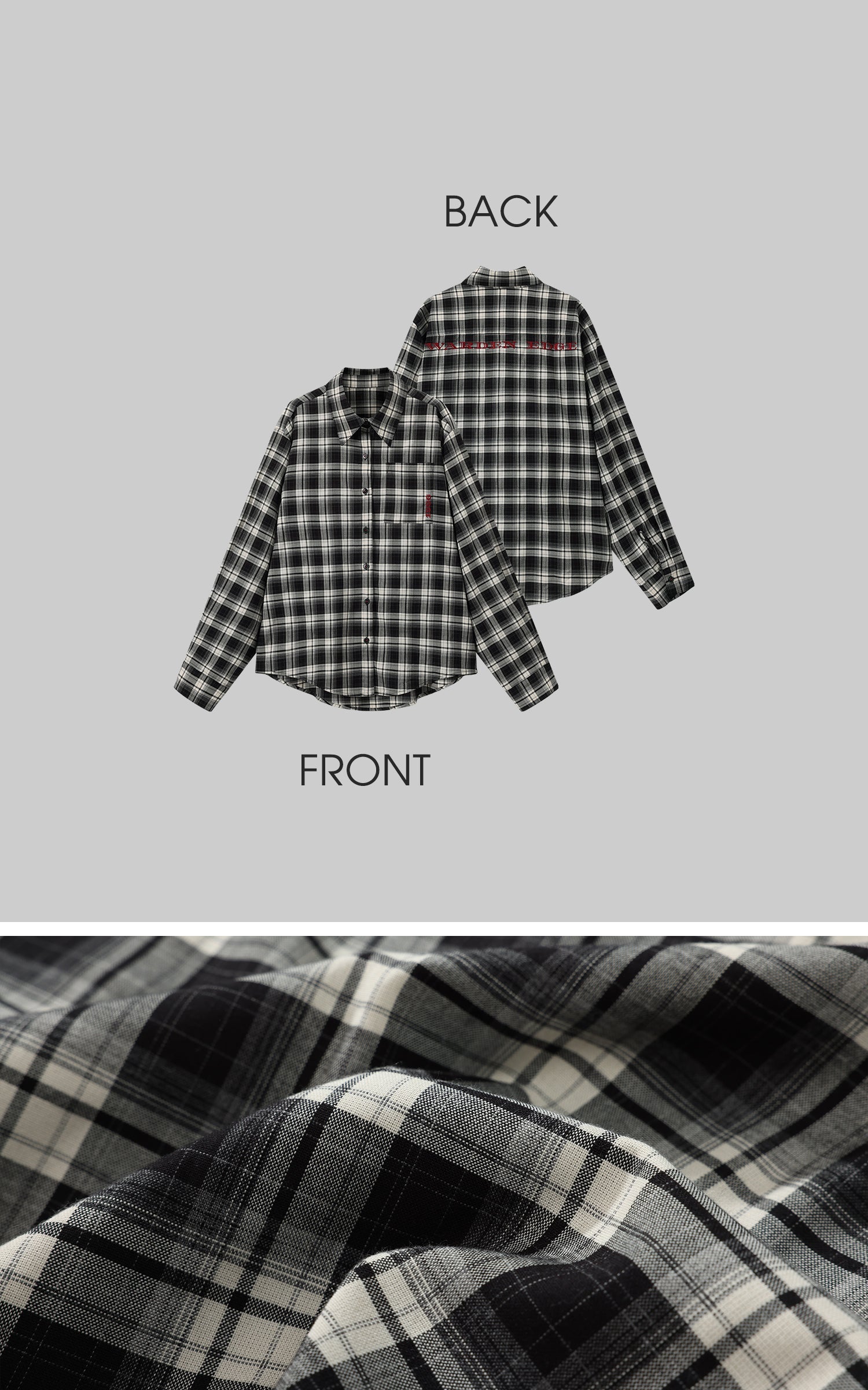 고전적인 형태는 따르기 위한 것이 아니라, 부수기 위한 것입니다. 이 오버사이즈 체크 셔츠는 부드럽고 통기성이 좋은 면 혼합 소재로 제작된 모노크롬 체크 패턴을 특징으로 합니다. 드롭 숄더, 곡선형 밑단, 톤온톤 앞단추는 익숙함을 유지하면서도, 가슴과 등판을 가로지르는 빨간 자수는 조용한 반항을 나타냅니다. 뒷면 패널에는 분명한 메시지가 적혀 있습니다: 당신은 여기에 섞이기 위해 있는 것이 아닙니다.