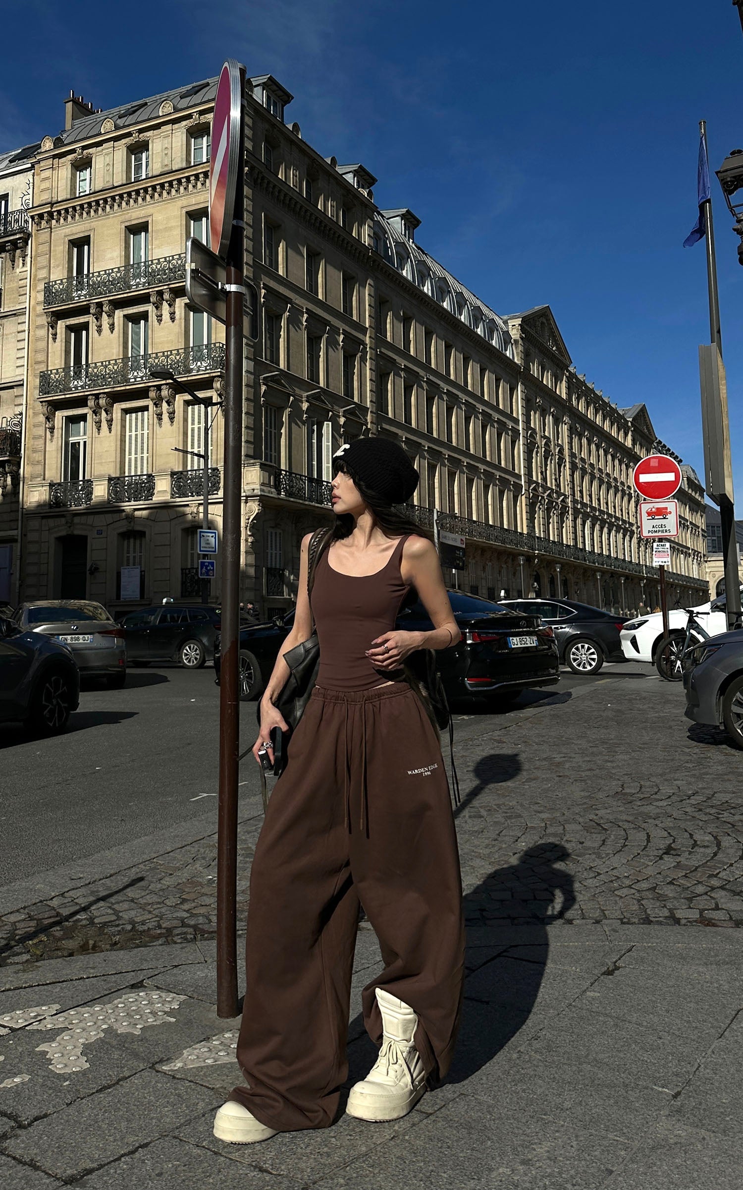 Engineered for unapologetic ease. These heavyweight wide-leg pants are cut with a relaxed silhouette that drapes and pools naturally, offering a bold interplay of volume and movement. Crafted from dense cotton jersey, they feature an elasticated waistband and subtle tonal logo embroidery, grounding streetwear essentials with a sense of understated authority. Designed to go wherever your day — or night — leads.