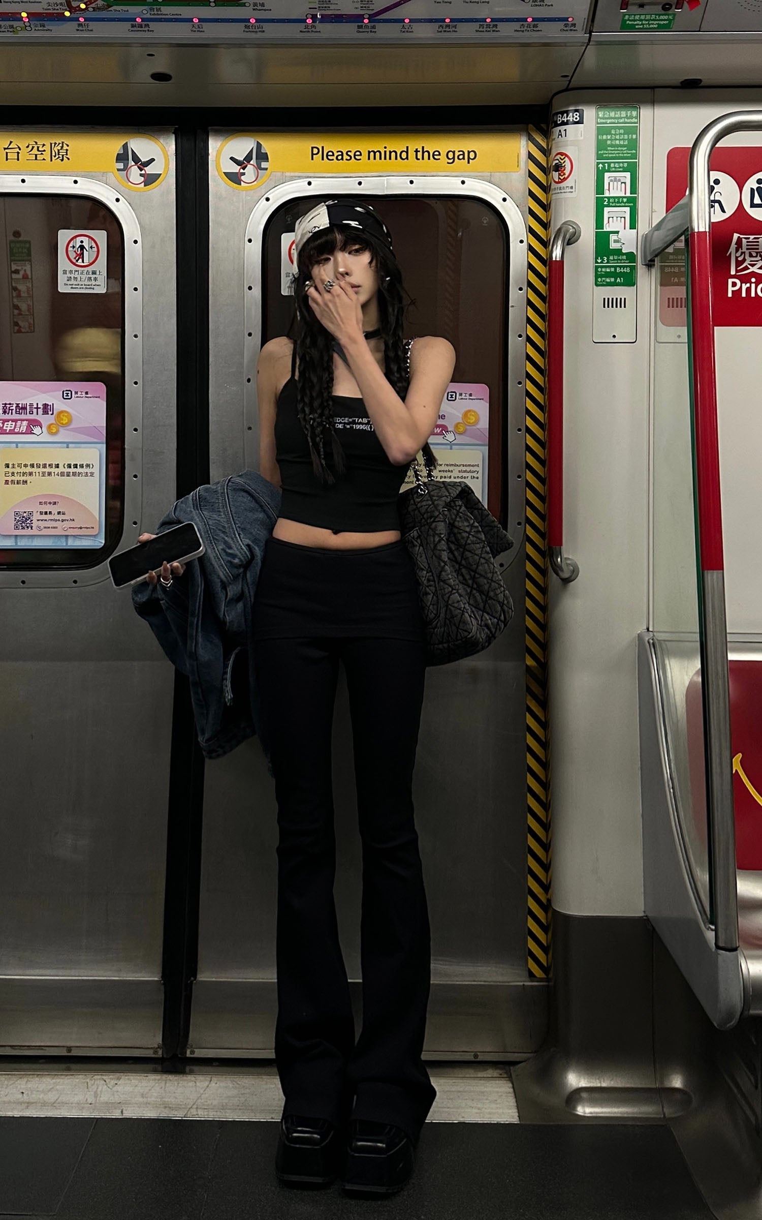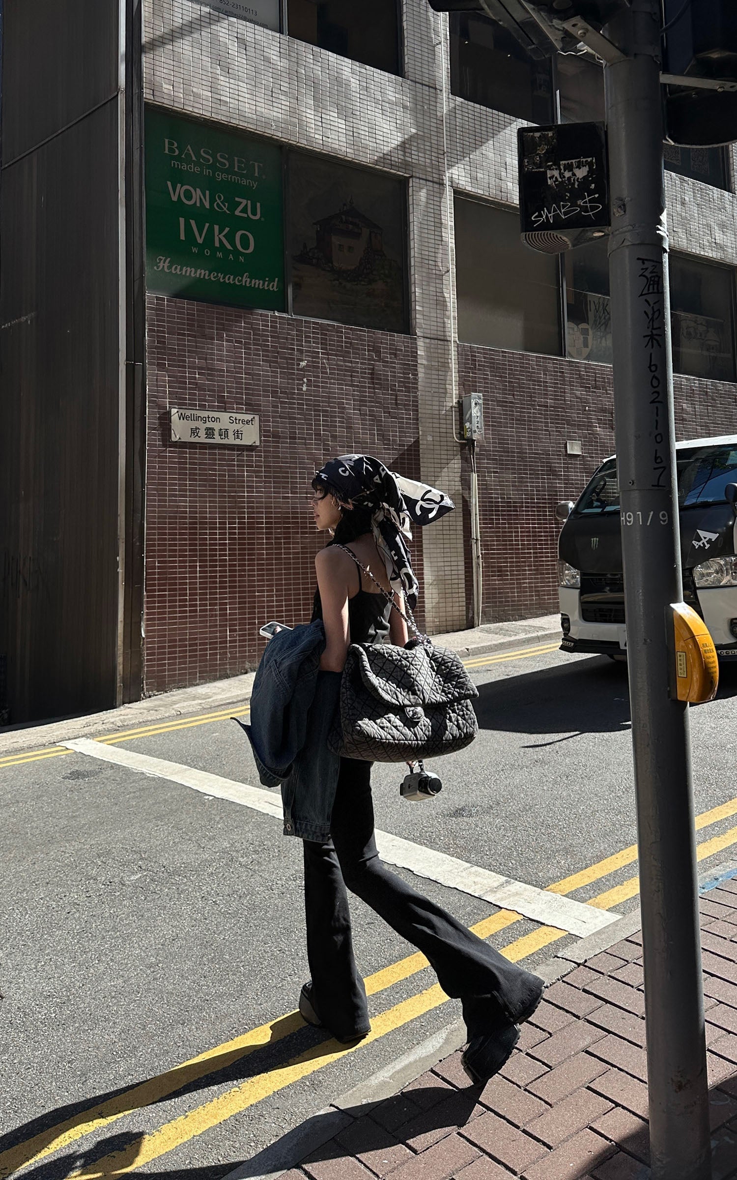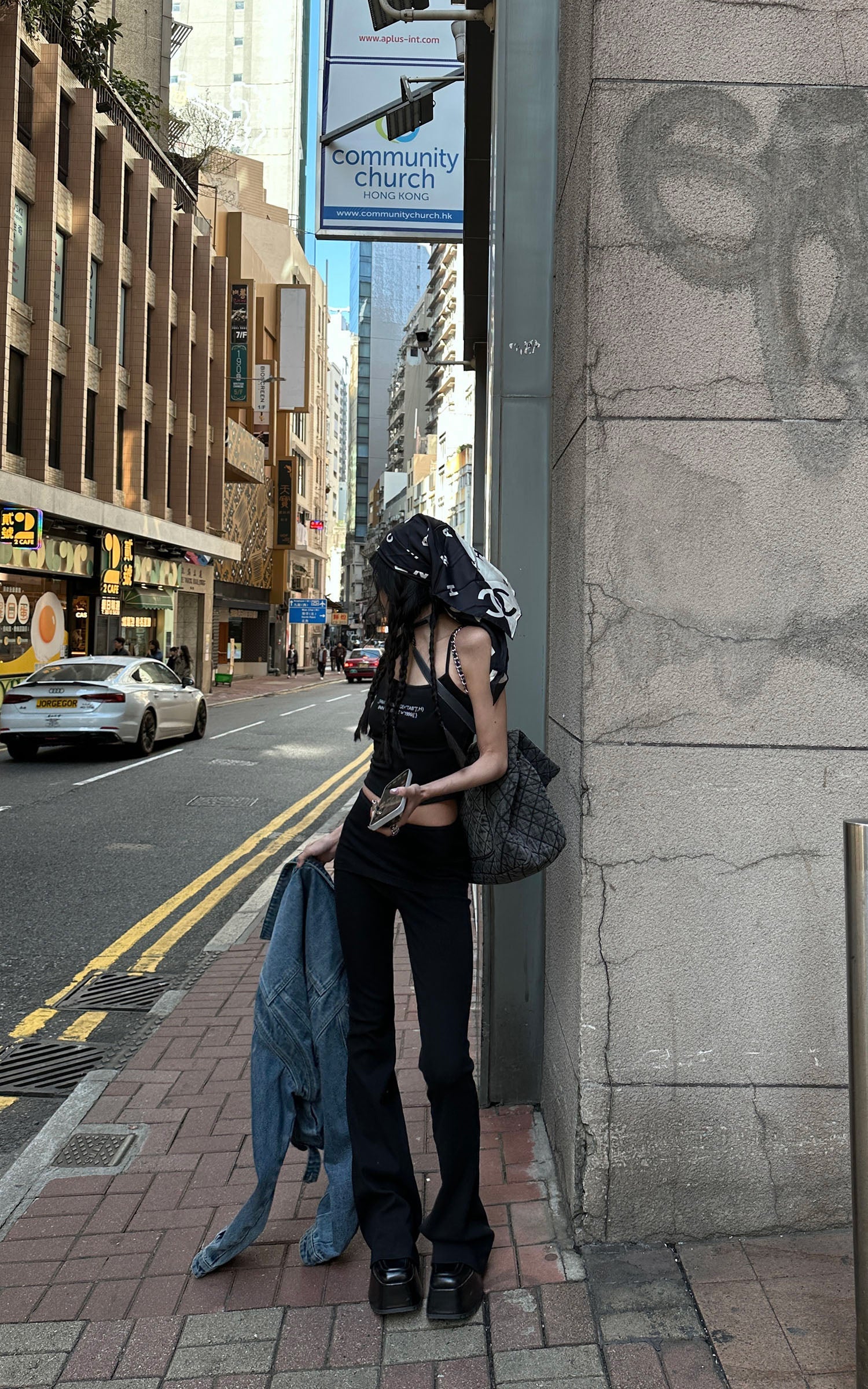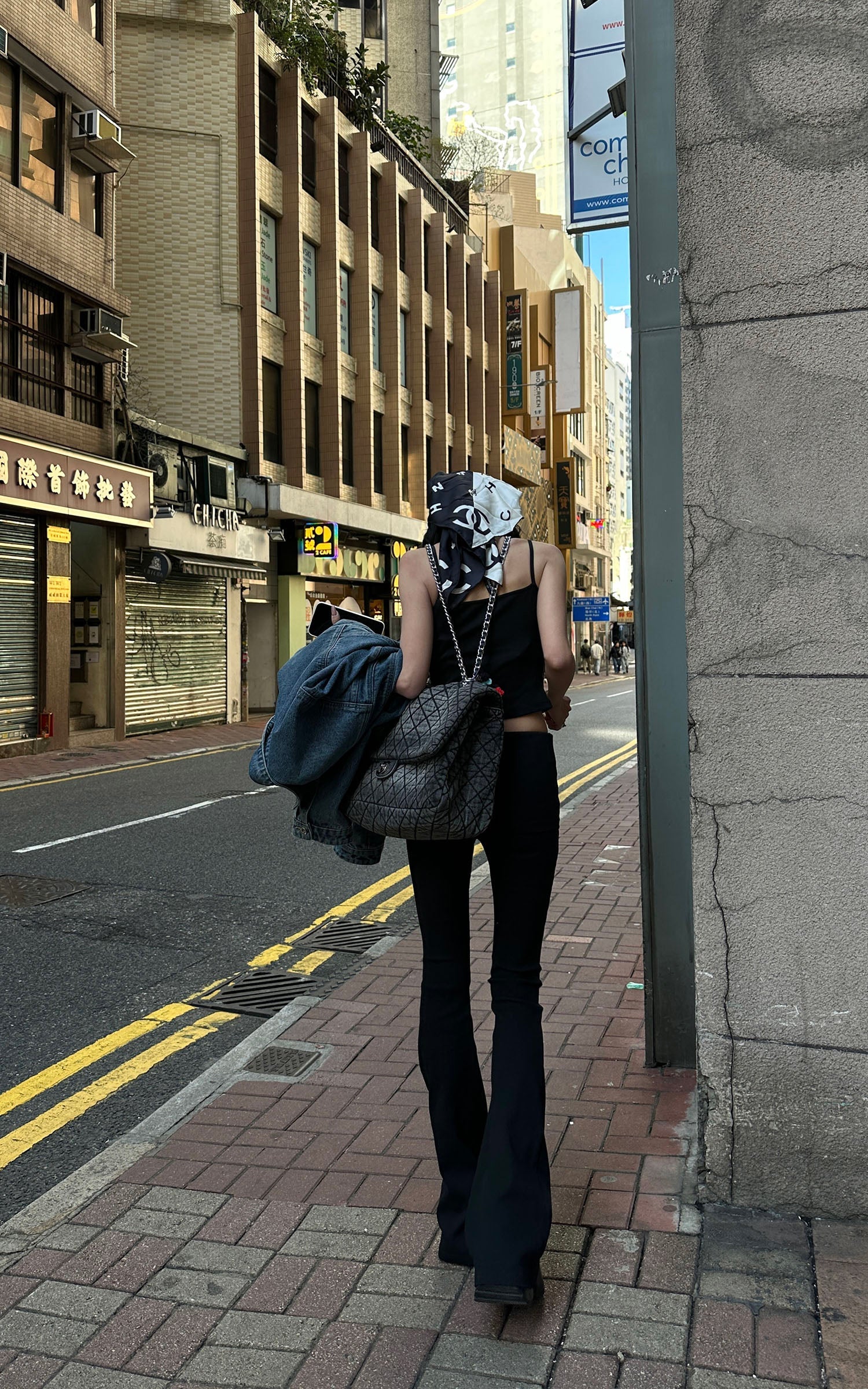 빈티지한 향수를 불러일으키면서도 미래지향적인 세련미를 겸비한 미니멀리스트 스타일의 세트입니다. 로우 웨이스트 플레어 팬츠는 길고 날씬한 실루엣을 만들어주며, 크롭 캐미솔은 구조와 편안함의 완벽한 균형을 이룹니다. 미묘한 텍스트 프린트는 해체주의 미학을 더해주어, 현대 스트리트웨어를 손쉽게 재정의합니다.