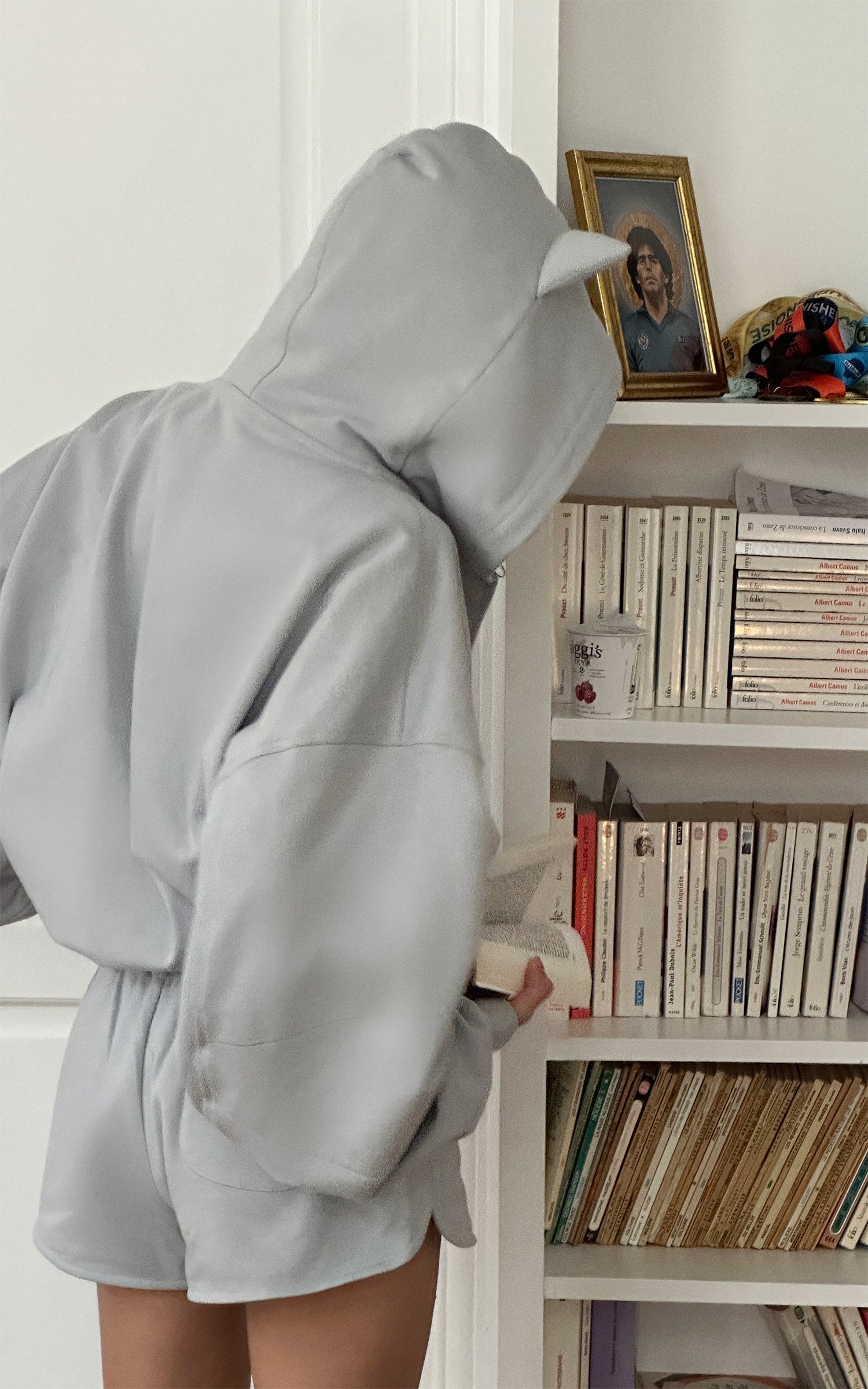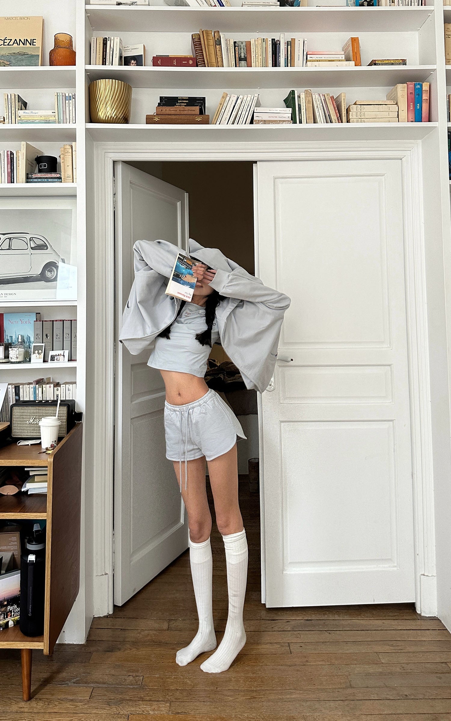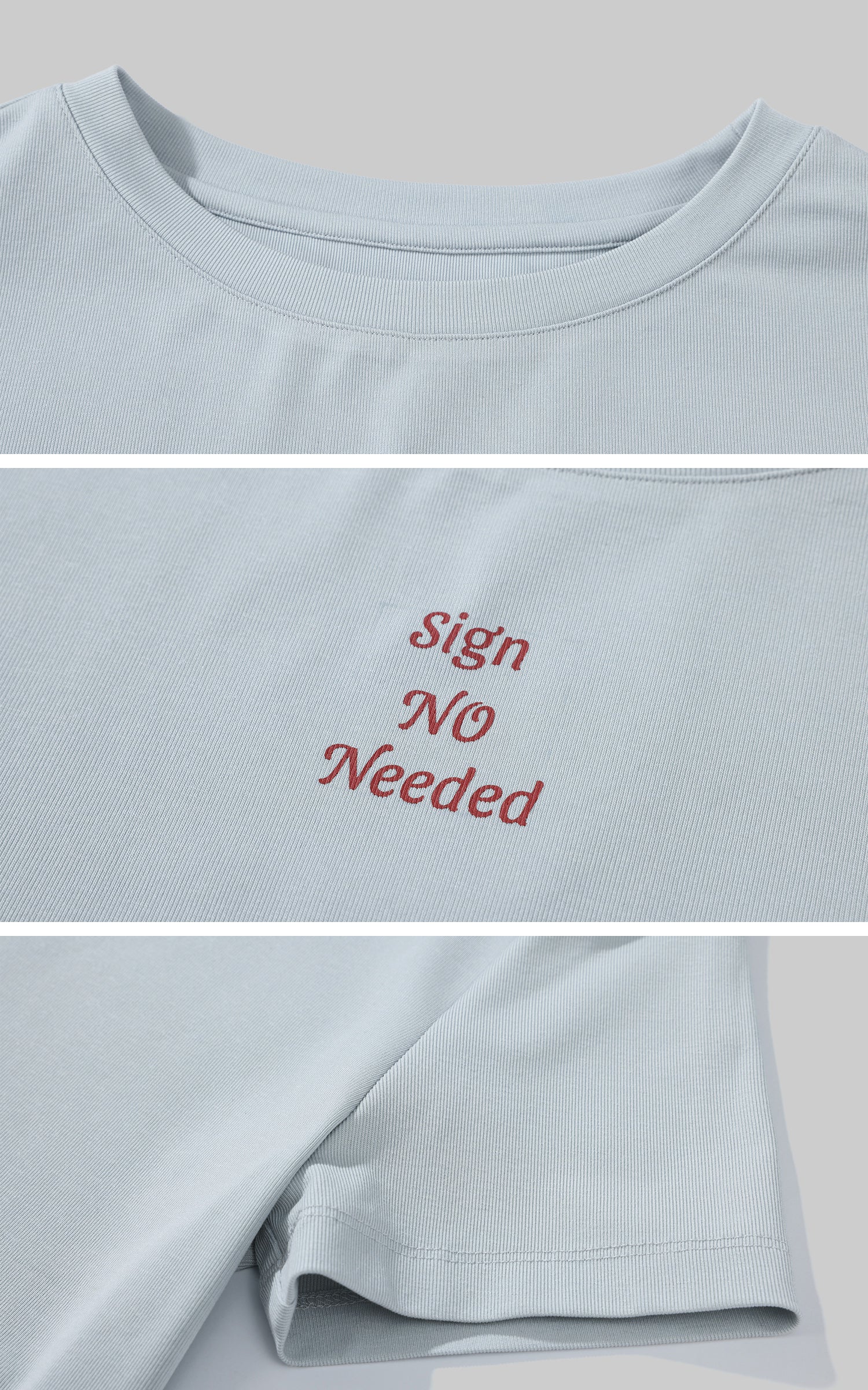 “SIGN NO NEEDED” 티셔츠와 반바지 세트는 절제된 스타일로, 타이트한 립 니트 텍스처와 최소한의 실루엣이 몸에 딱 맞고 움직입니다. 크롭 티셔츠는 가슴에 빨간 글씨로 된 거부 표시만이 특징입니다. 반바지는 신축성 있는 허리밴드와 미묘한 곡선형 밑단이 특징으로, 포스트 스트리트웨어 렌즈를 통해 레트로 체육관 장비를 연상시킵니다. 비번 시간에 갑옷처럼 입어보세요 — 차분하고, 능력 있으며, 서명되지 않은 상태로.