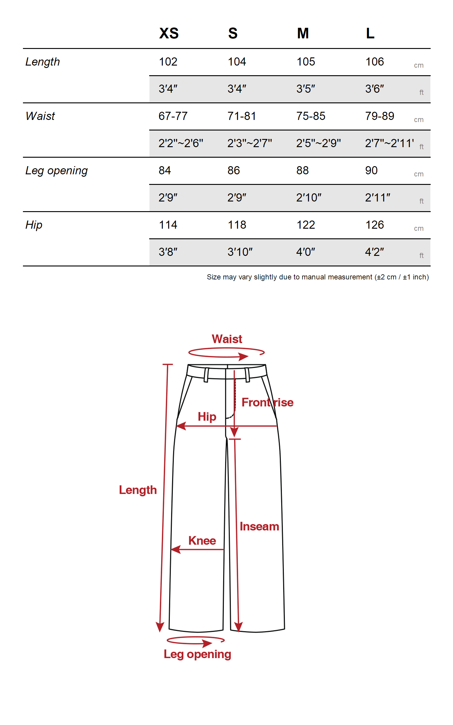 - 하의 – S 사이즈 착용
