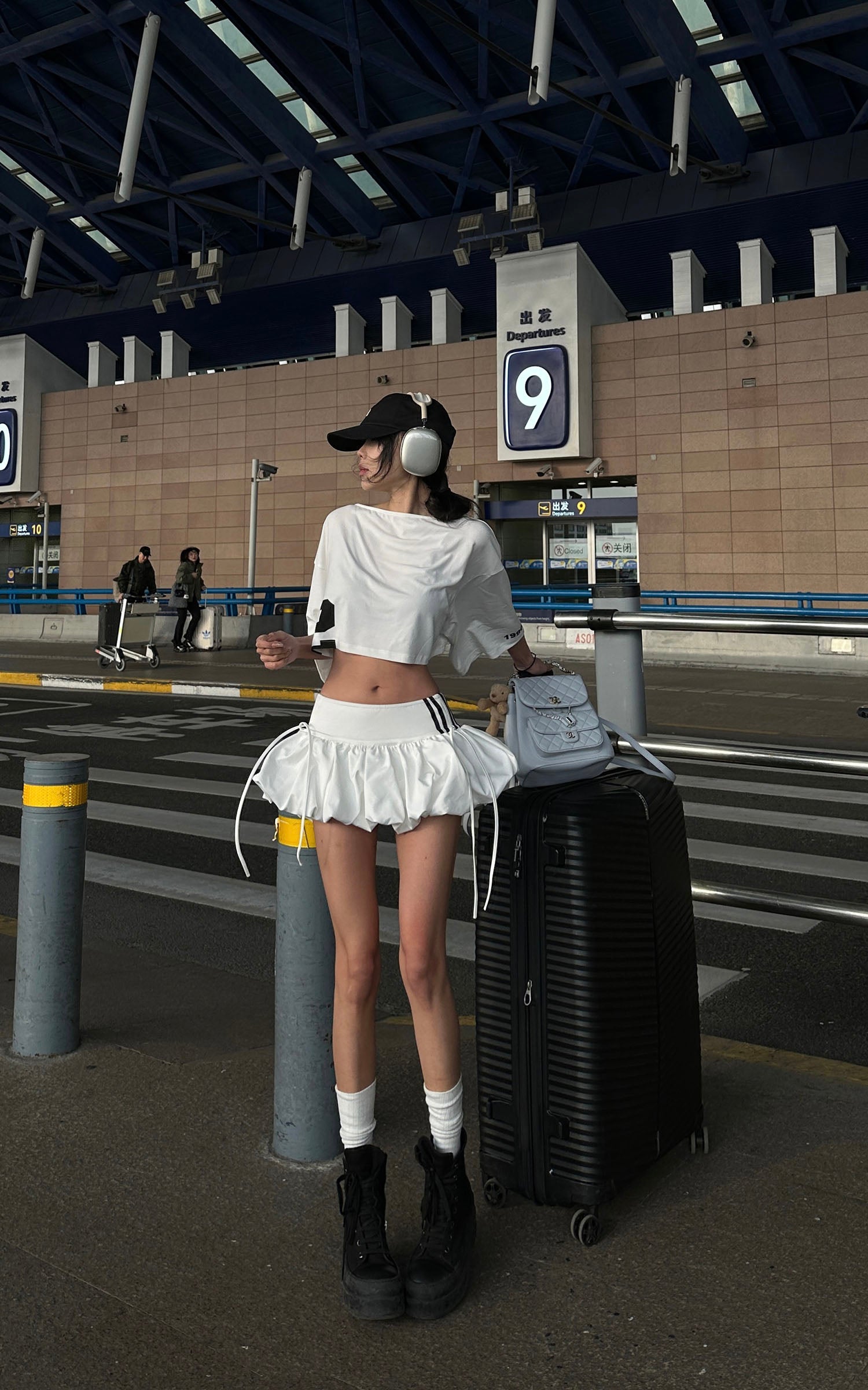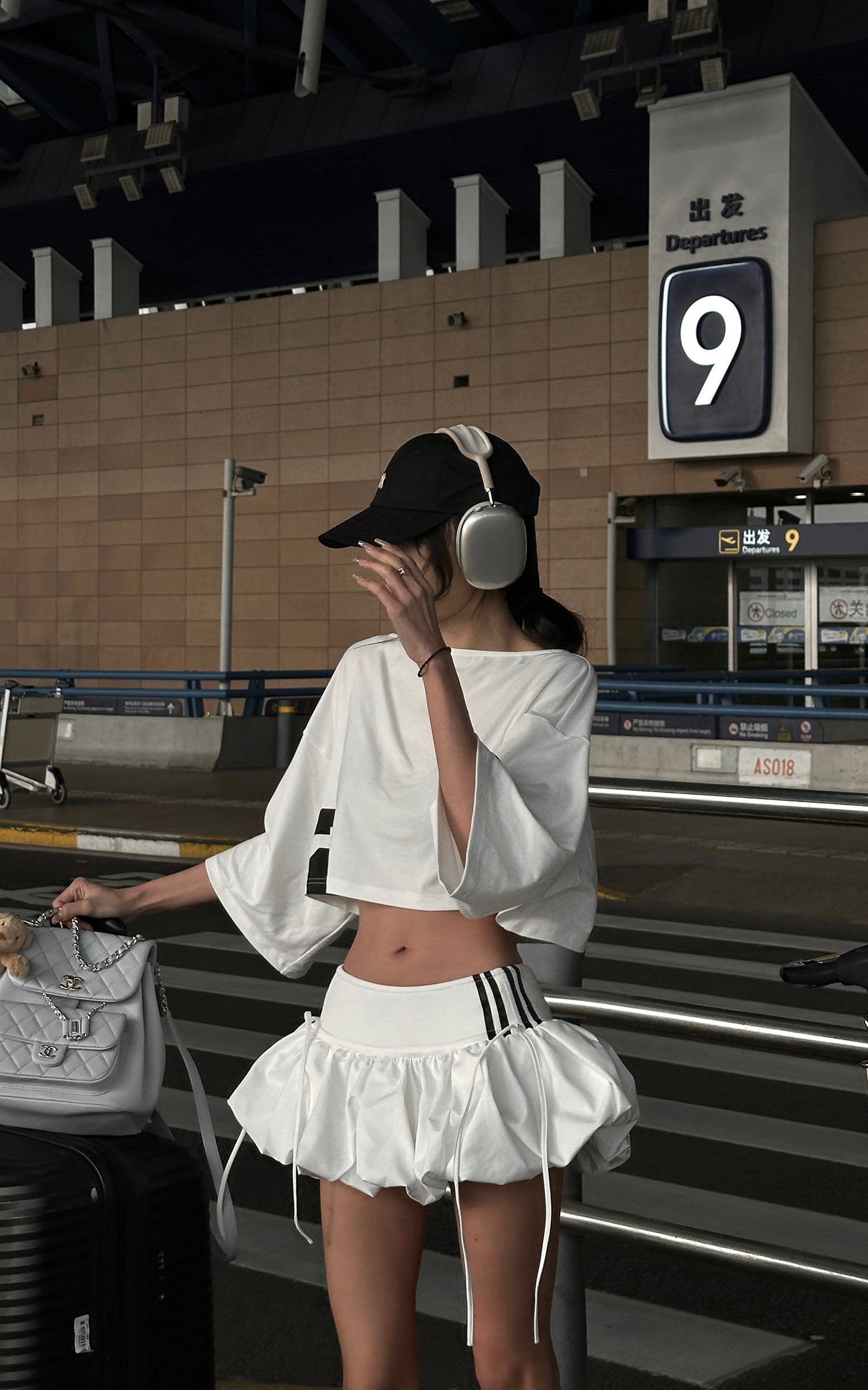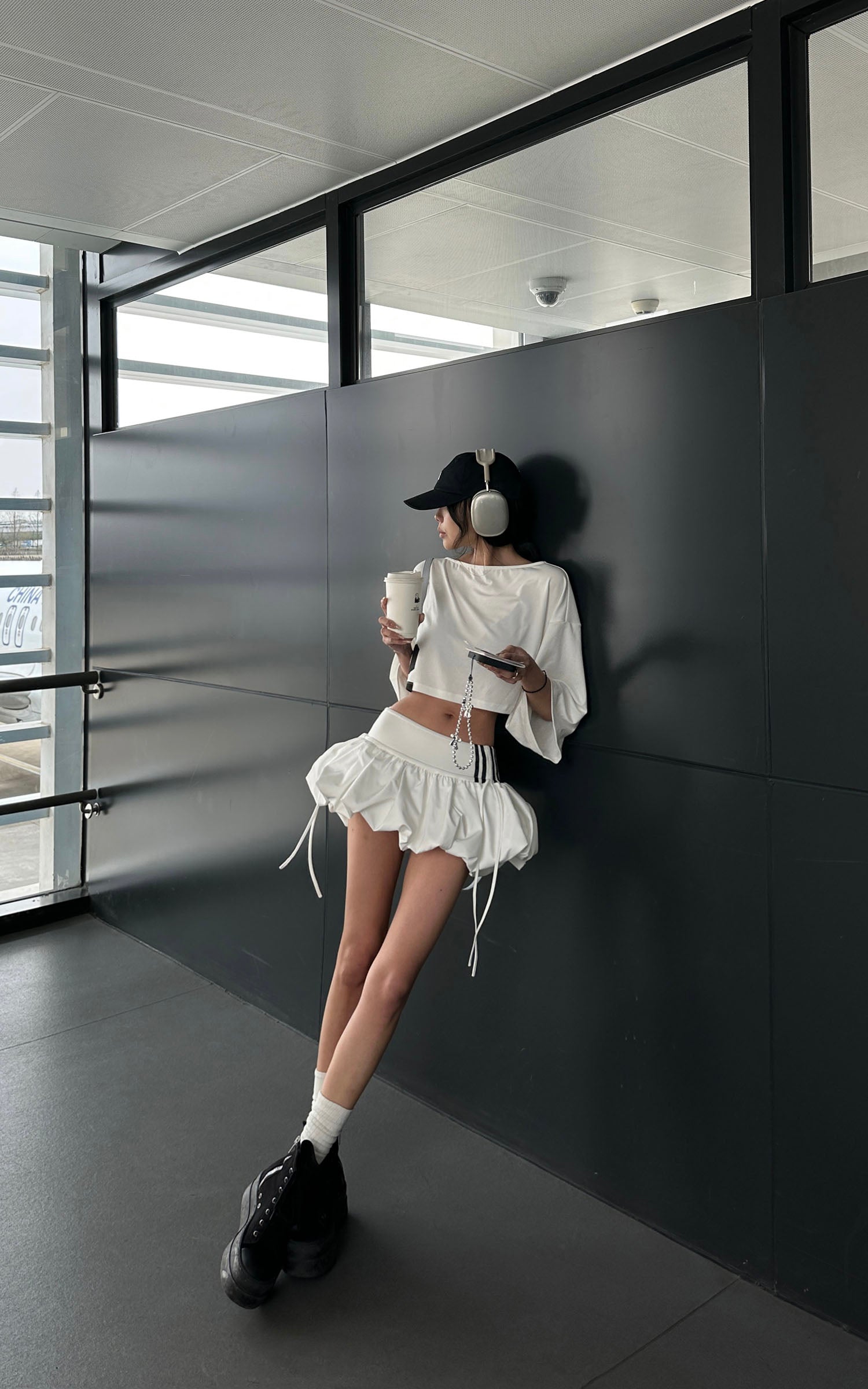 움직임의 조각처럼 만들어졌습니다. 이 버블 미니 스커트는 조각적인 주름진 밑단과 넓은 골지 허리밴드로 대조와 편안함을 제공합니다. 조절 가능한 드로스트링은 볼륨의 미묘한 변화를 허용합니다. 탄력 있는 사이드 스트라이프는 여성스러운 팽창된 실루엣을 통해 재해석된 실용적인 스포츠 코드를 암시합니다. 당당한 자신감과 함께 착용하기에 가장 좋습니다.