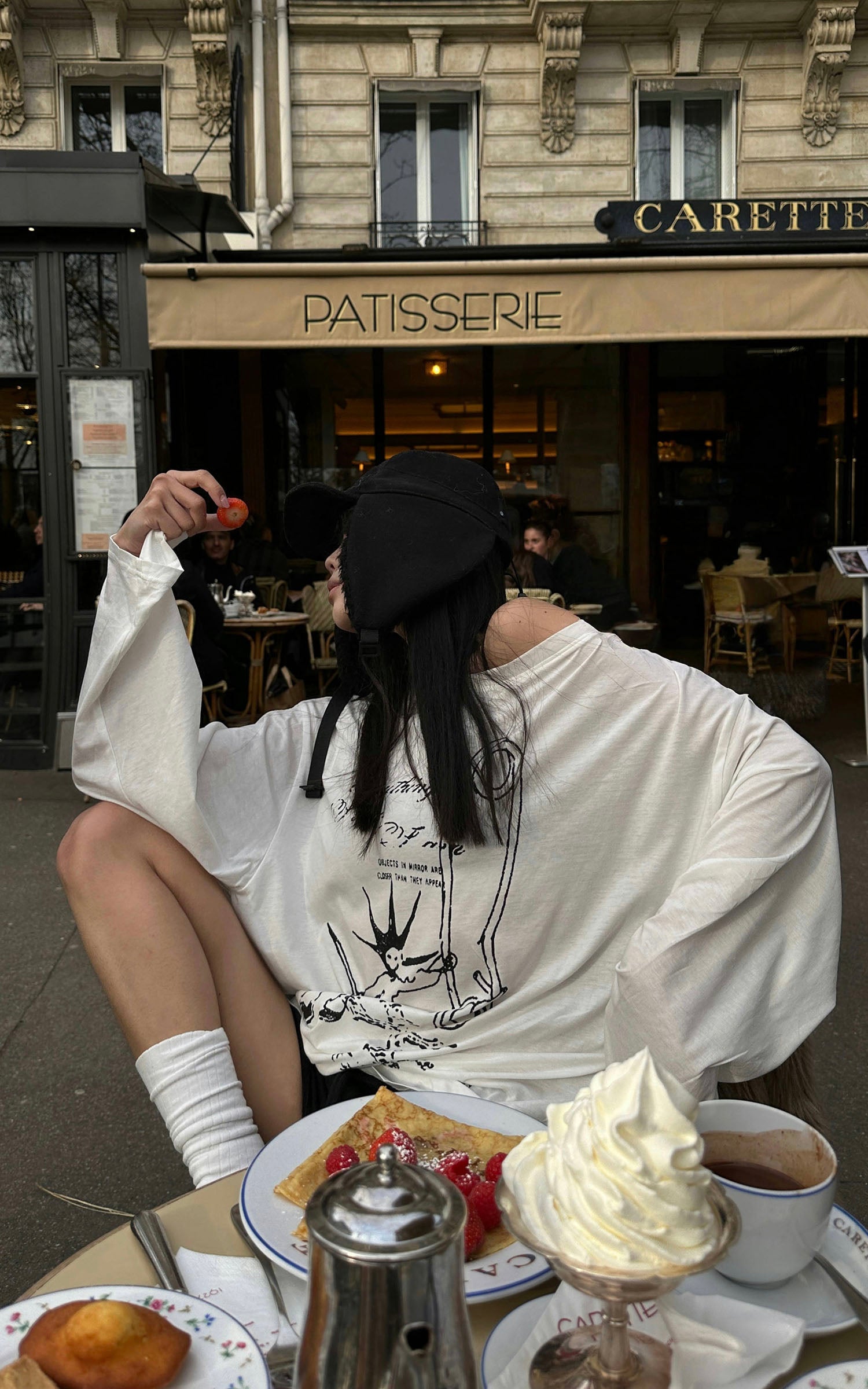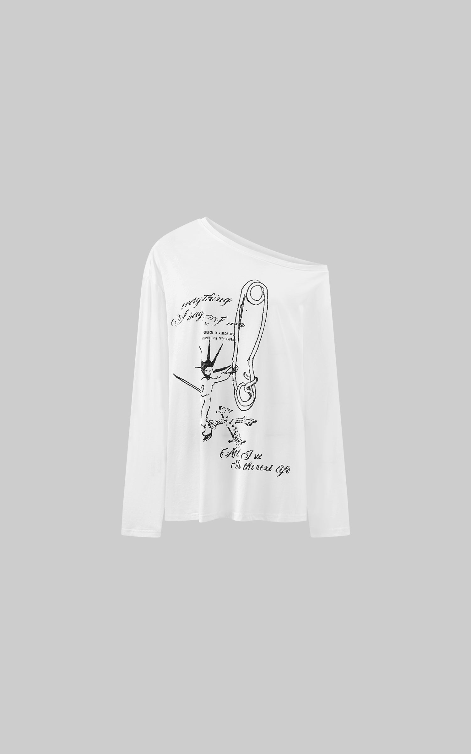 This asymmetric tee merges edgy street style with effortless comfort. Designed with a relaxed fit and an off-shoulder neckline, it features bold graffiti-inspired graphics that add a rebellious touch. The soft cotton blend ensures a lightweight feel, while the draped silhouette gives it a laid-back yet elevated vibe. Wear it solo or layer it up — this tee makes a statement no matter how you style it.