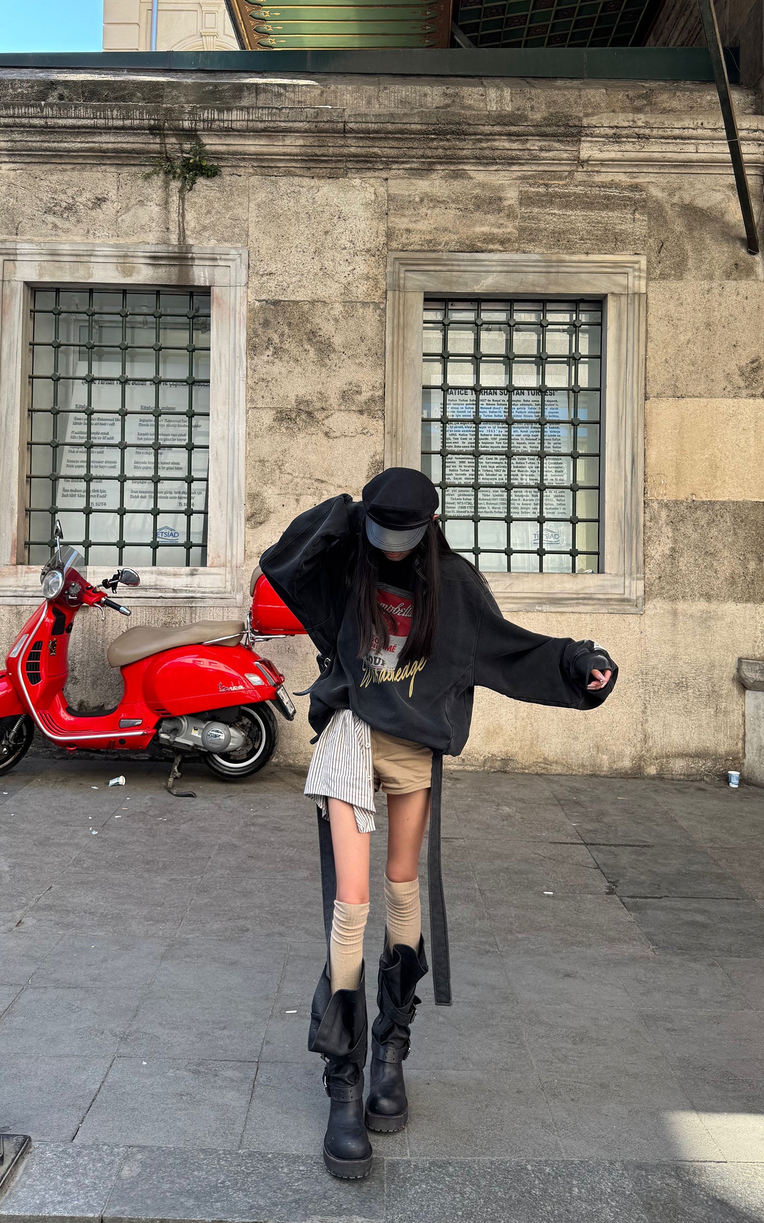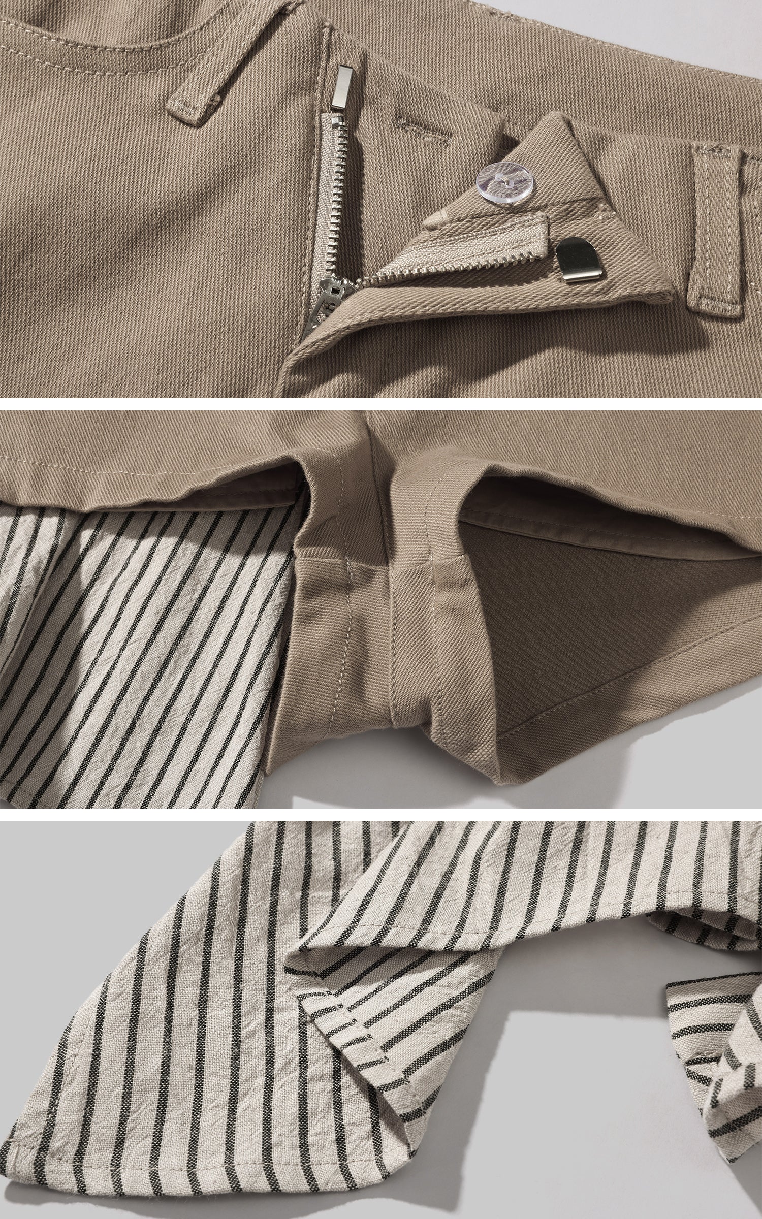 These shorts push beyond utility basics with a layered, asymmetric cut. The clean structure is interrupted by a striped draped insert, creating unexpected movement and edge. Cut from sturdy cotton with a tailored finish, the piece blends function with subversive street detail. Wear it with oversized knits, graphic tops, or boots to sharpen a forward, urban look.