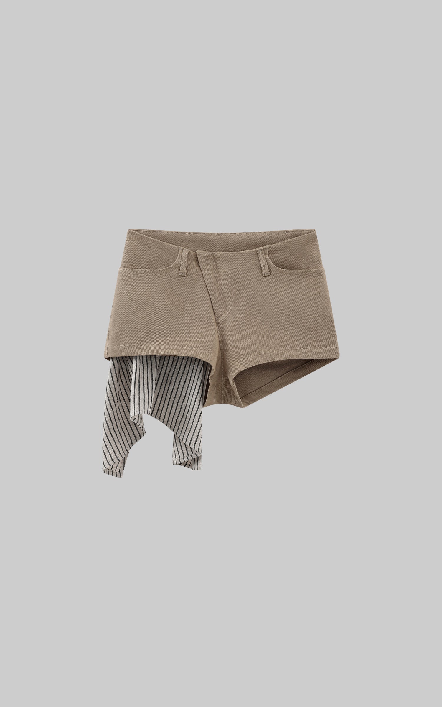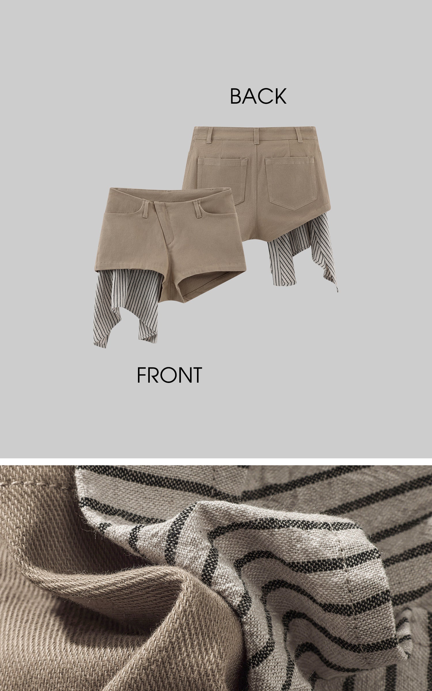 WARDEN EDGE Asymmetric Layered Shorts with Striped Draped Panel
