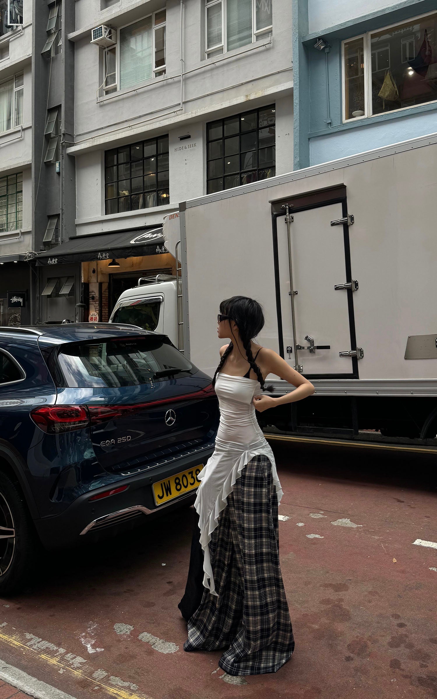 Step into avant-garde elegance with this asymmetric ruffle dress, a statement piece that blends fluid design with a bold silhouette. The cascading ruffles create dynamic movement, while the irregular hemline adds an edge of unpredictability. Designed with a strapless fit, it sculpts a clean yet dramatic look that can transition effortlessly from day to night. Pair it with oversized layers or keep it sleek for an elevated, versatile style.