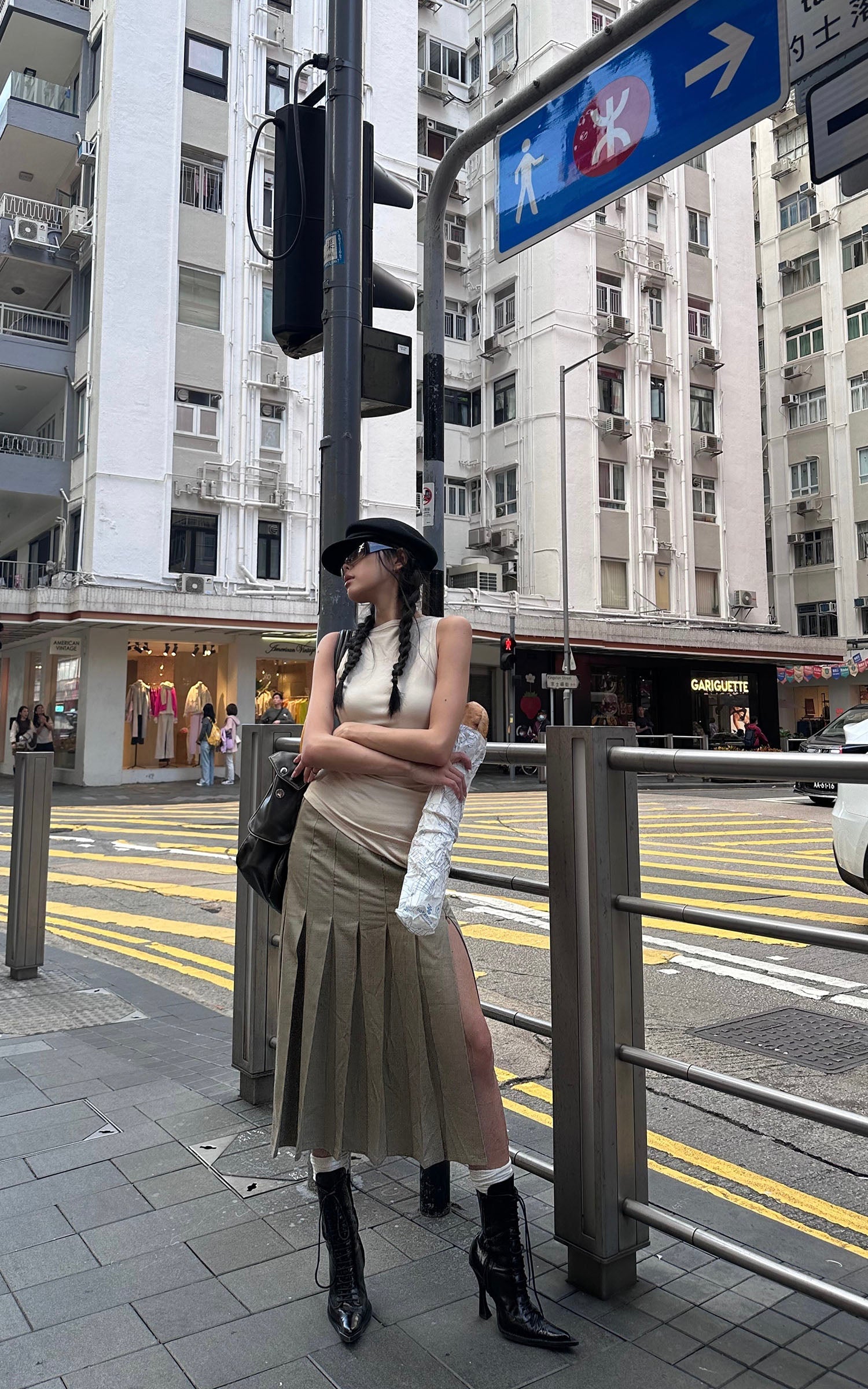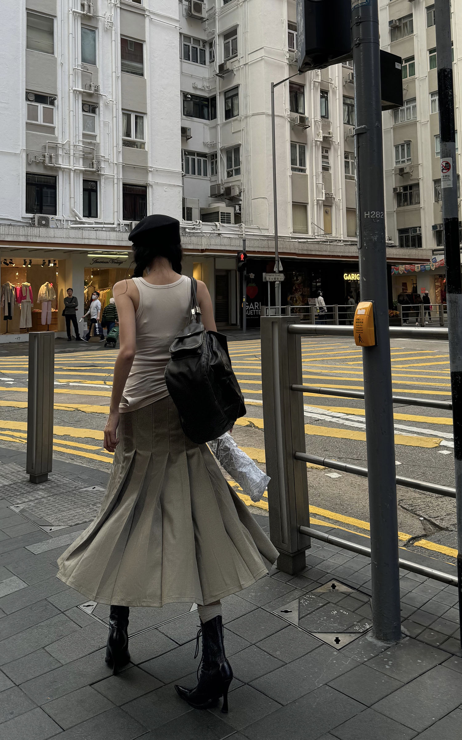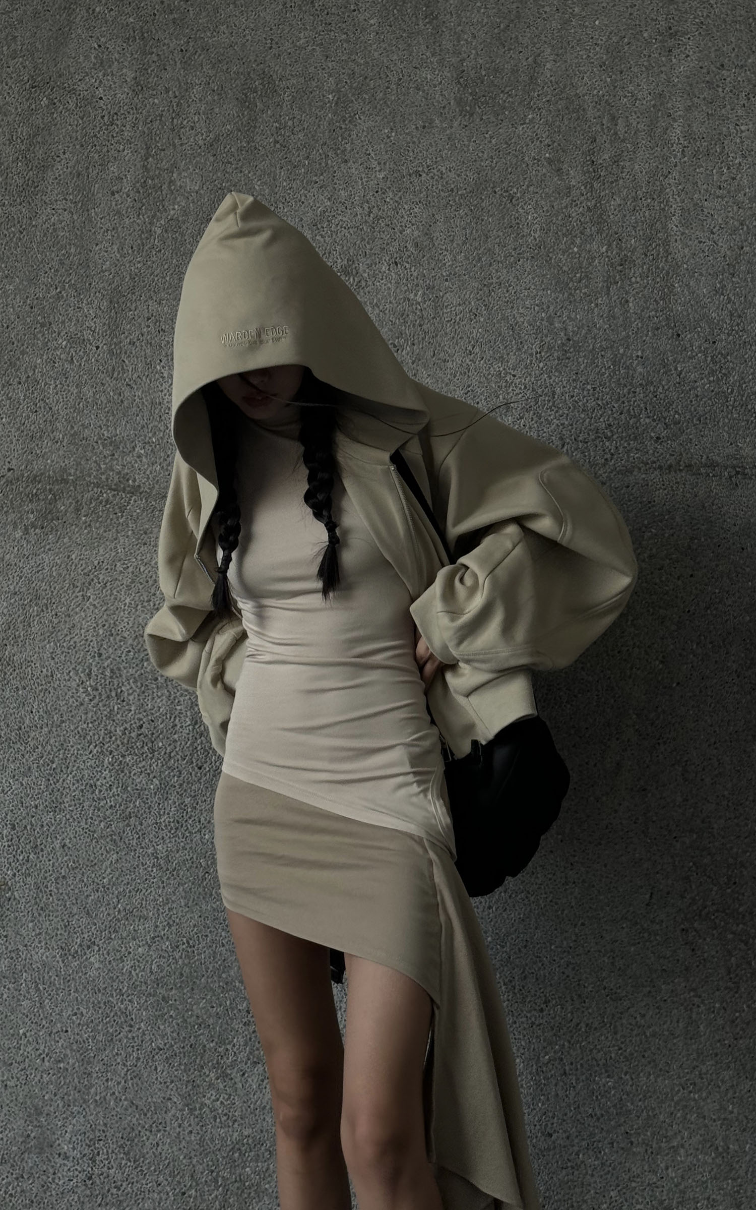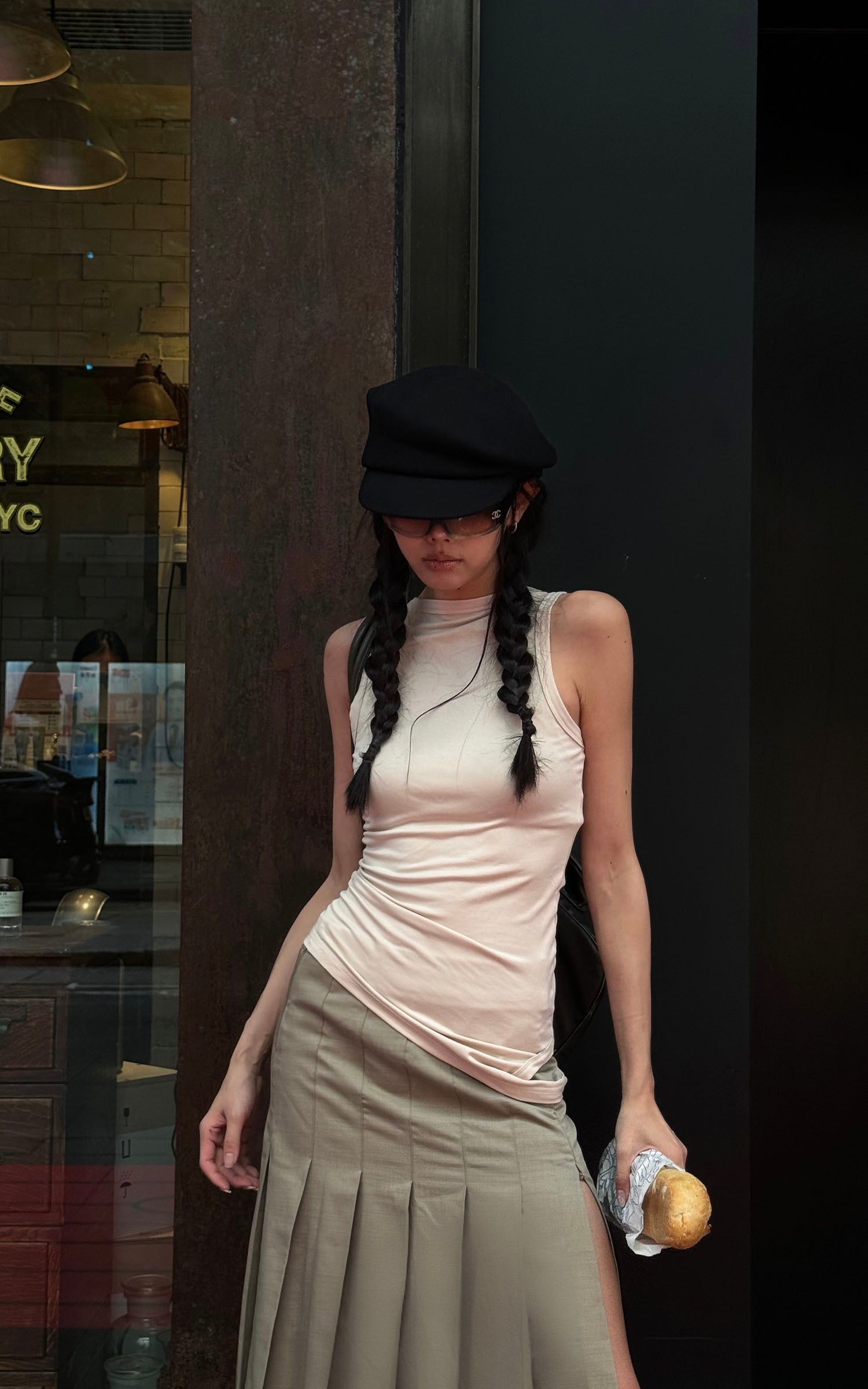 Discover the effortless balance of minimalism and structure with this two-piece set. The asymmetric tank dress features a sleek, figure-hugging silhouette with a unique drape detail, seamlessly blending elegance with a touch of edge. Paired with a tailored pleated skirt that boasts sharp folds and a high side slit, this set is designed for fluid movement and modern sophistication. Perfect for layering or wearing as separates, it adapts to both urban streetwear and elevated casual aesthetics.