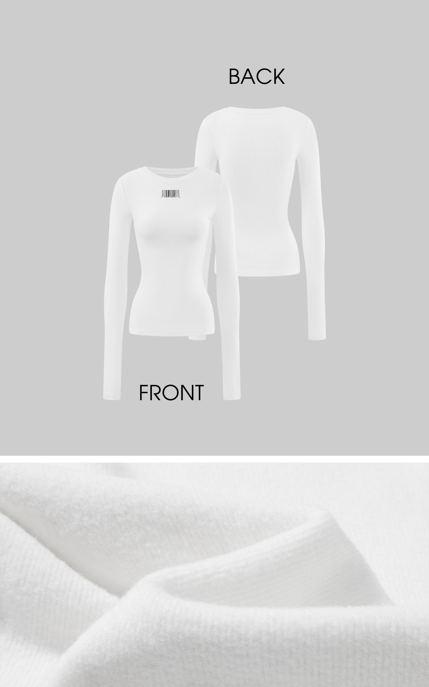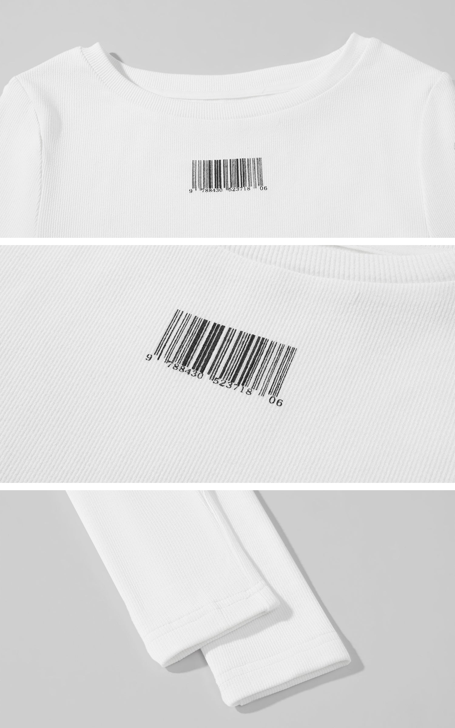 A lightweight ribbed long sleeve that contours smoothly along the body, creating a clean, minimal silhouette. The barcode graphic adds a stark mechanical edge, balanced by elongated sleeves that enhance the structured feel. Worn alone or as a base layer, it delivers a sharp, modern look essential for cold-tone urban styling.