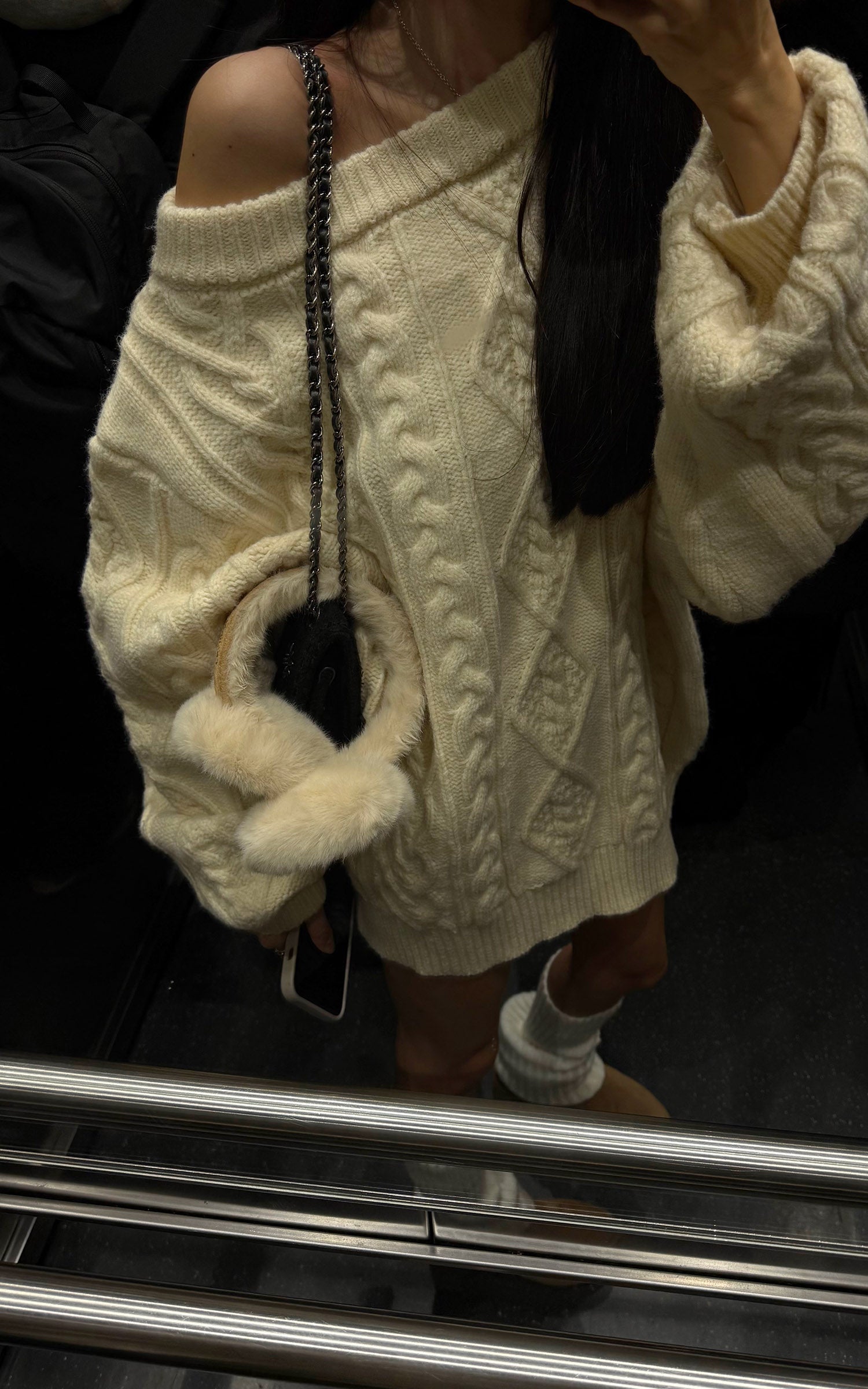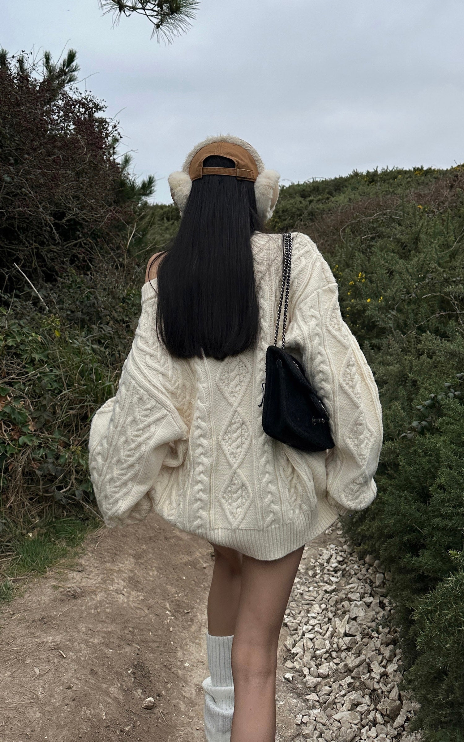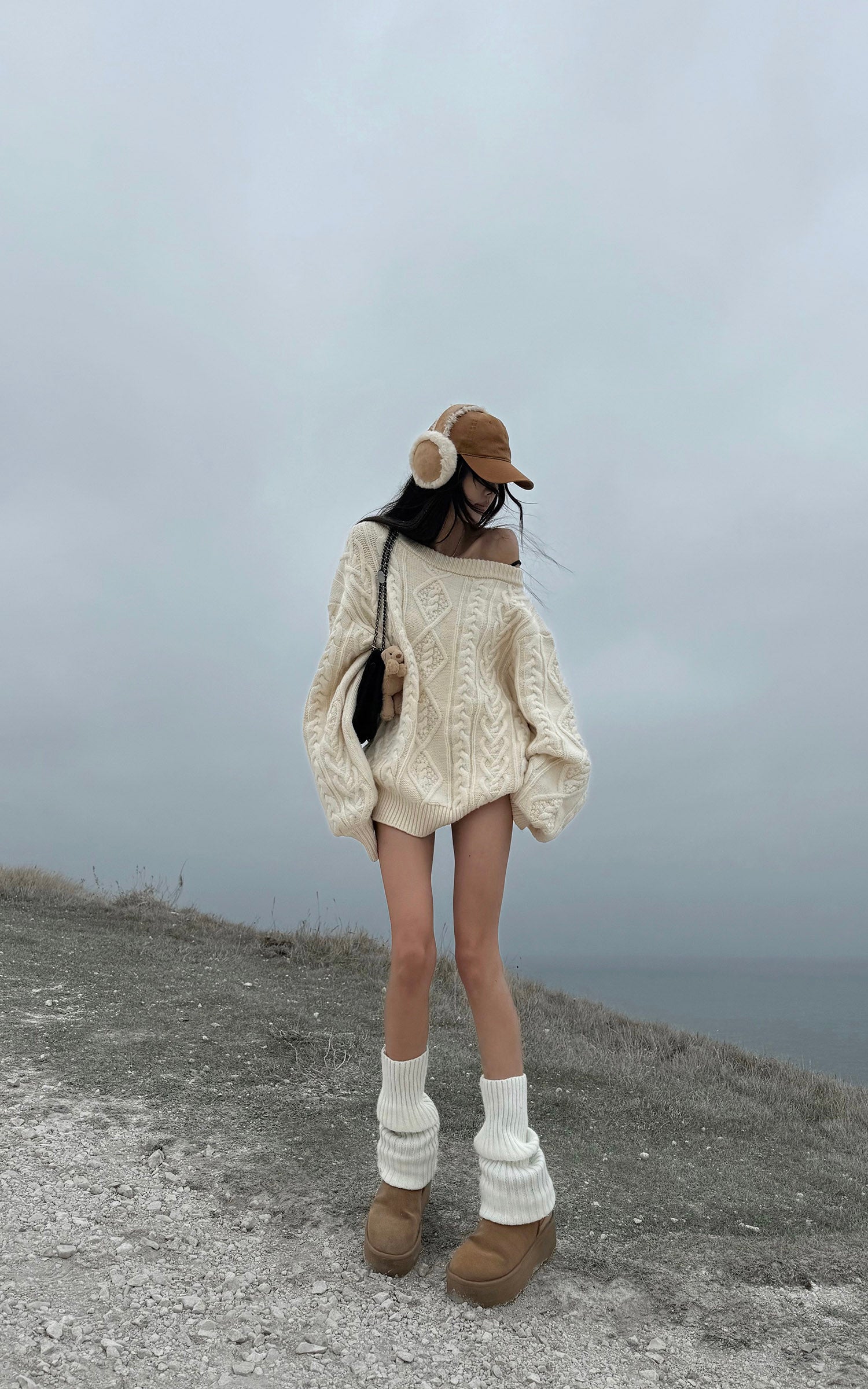 A structured yet relaxed cable-knit piece built for elemental weather and quiet impact. The oversized silhouette drapes with intention, blending sculptural volume and soft texture for a grounded, effortless presence. Heavy-gauge knitting adds depth and warmth, while the drop-shoulder shape creates natural movement. Designed for layering, for solitude, for stillness—elevating cold-season dressing with understated force.